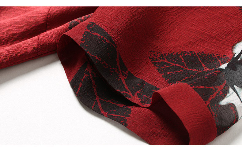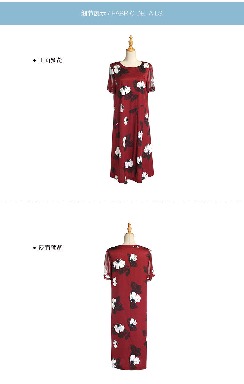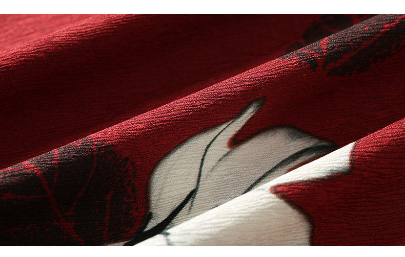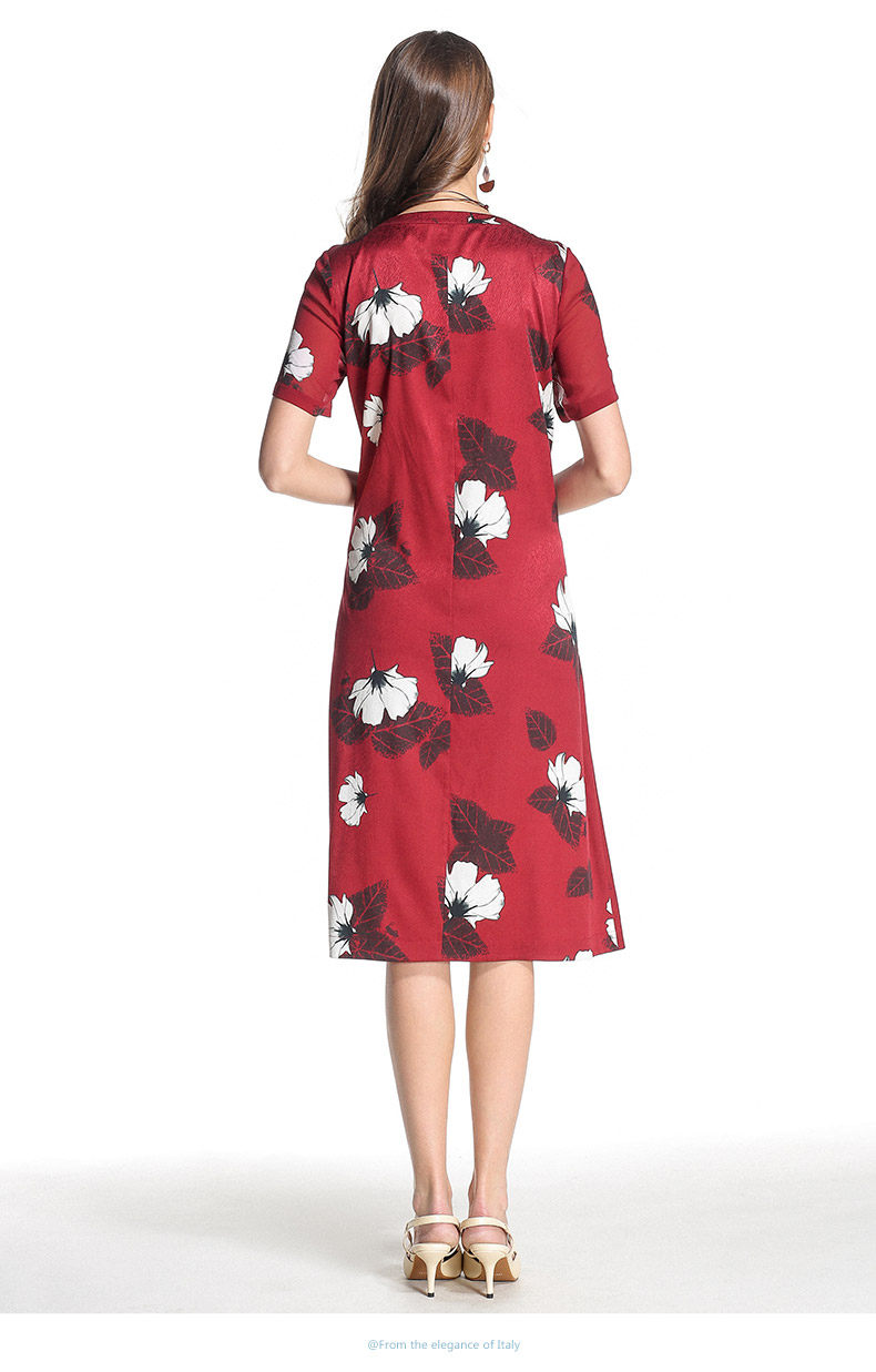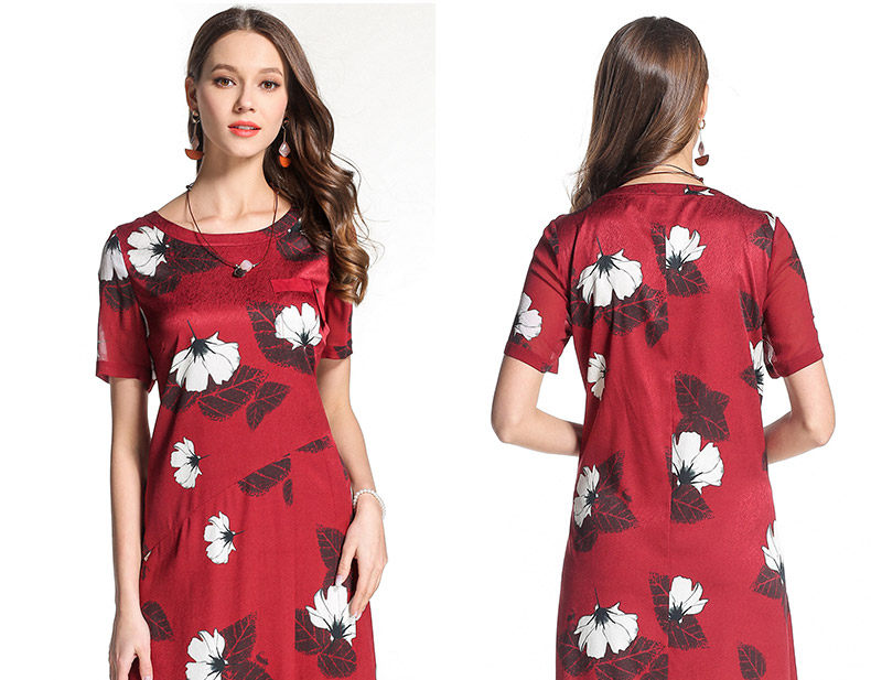 乔万尼夏季桑蚕丝连衣裙红色时尚印花大花真丝宽松a字裙中长EB2E830