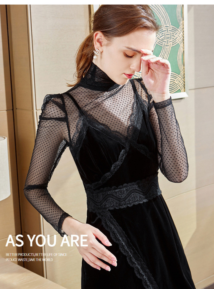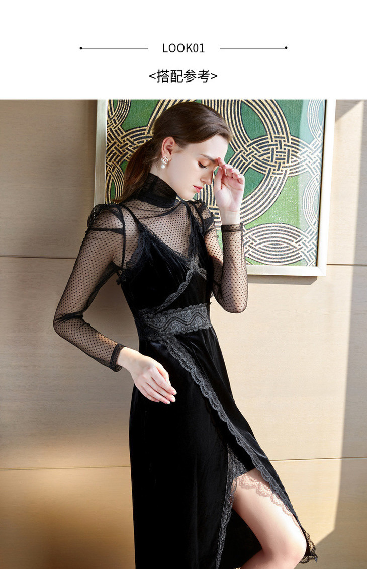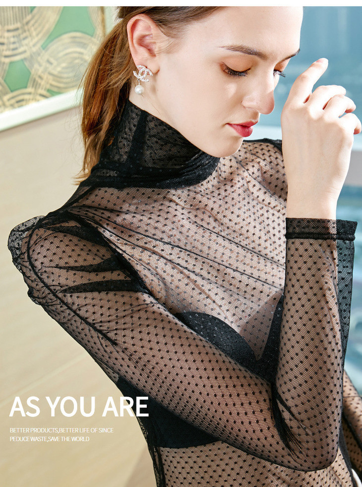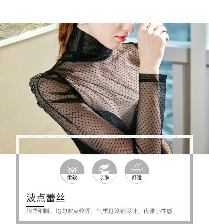 SGFS-AL30308新款黑色高领泡泡袖透视性感复古网纱上衣