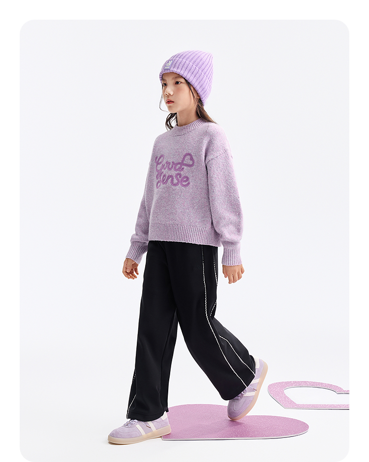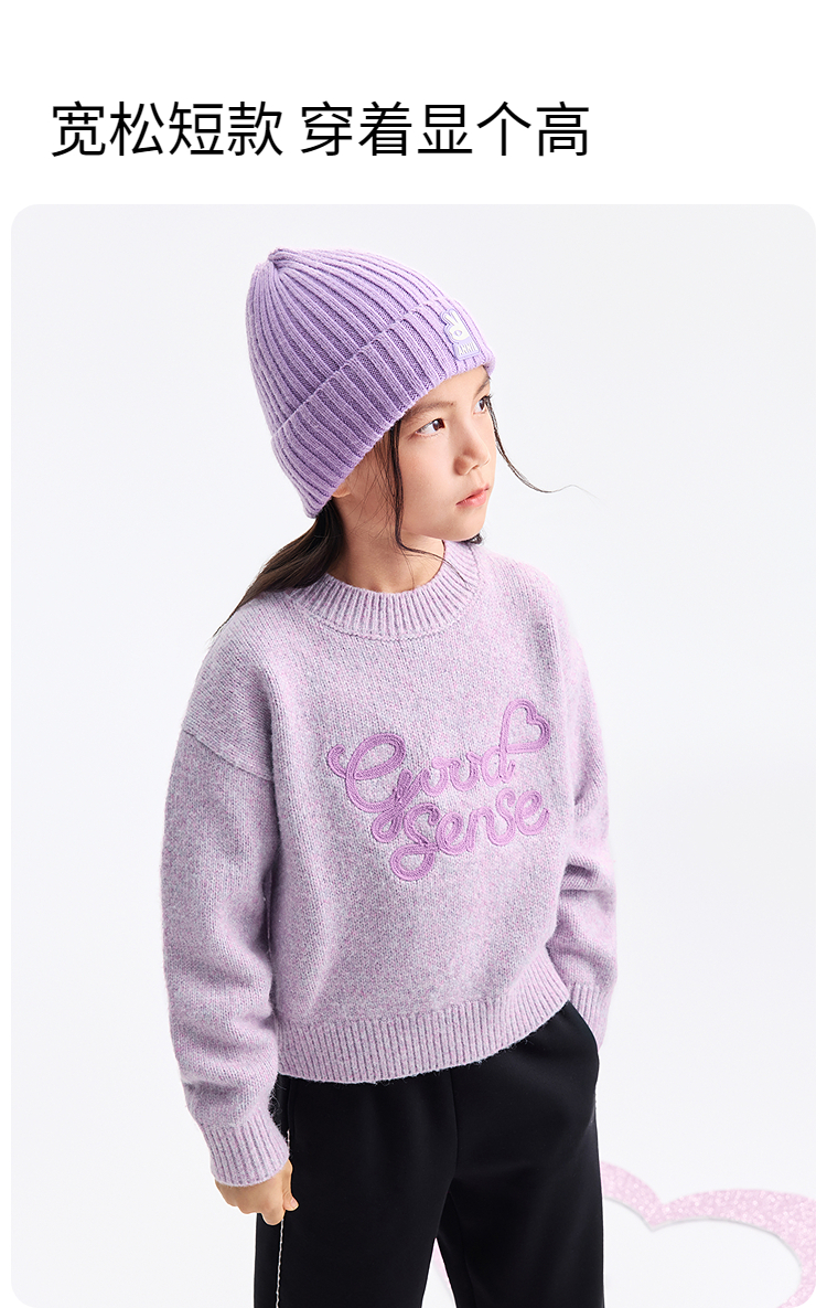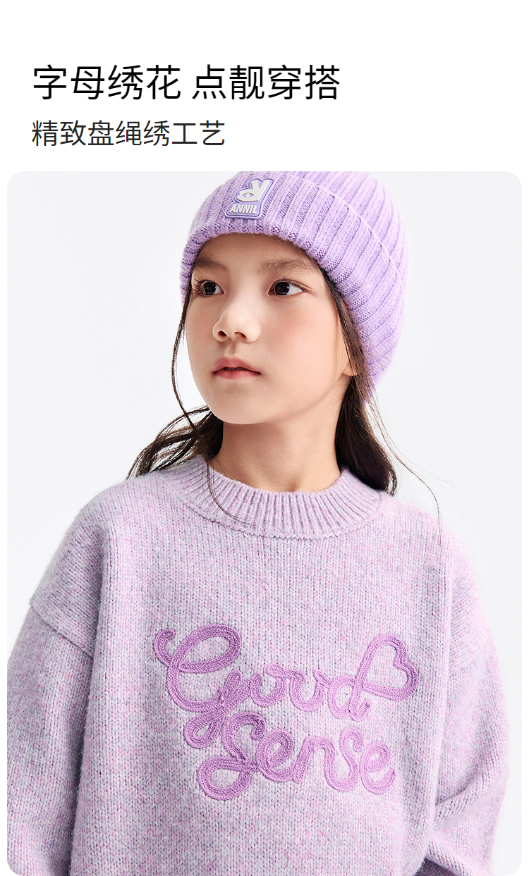女童圆领长袖针织衫冬季新款安奈儿童装EG544665