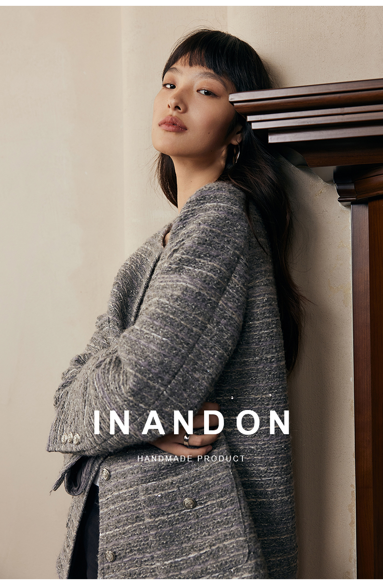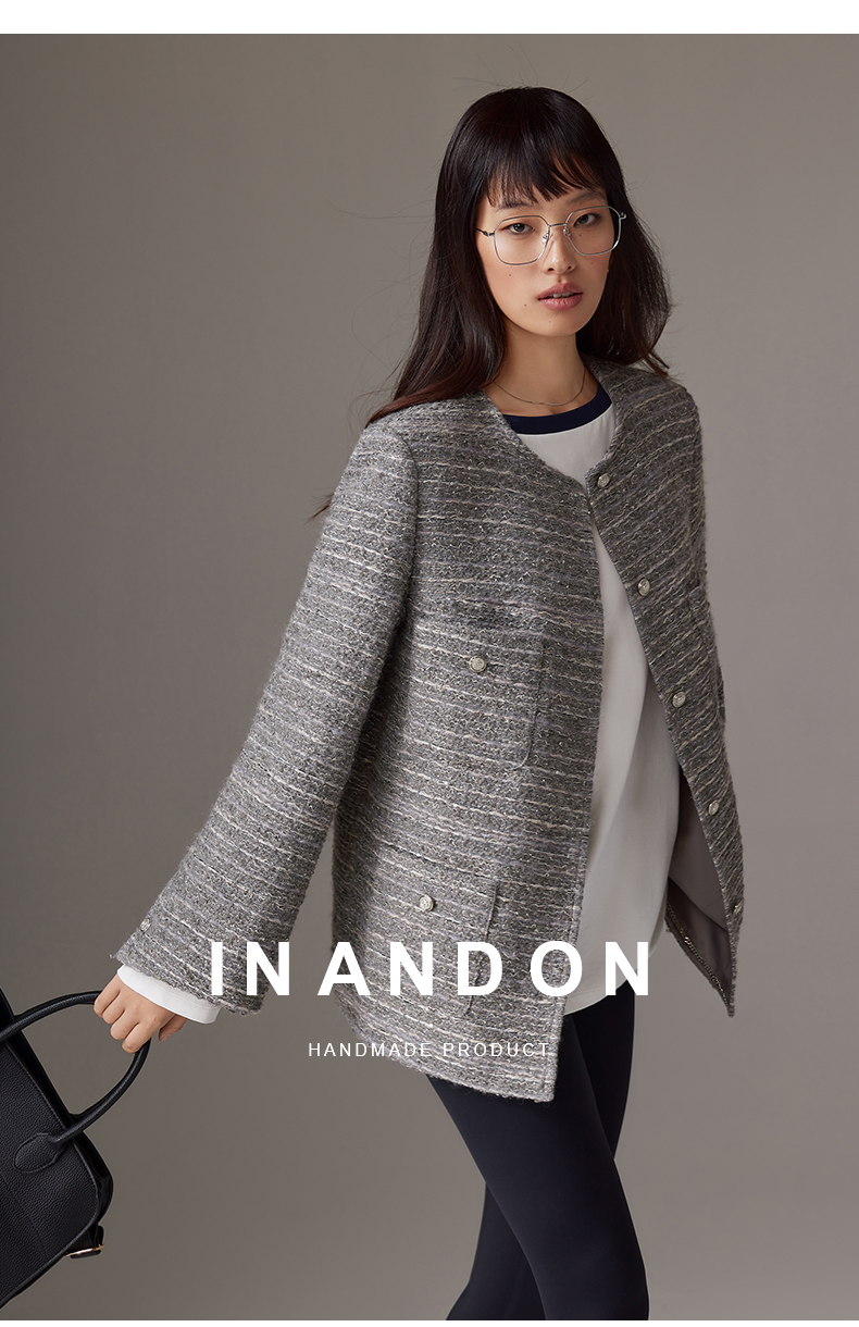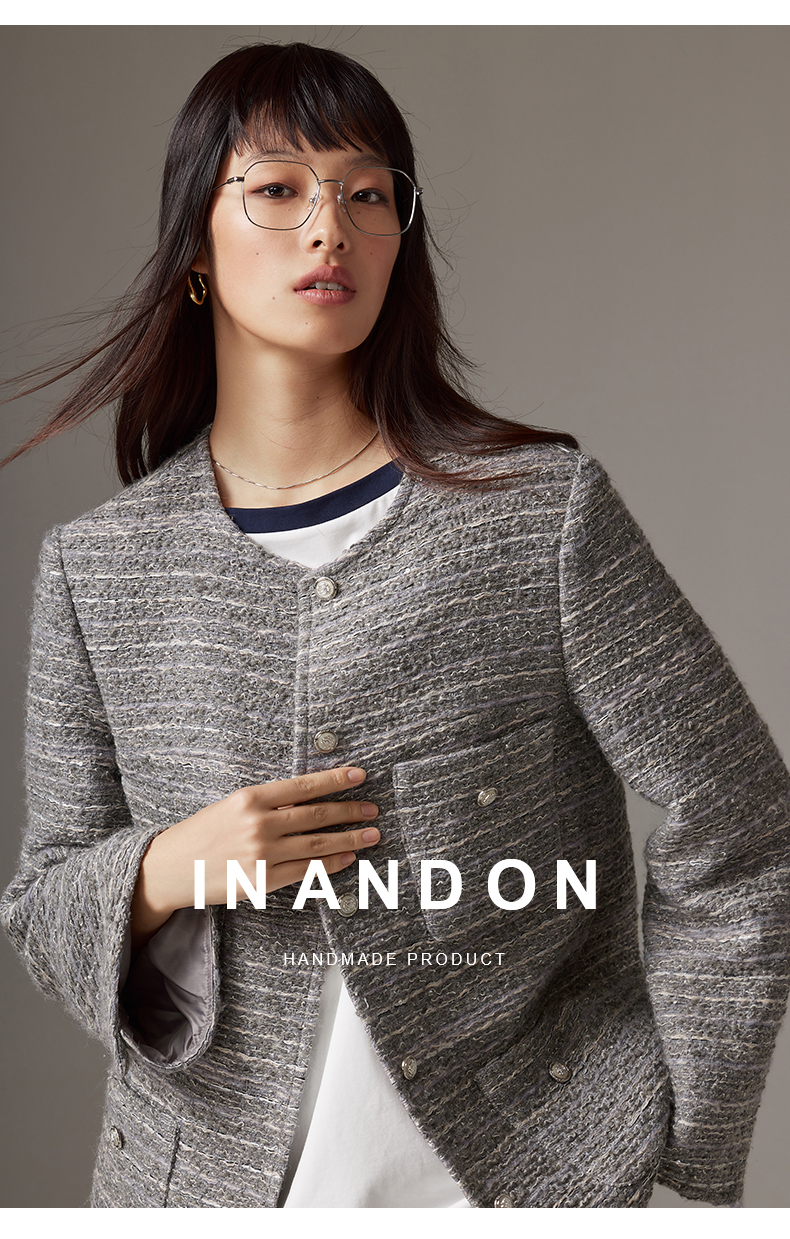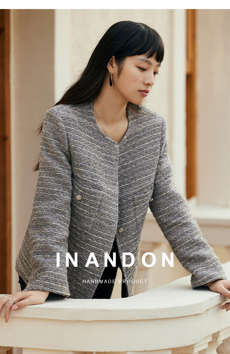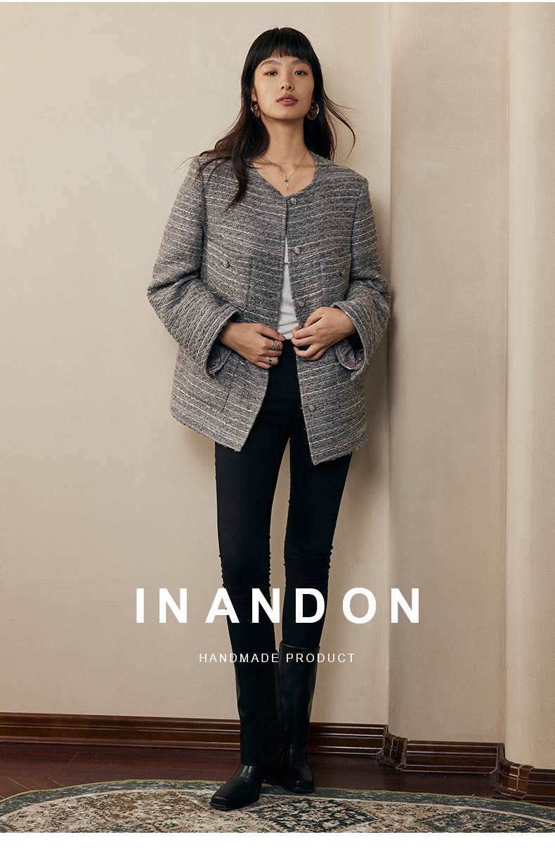 IN AND ON高阶定制绵羊毛小香风 银币极简四袋外套53623