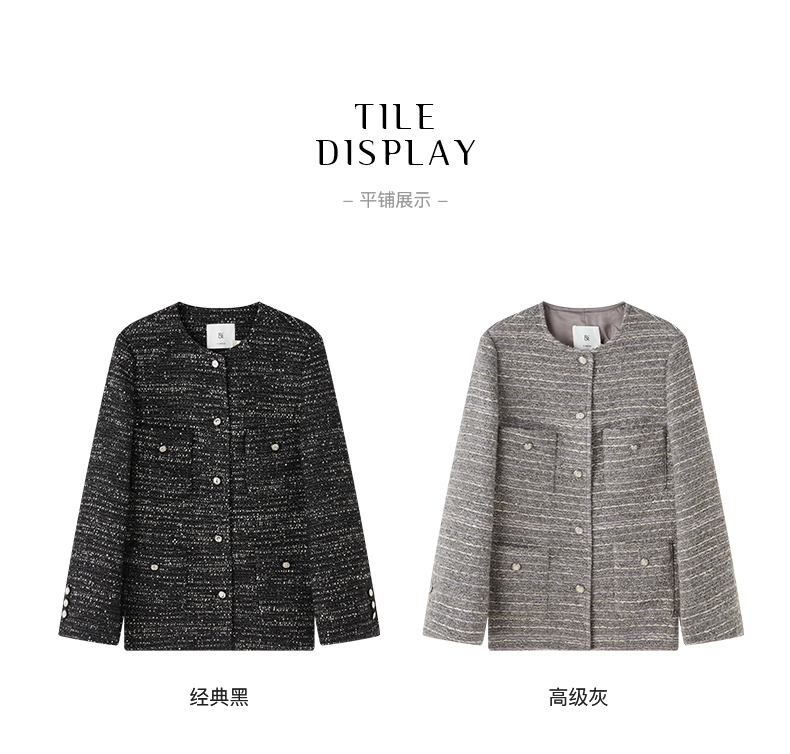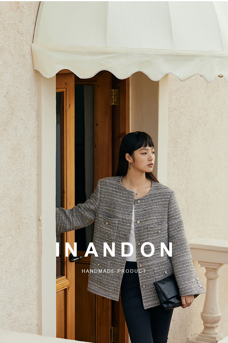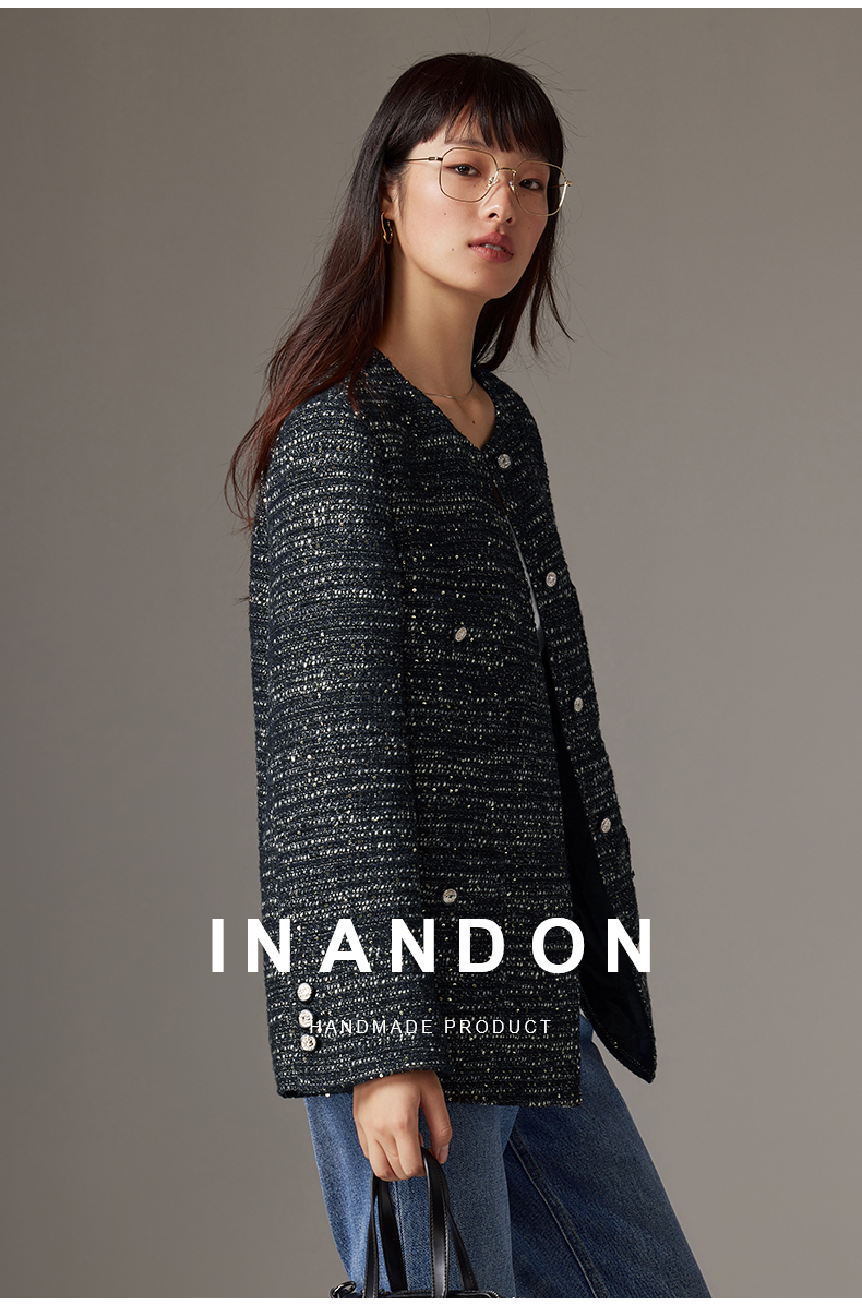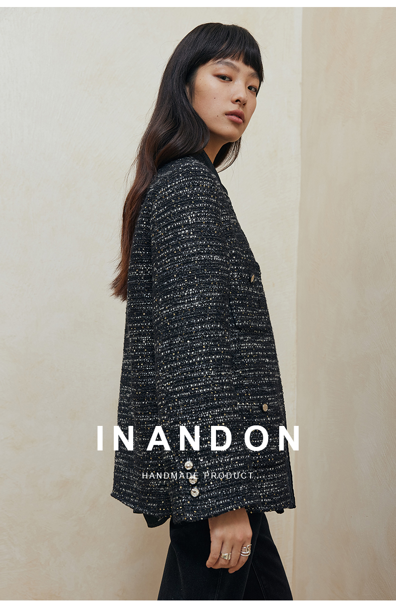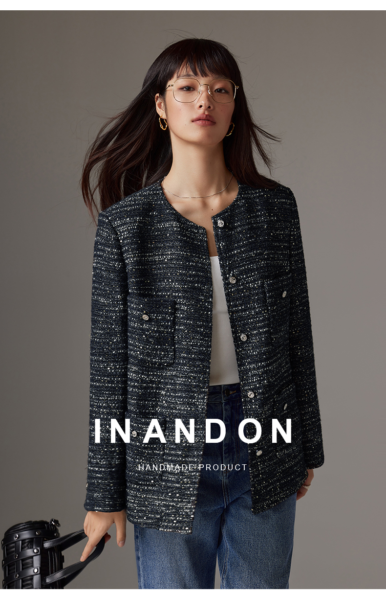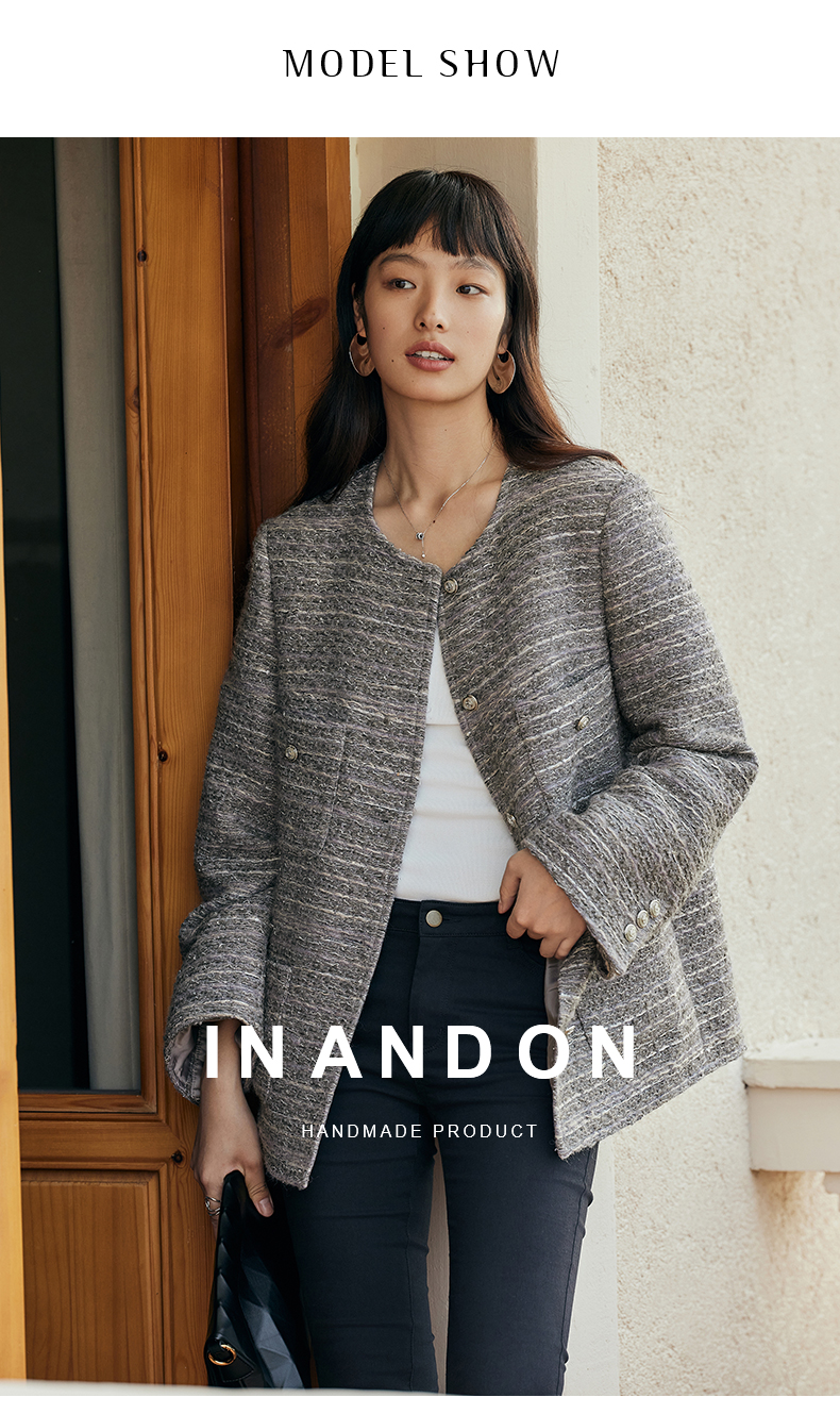 IN AND ON高阶定制绵羊毛小香风 银币极简四袋外套53623