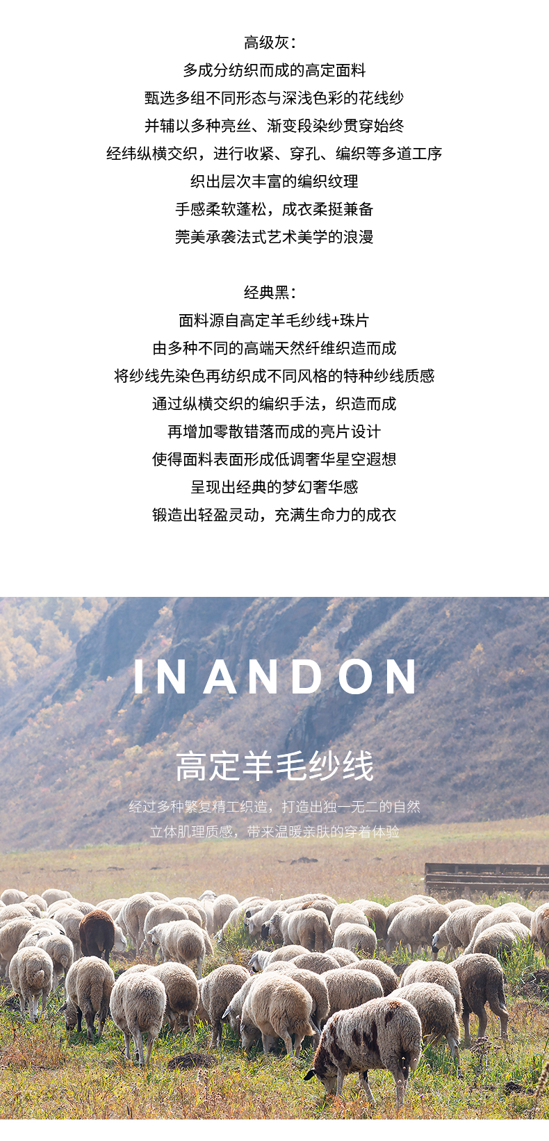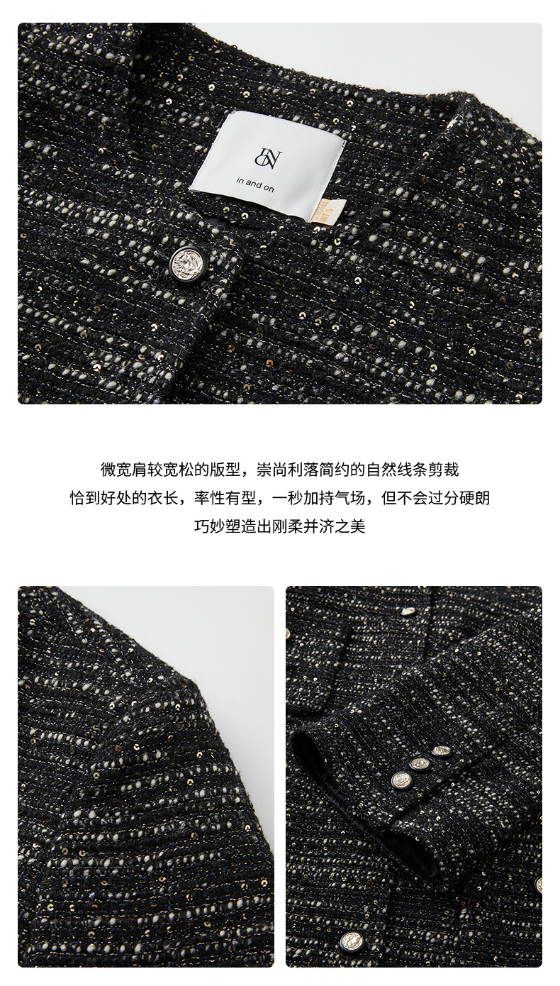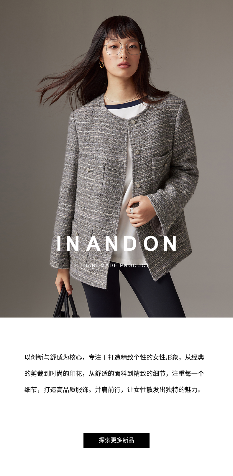 IN AND ON—轻奢时尚品牌,以“致力于做你衣柜永远不肯丢掉的那一件”作为品牌理念,打造“轻奢时尚”的品牌定位。拥有时尚前沿的商品设计能力并将品质与价值进行完美平衡,致力为消费者提供舒适与奢华、创新与智能的完美购物体验。塑造独立自主的女性形象,让每个人都能拥有属于自己的时尚风格。