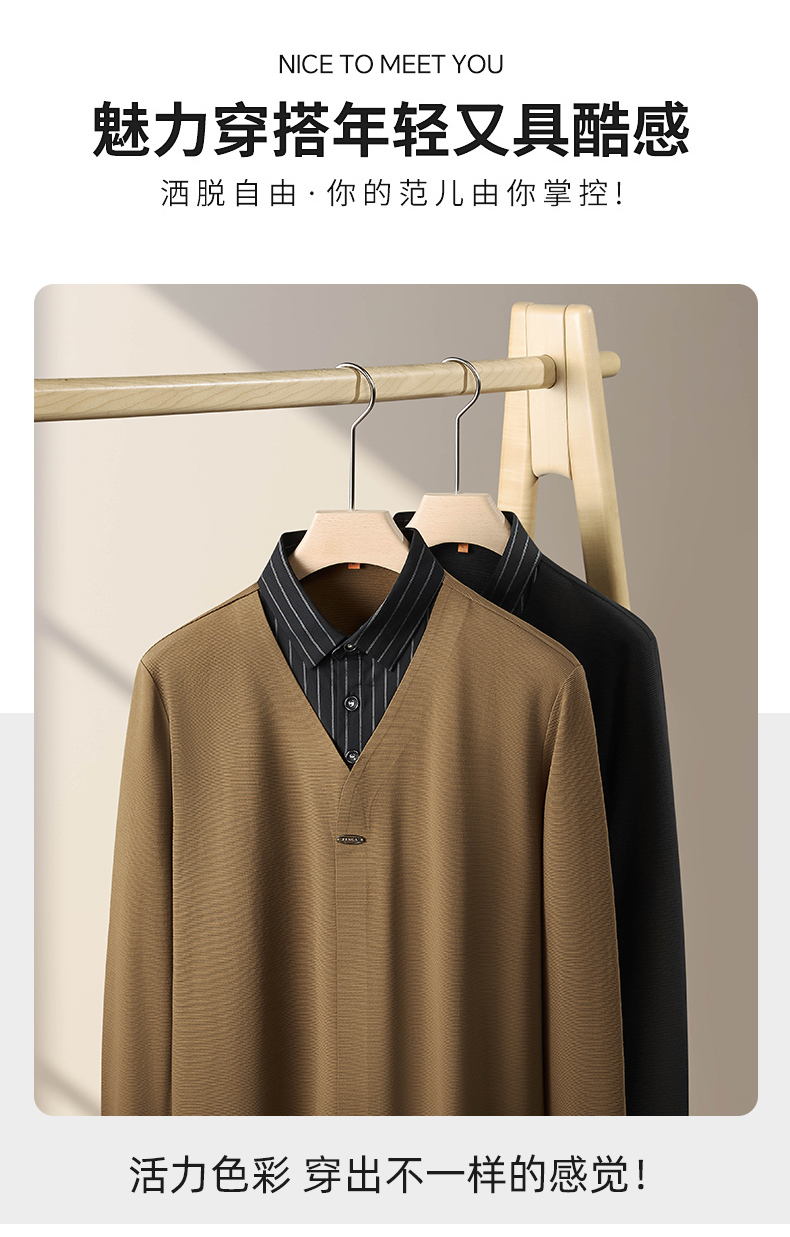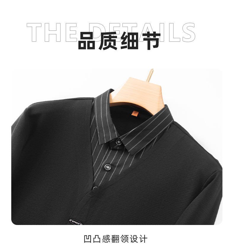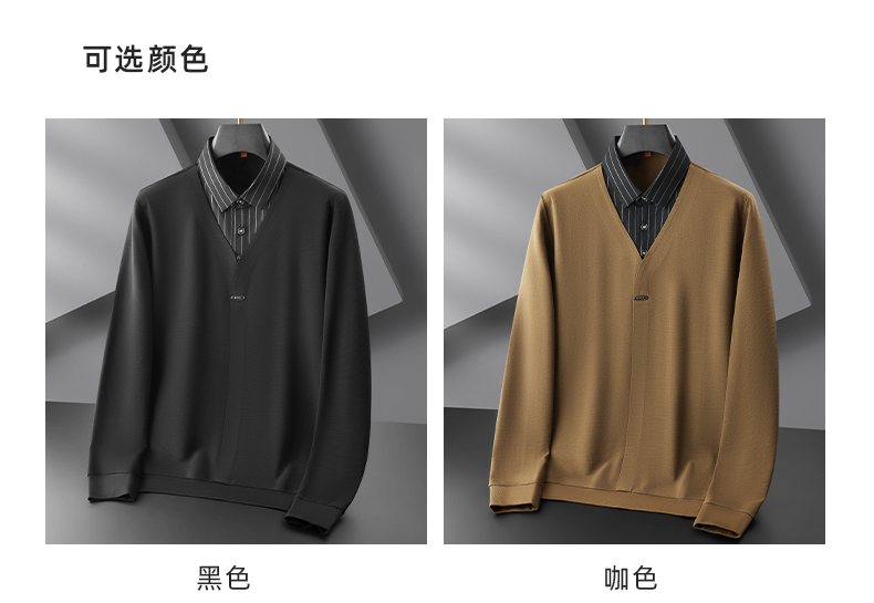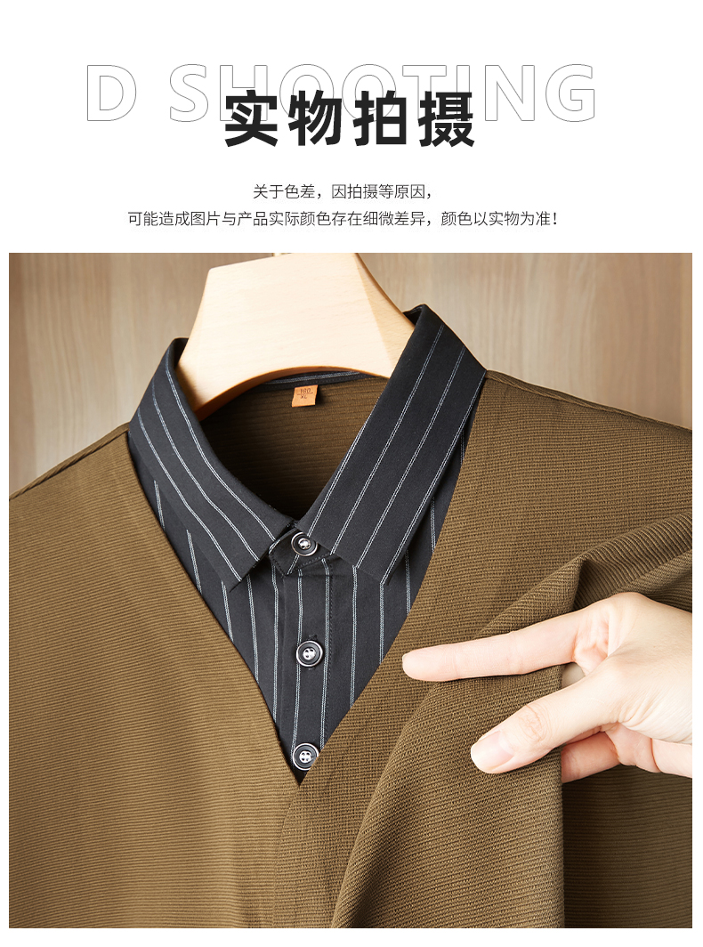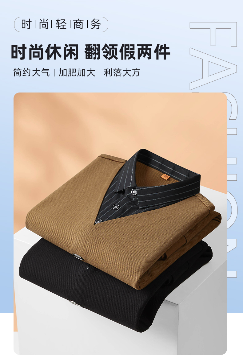 【假两件】【新款DDP】大依优型大码男士假两件衬衫长袖卫衣商务休闲上衣加肥加大胖子舒适