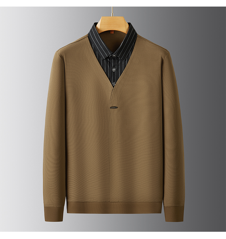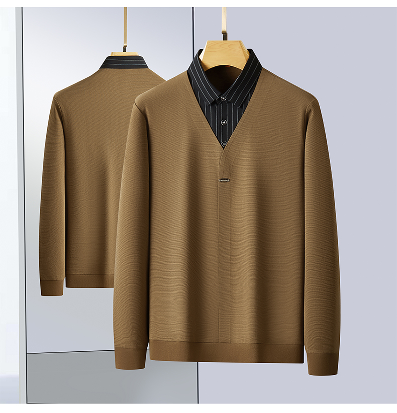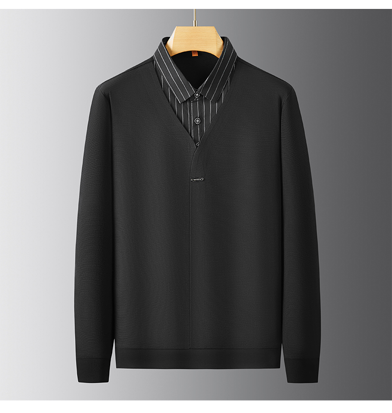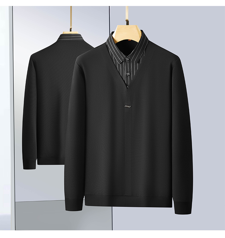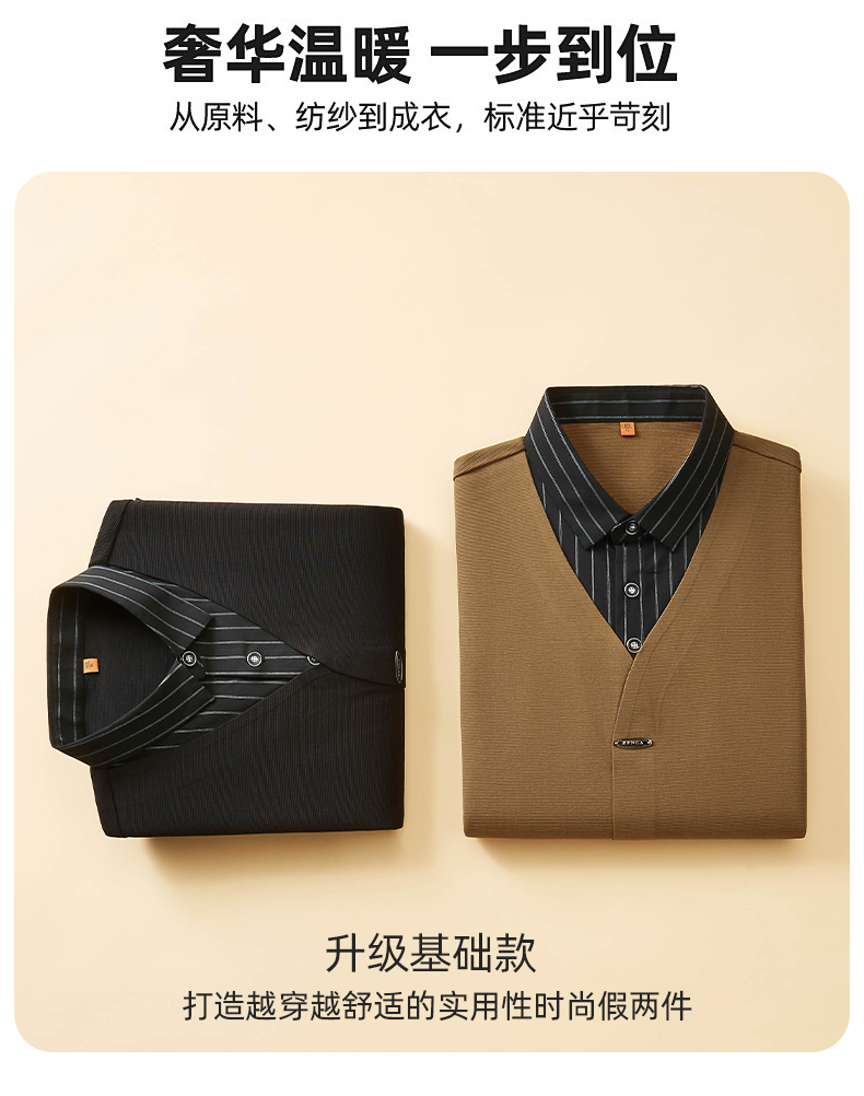 【假两件】【新款DDP】大依优型大码男士假两件衬衫长袖卫衣商务休闲上衣加肥加大胖子舒适