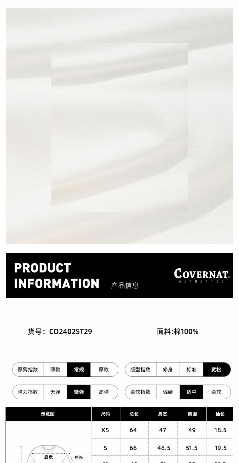 【韩国潮牌】covernat韩国潮牌韩国潮牌男女同款情侣T恤宽松休闲短袖CO2402ST29
