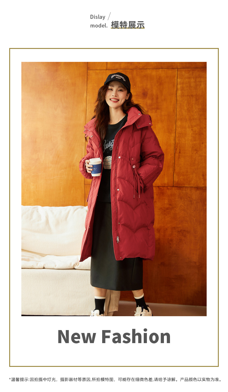 立领拼接袖羽绒服女2024年冬季新款加厚宽松90%鸭绒中长款外套