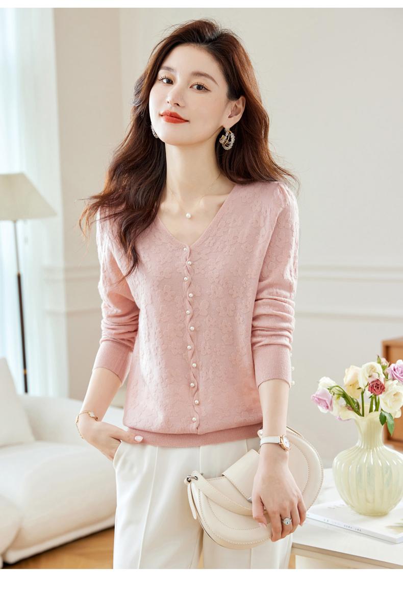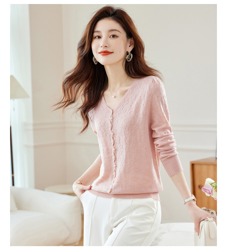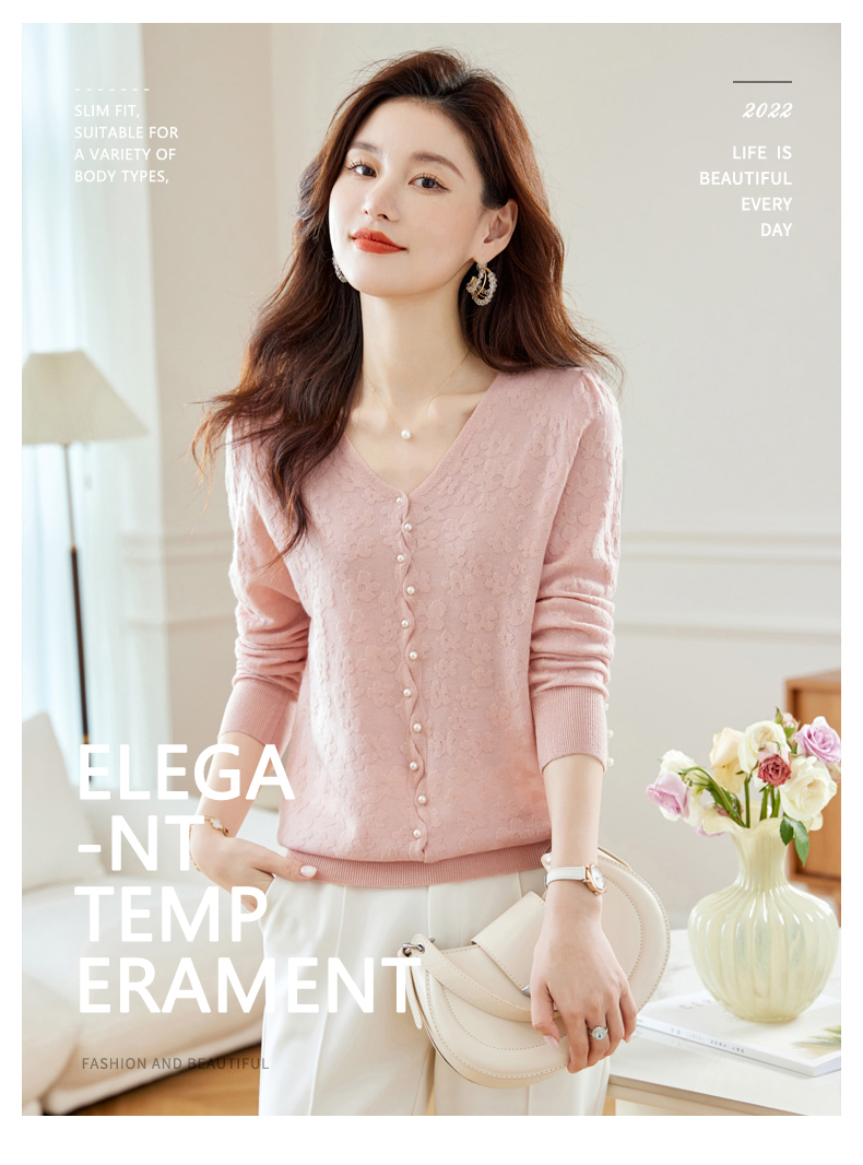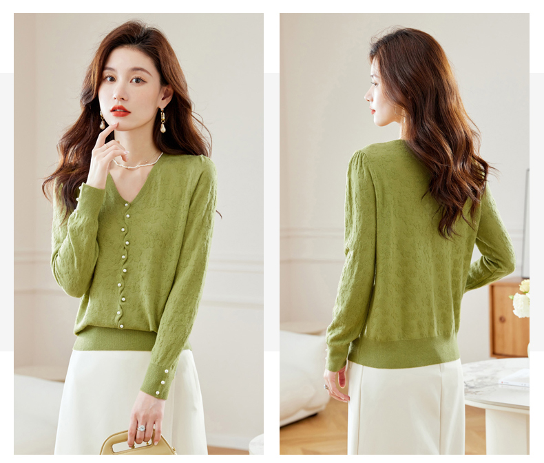 CC-16-2325早秋v领长袖t恤女装秋季2023新款短款打底衫春秋薄款内搭针织上衣