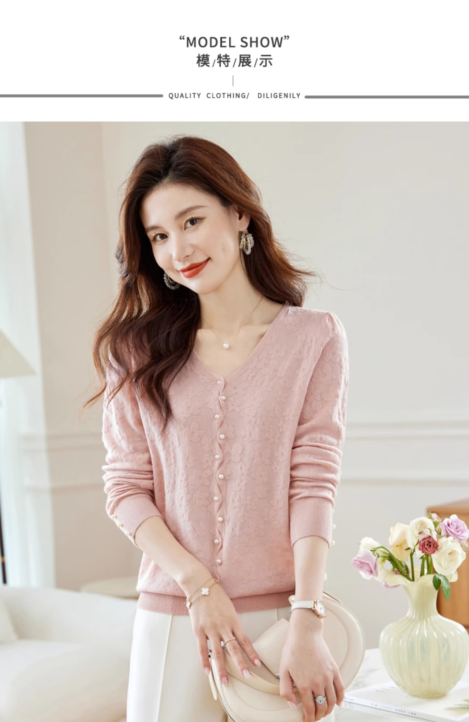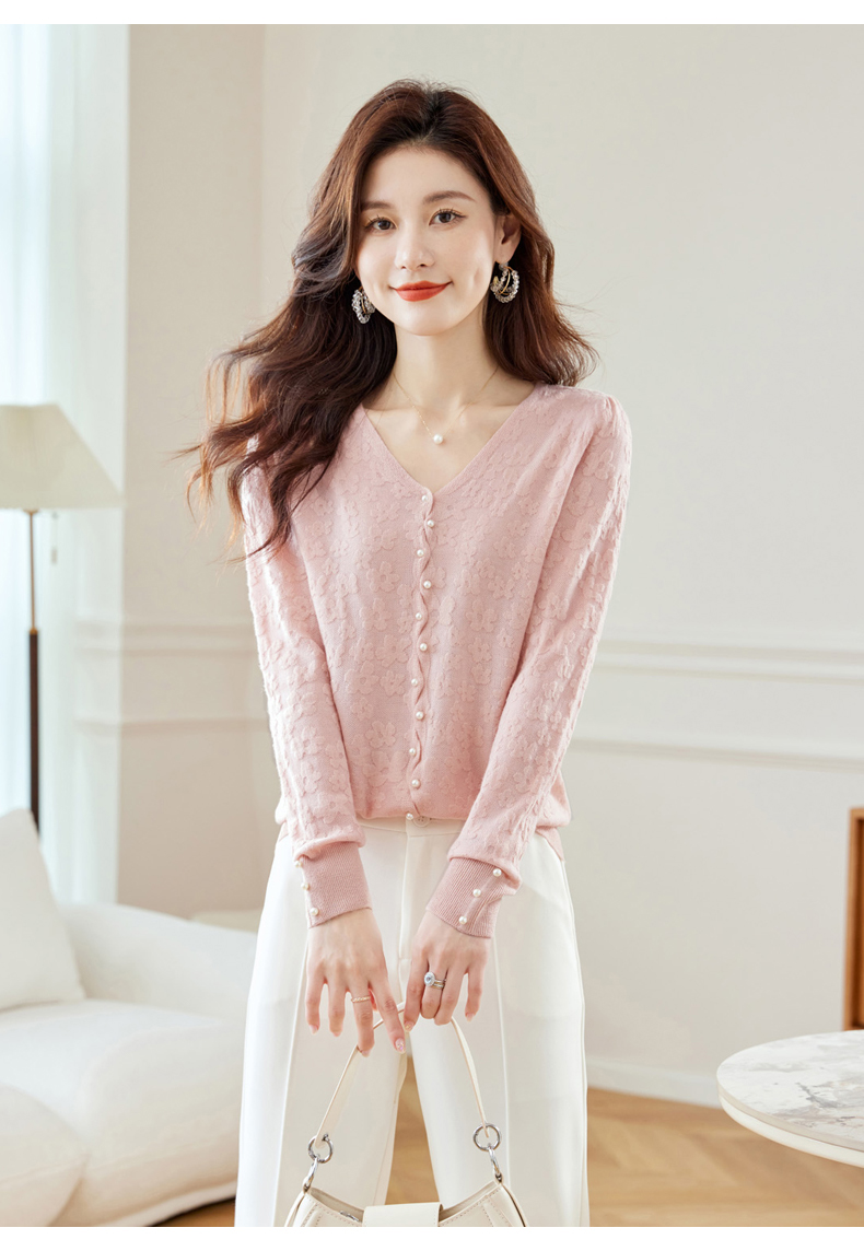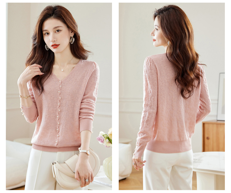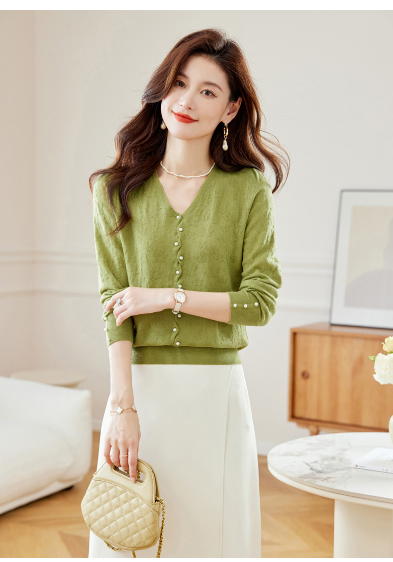 CC-16-2325早秋v领长袖t恤女装秋季2023新款短款打底衫春秋薄款内搭针织上衣