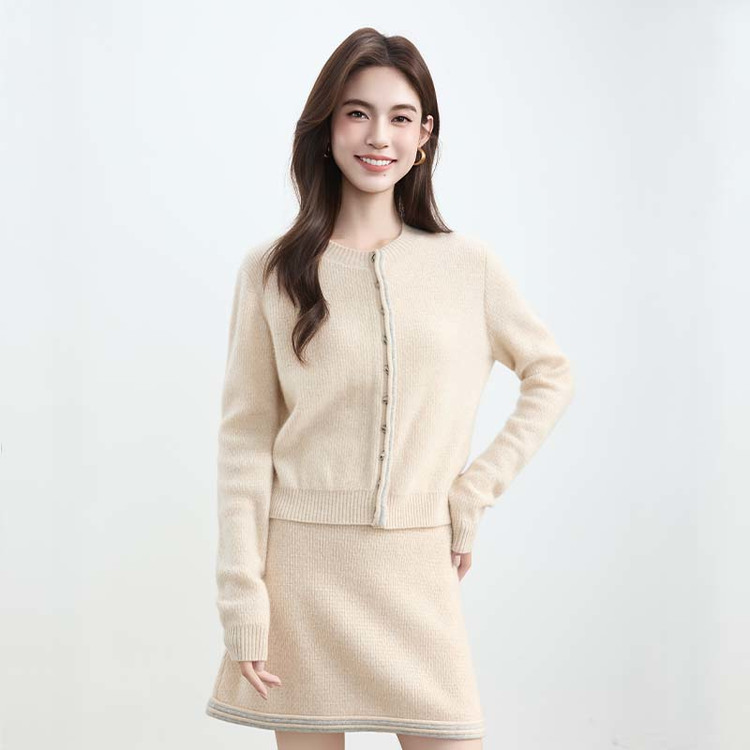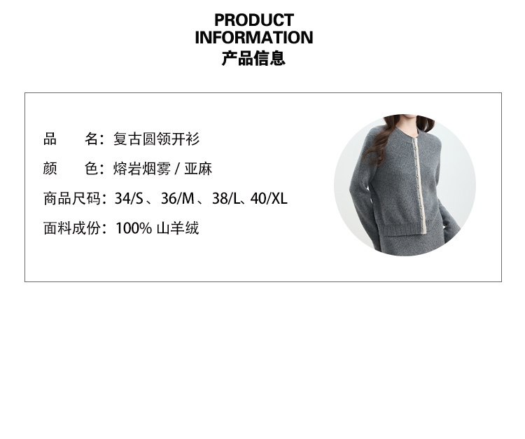 VogoPetite100%山羊绒 复古优雅宽松圆领毛衣开衫 BP142F1501