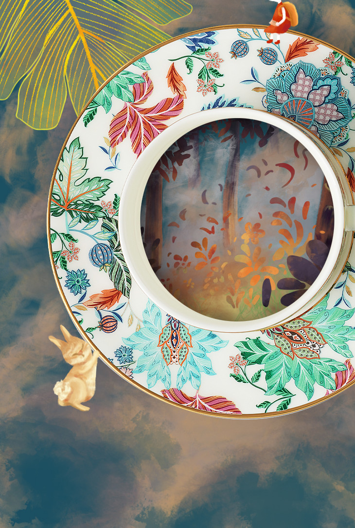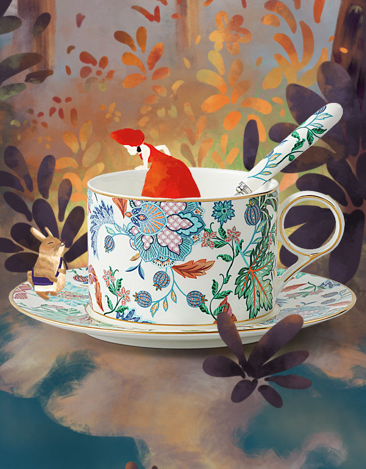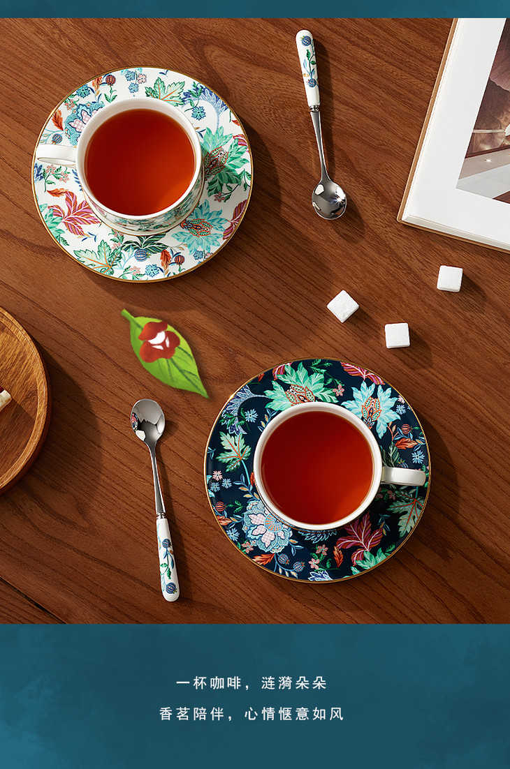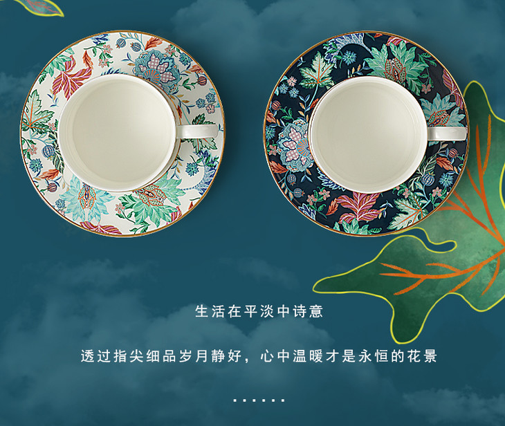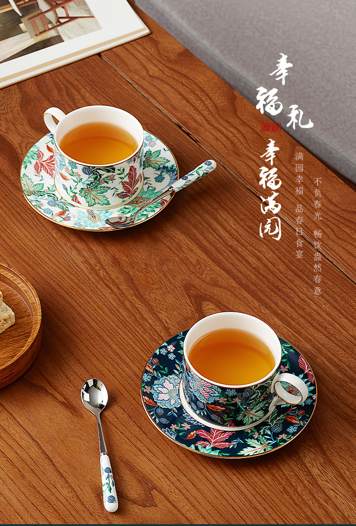 【彼达思】国瓷永丰源 幸福满园 3头咖啡杯碟 茶杯碟勺 对杯 陶瓷田园风礼盒