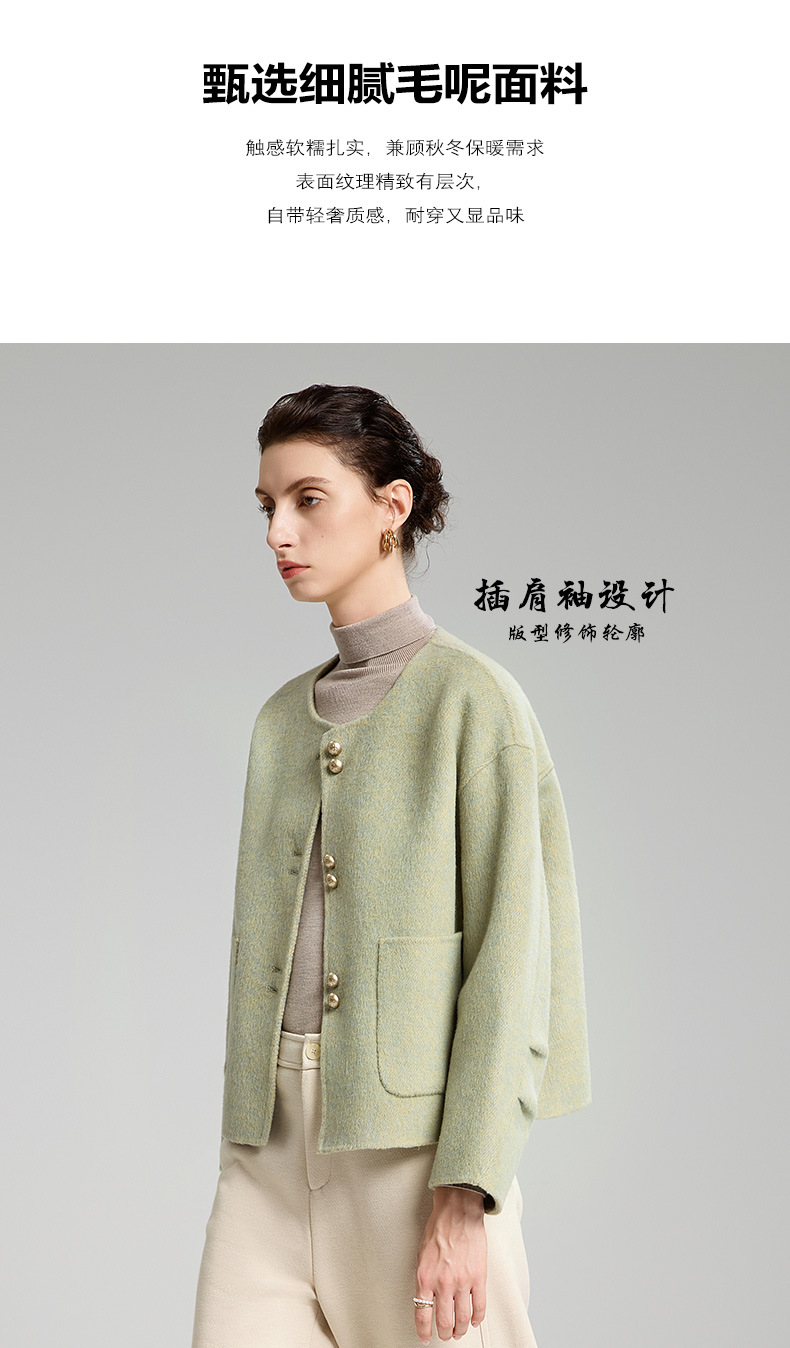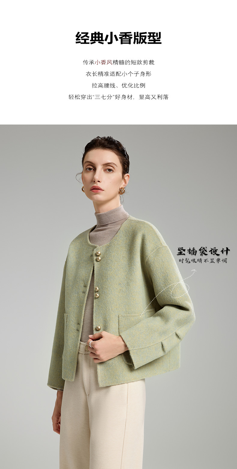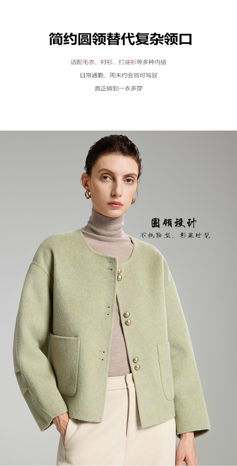 「自」全新升级【铂金会员514/天猫699/差价185】(94331)洛诗琳双面羊绒大衣2025冬季小香风气质圆领羊毛短外套女