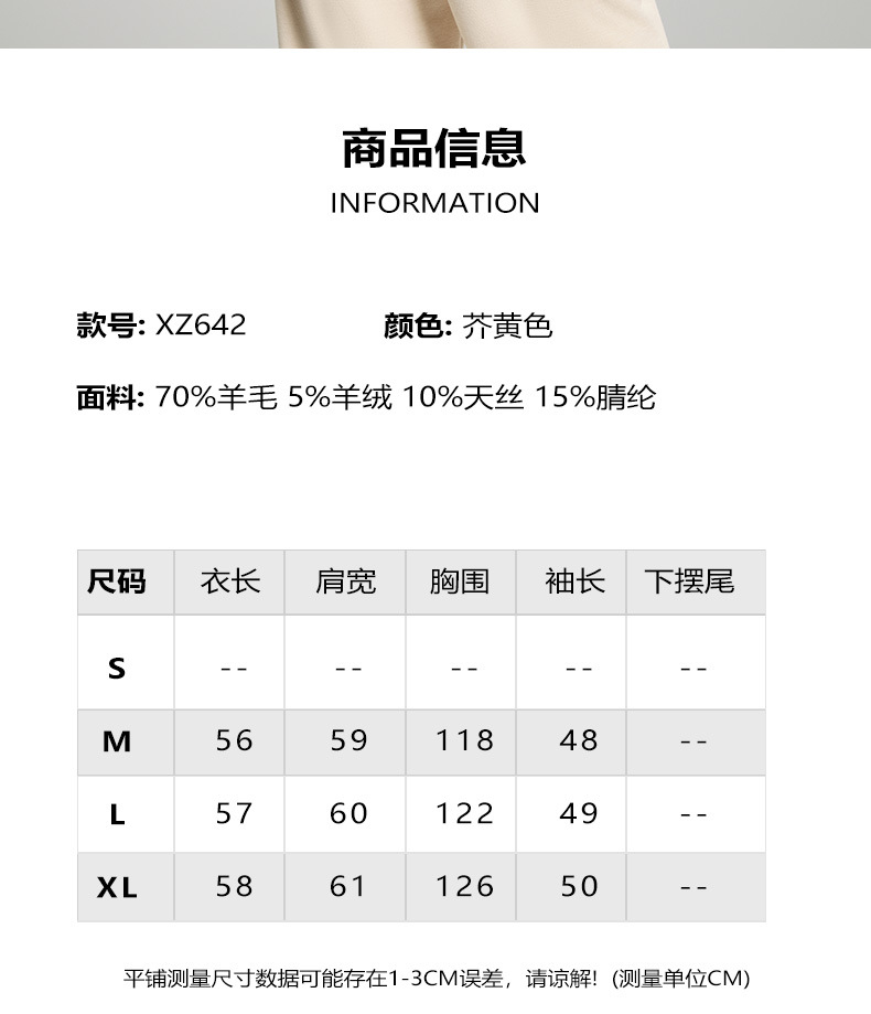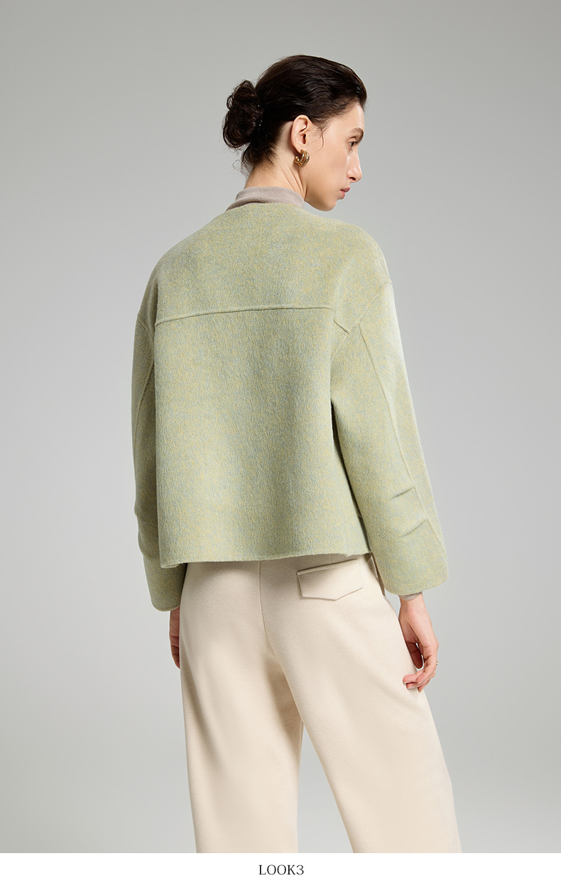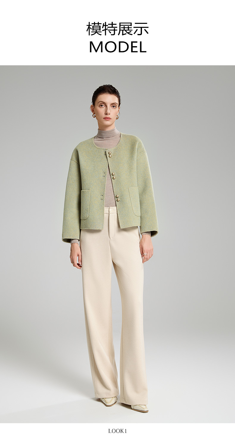 「自」全新升级【铂金会员514/天猫699/差价185】(94331)洛诗琳双面羊绒大衣2025冬季小香风气质圆领羊毛短外套女