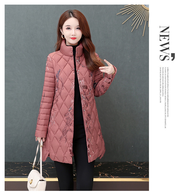 QYMTYP-18389-Y轻薄棱格棉衣中老年妈妈装刺锈不对称棉袄秋冬季加棉保暖棉服外套 商品图0