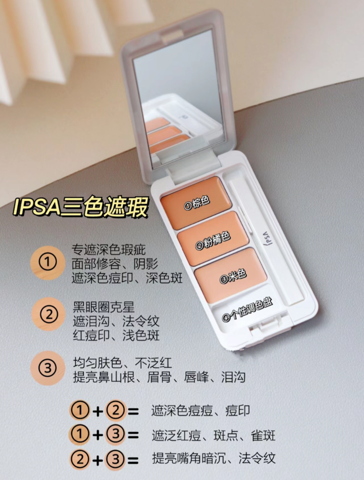👑IPSA三色遮瑕膏人气遮瑕 👍 IPSA三色遮瑕膏能调节出最佳的色彩,堪称完美调色! 🌈3款选色,能随各种肤色调整,长时间完美服贴! 💦配合SPF25,PA+++紫外线防护🔆,美白效果加倍延续 ㊙️可因瑕疵深浅或色调混合调配使用 ☘️高效遮盖色斑、雀斑、暗疮印、黑眼圈、👣嘴角或鼻翼的暗哑位置及粗大毛孔等。