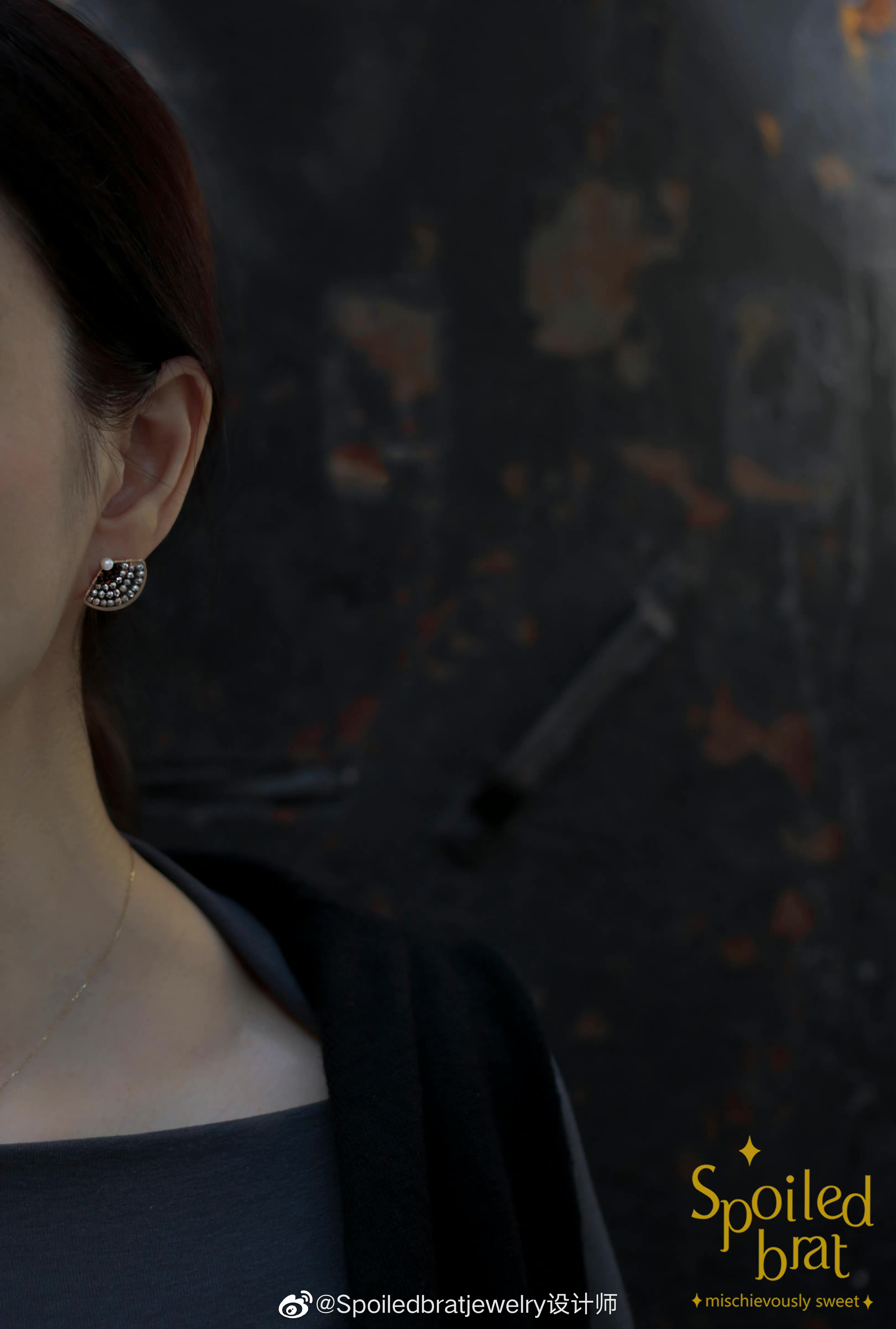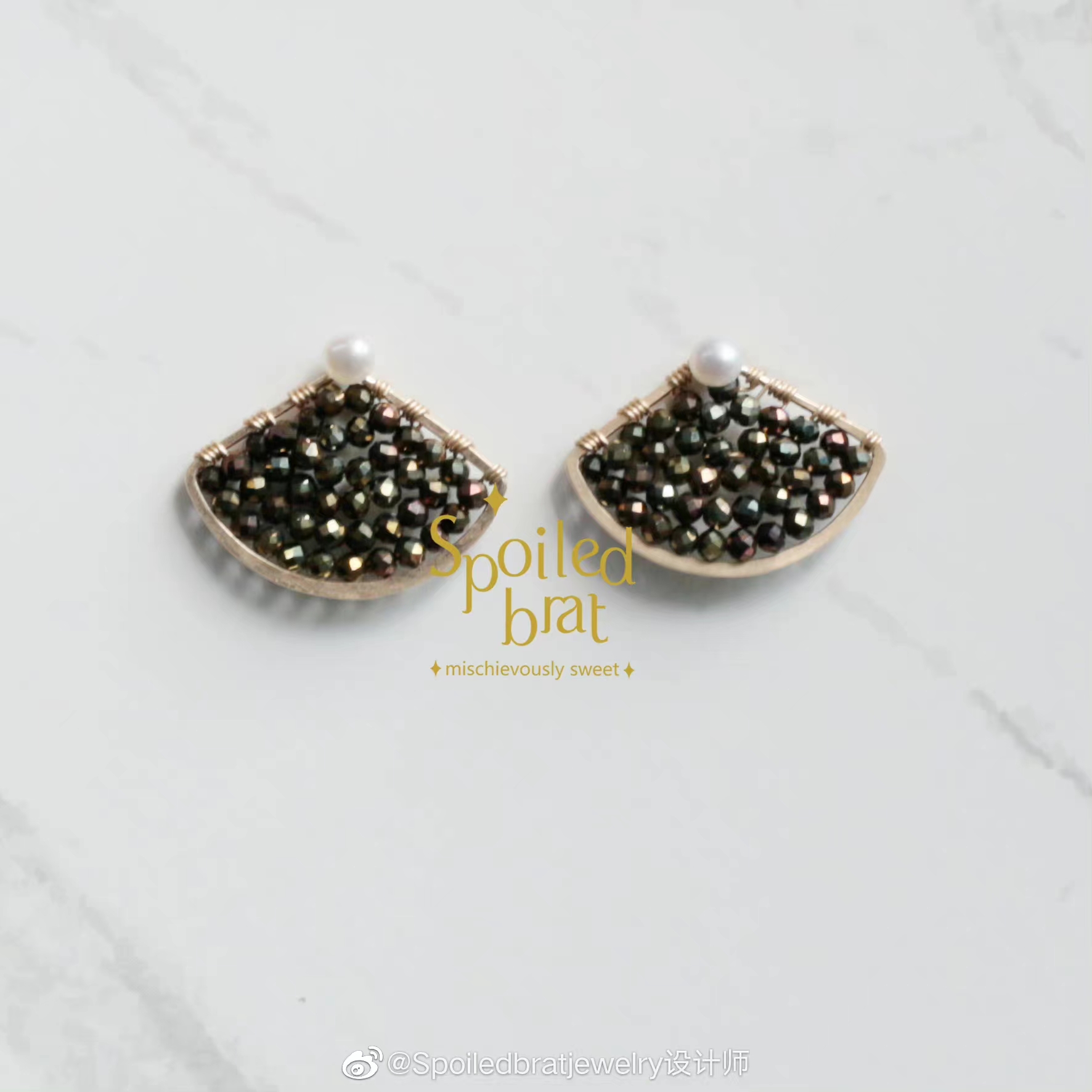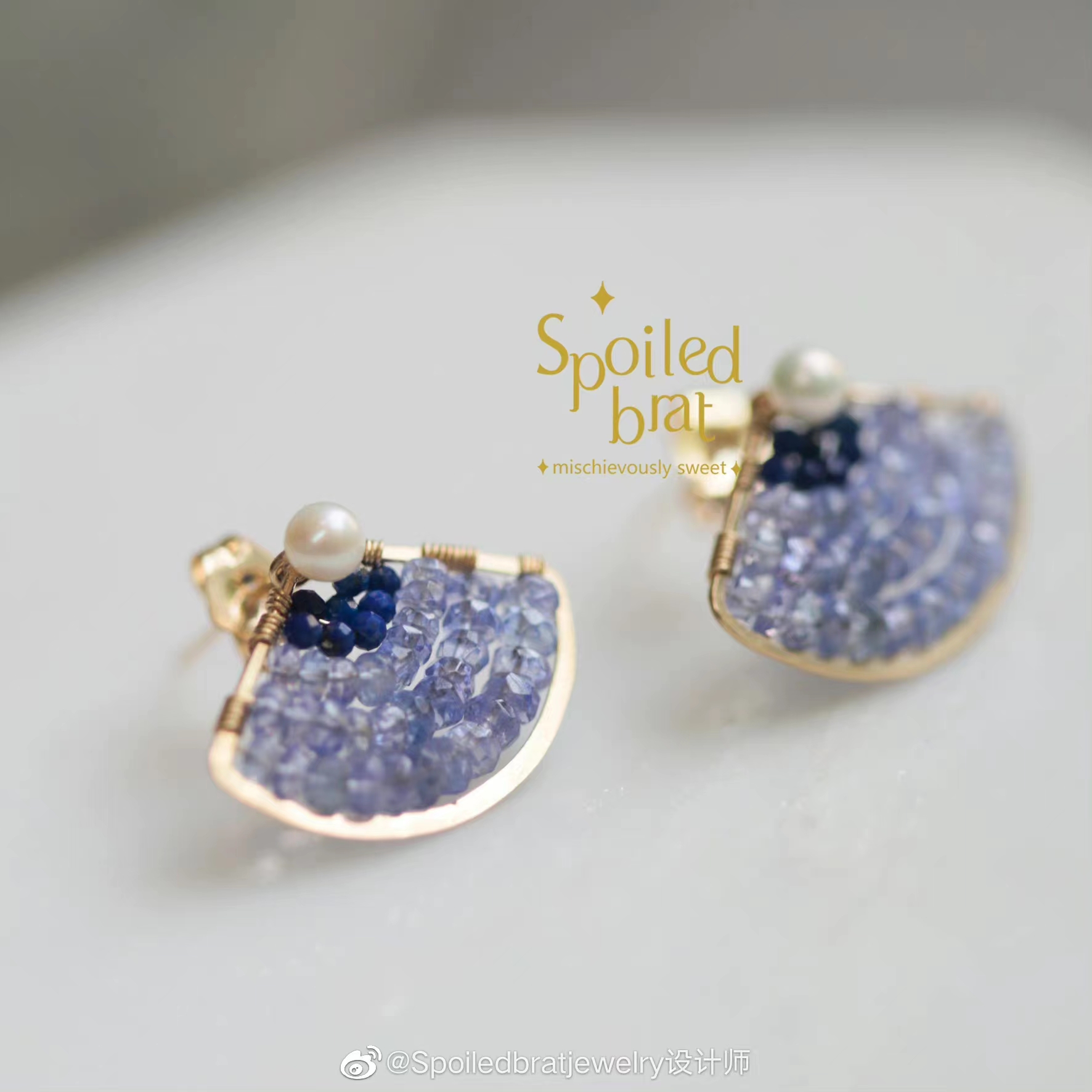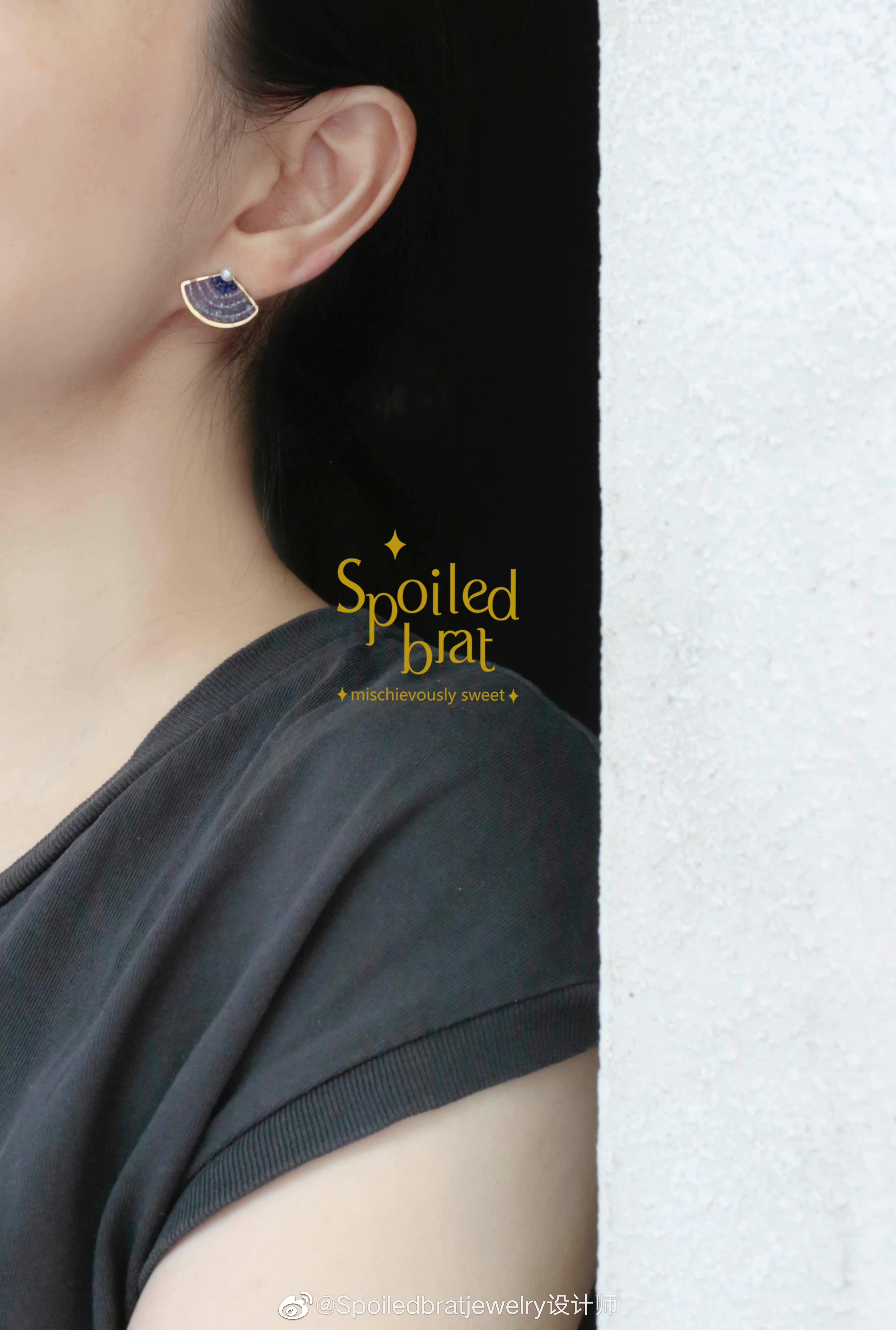 SpoiledBrat Jewelry 斜长石/尖晶石/铁矿石/堇青石扇形耳钉