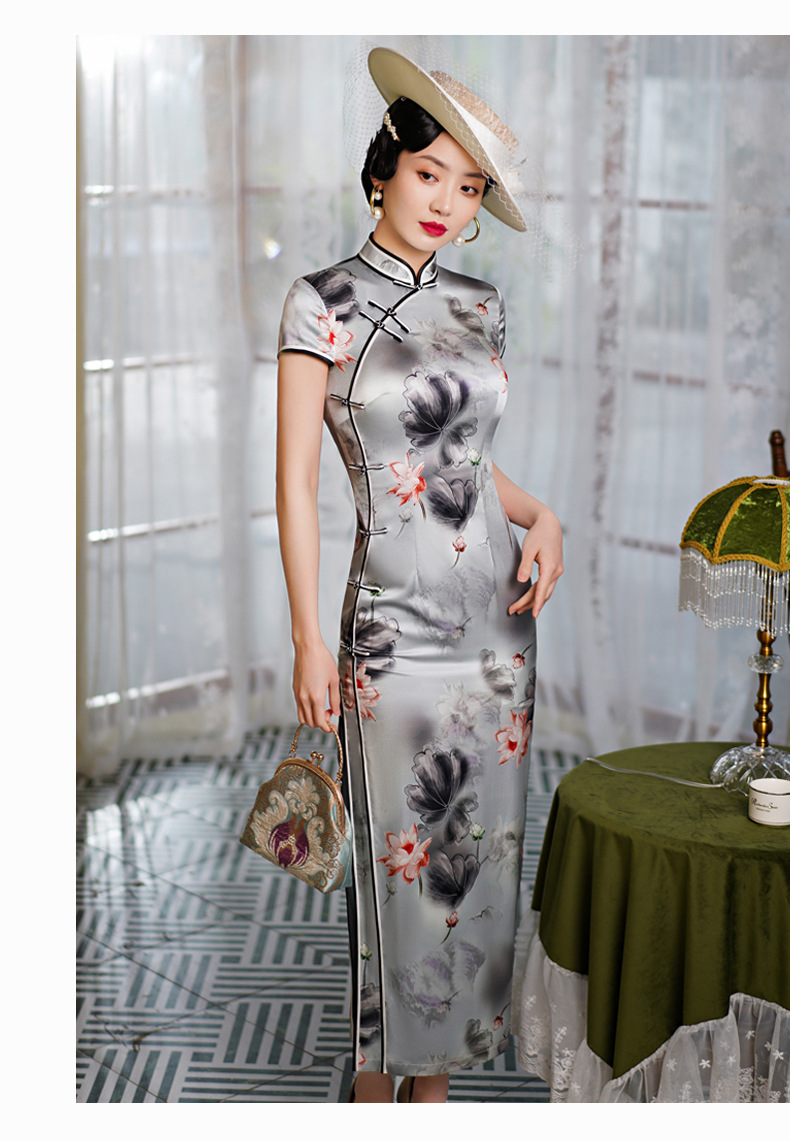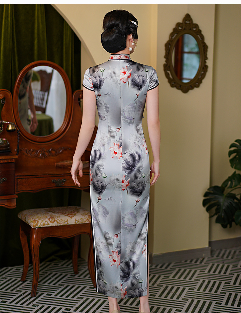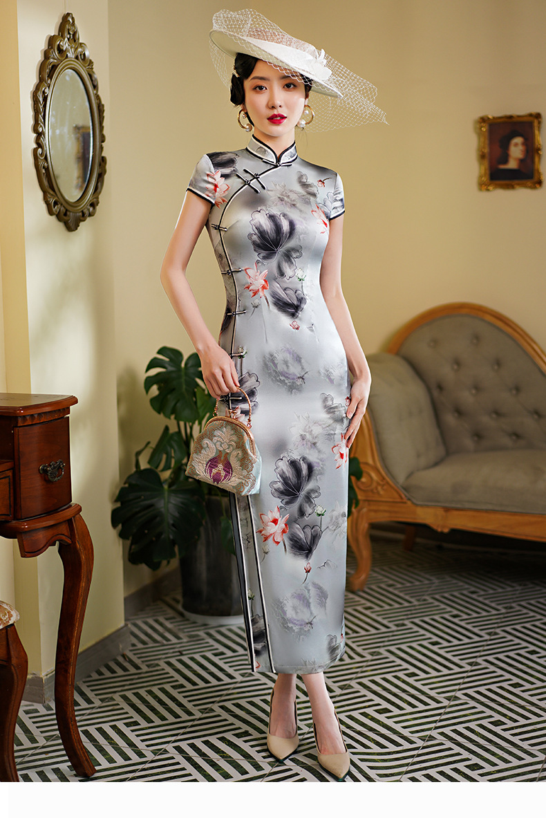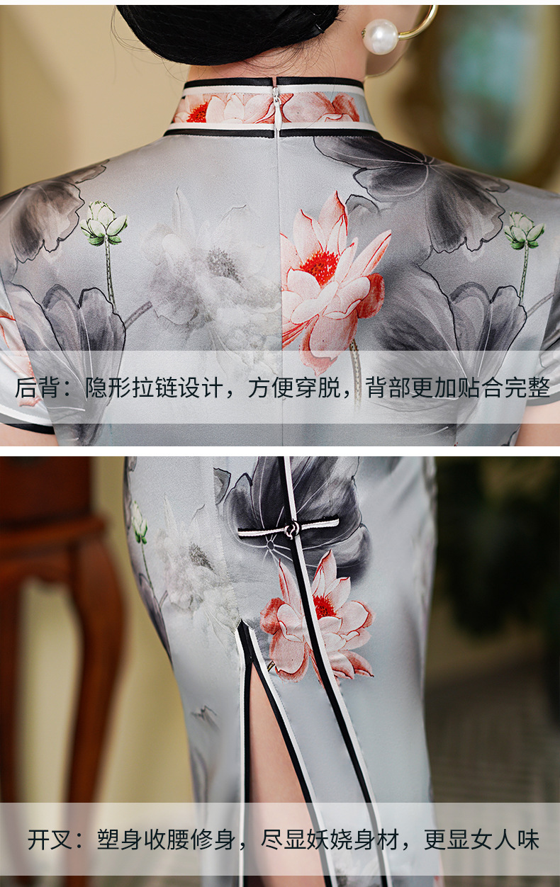 WX-WXG-15新款真丝旗袍桑蚕丝复古夏季长款女改良日常年轻款气质