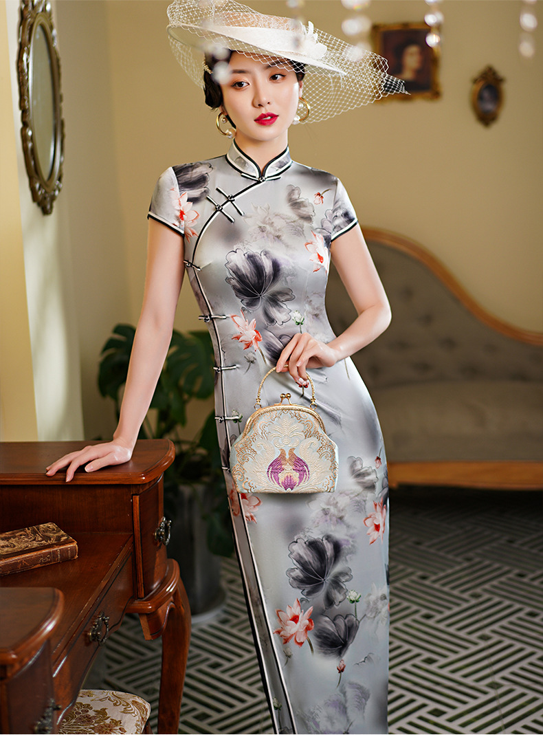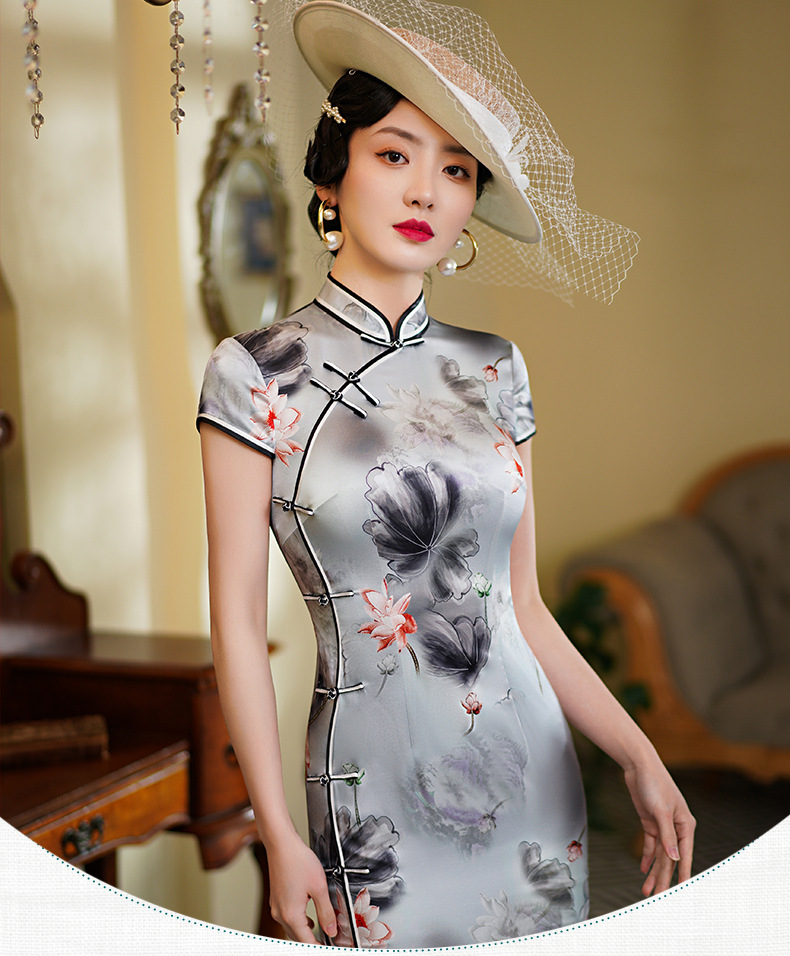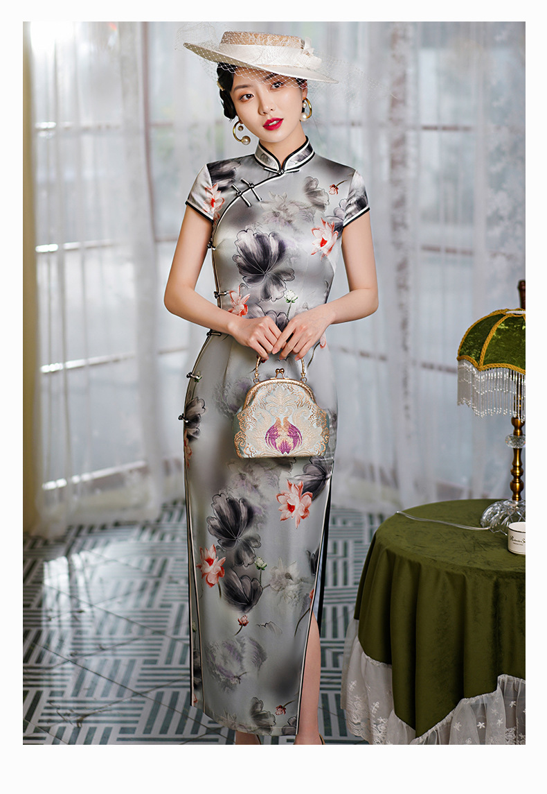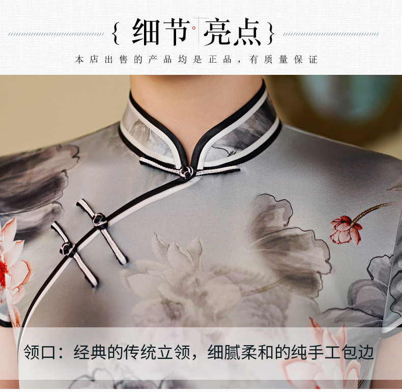 WX-WXG-15新款真丝旗袍桑蚕丝复古夏季长款女改良日常年轻款气质