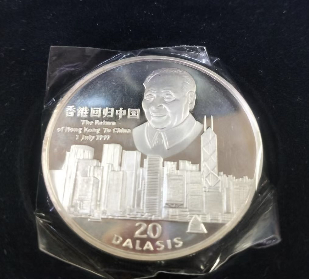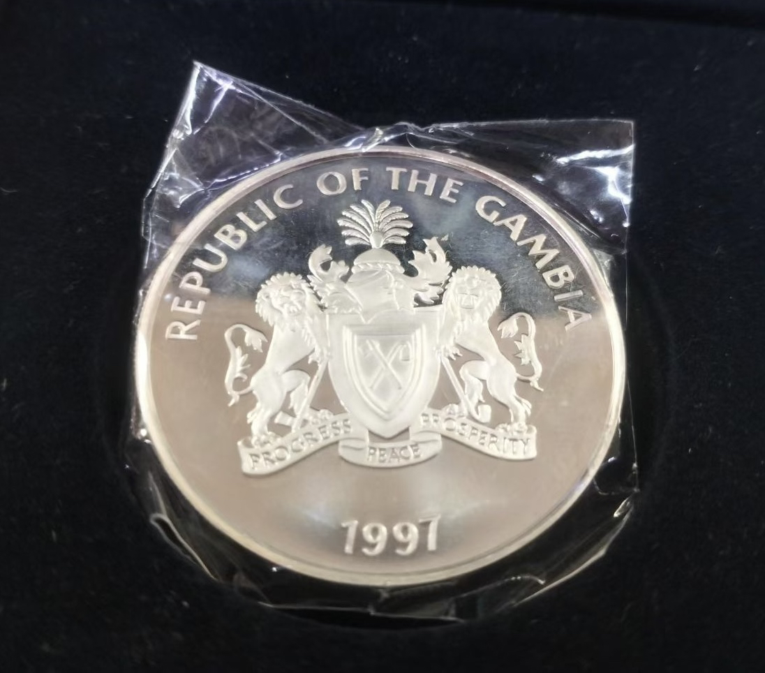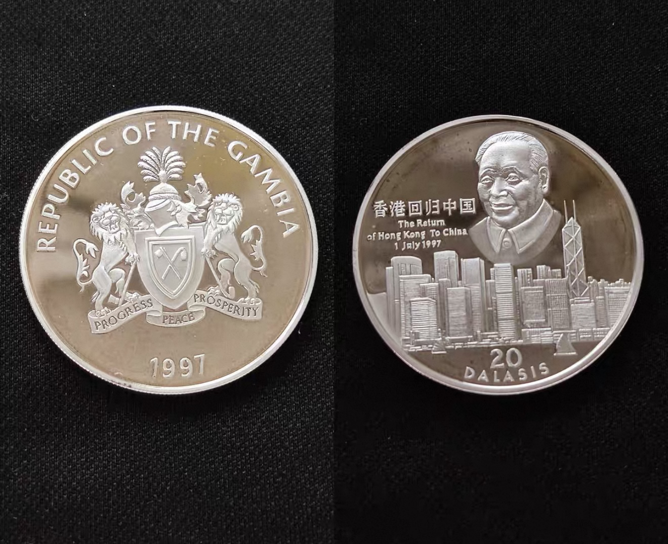 冈比亚1997年香港回归 20达拉西精制 1盎司全新银币