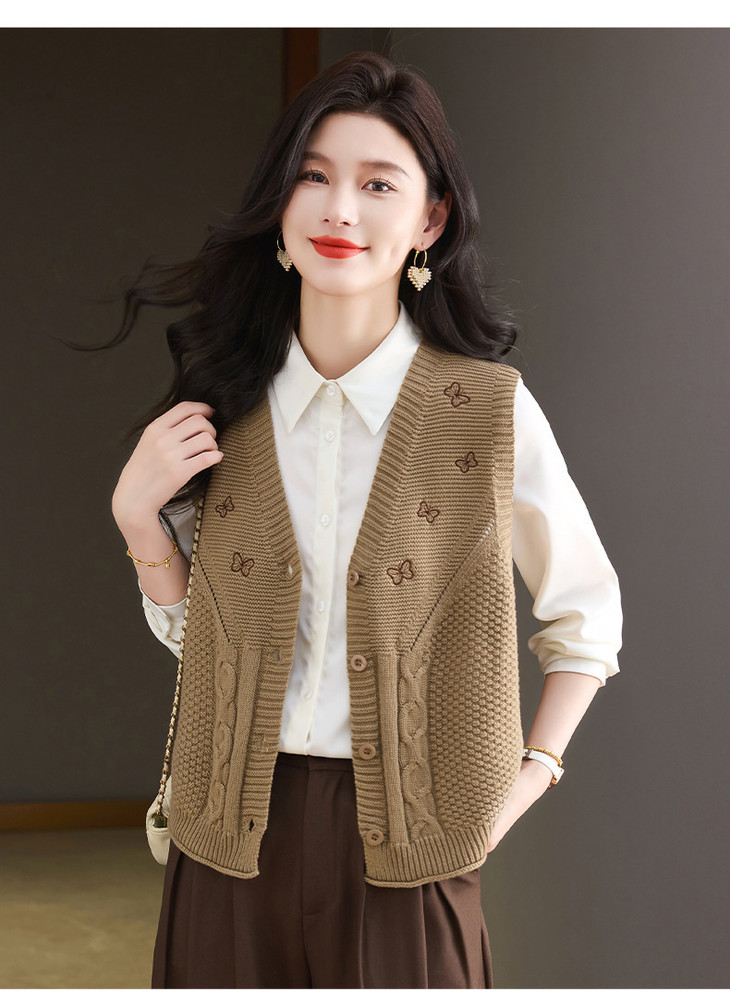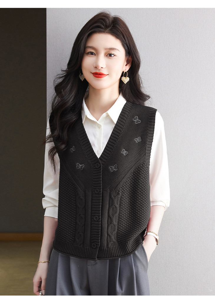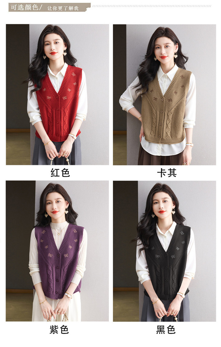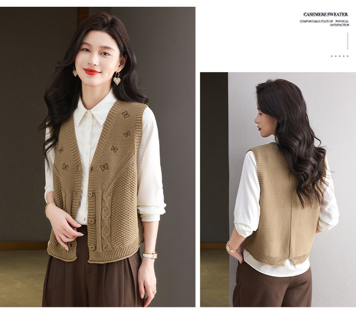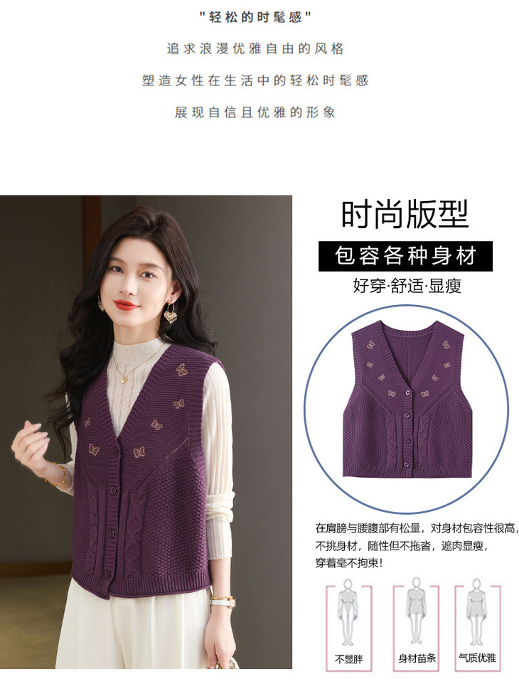 坎肩绣花马夹上衣外搭马甲,针织背心毛衣外套开衫CC-13-98001