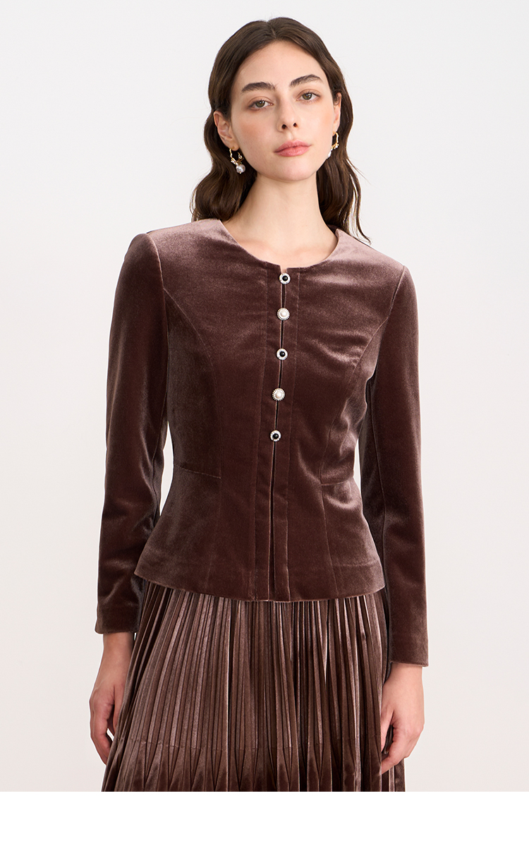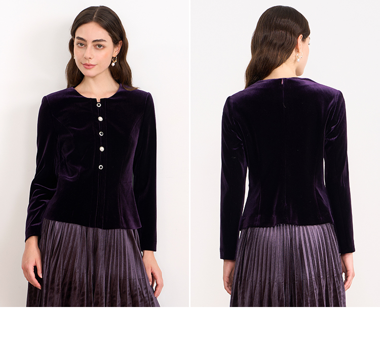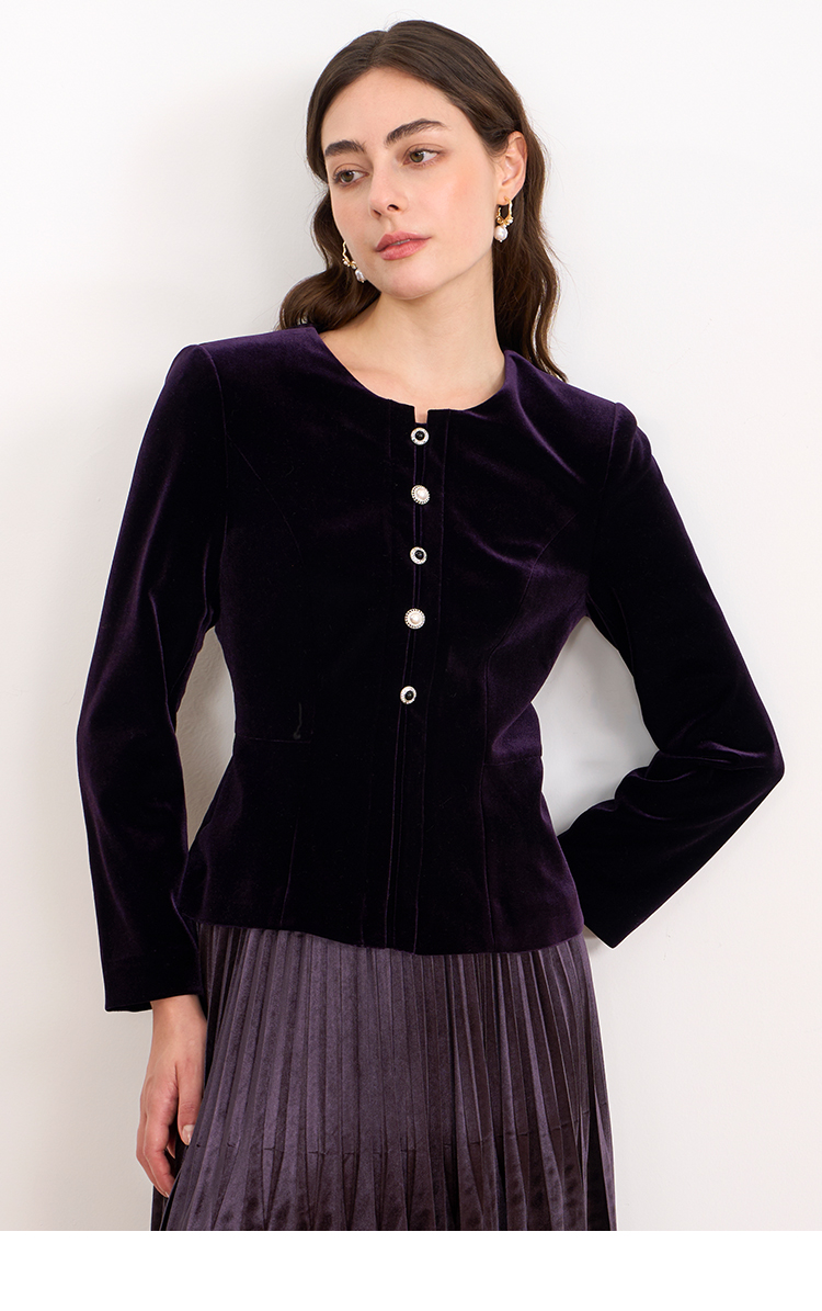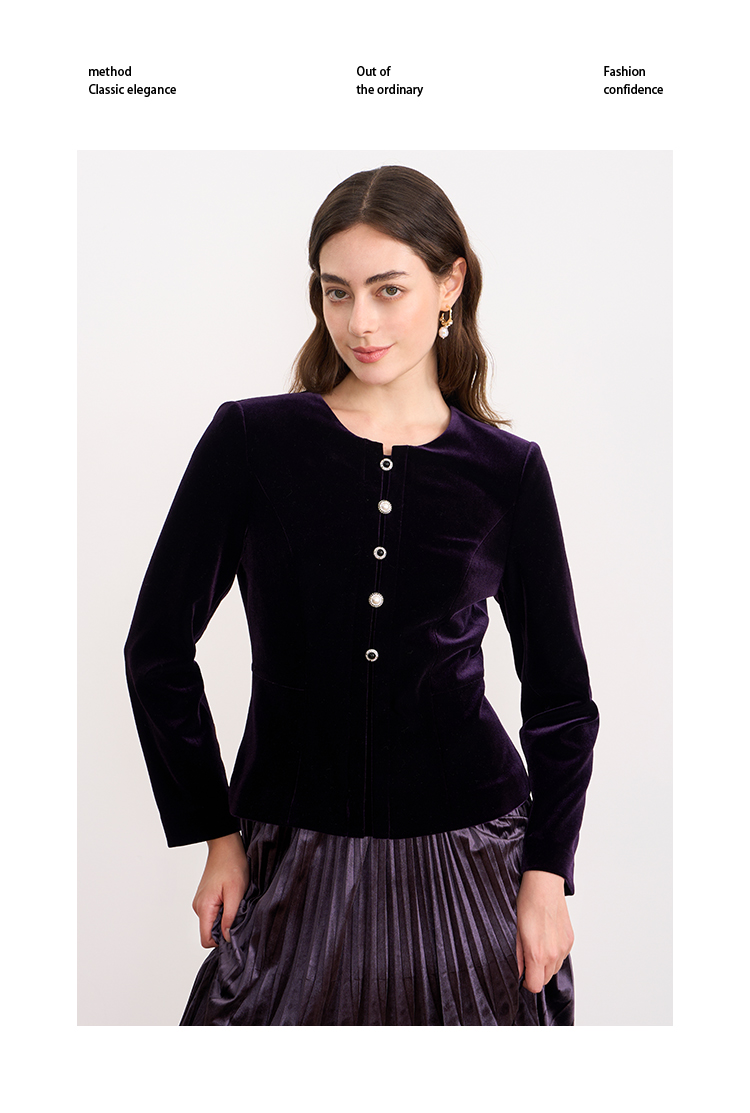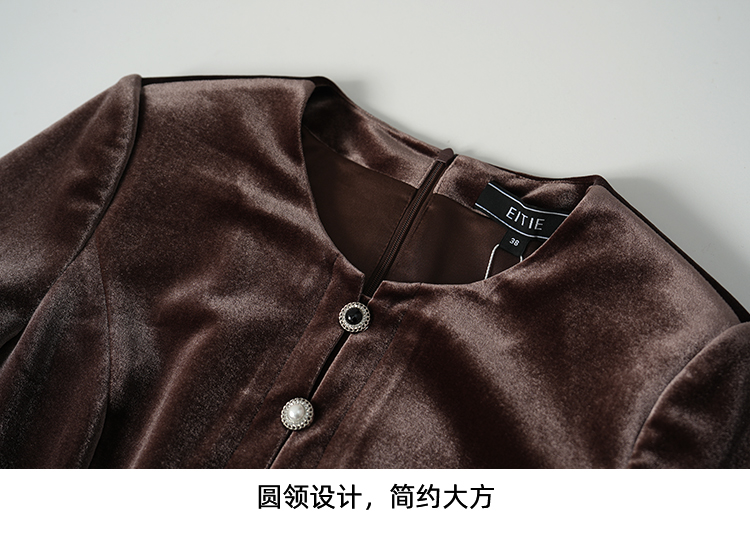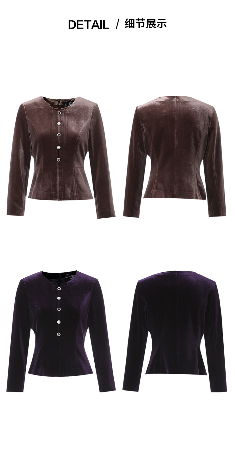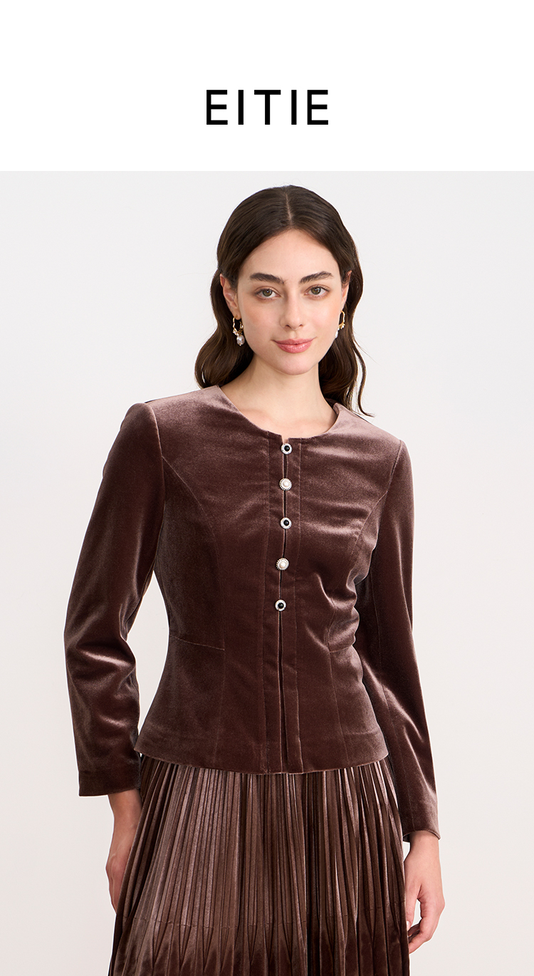 【复古丝绒修身上衣】EITIE爱特爱精致纽扣显瘦优雅秋冬新款小上衣D2513909