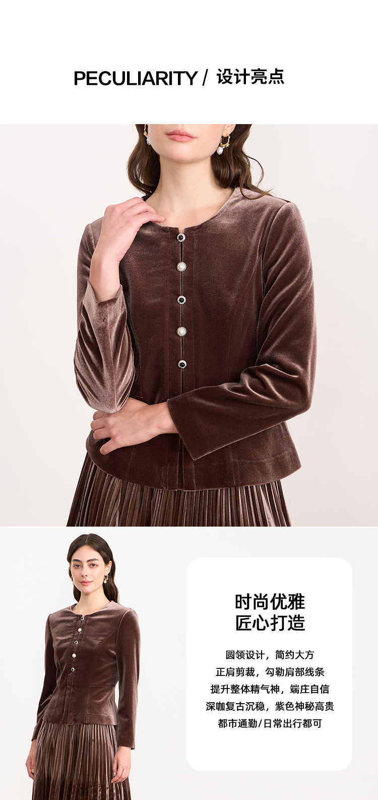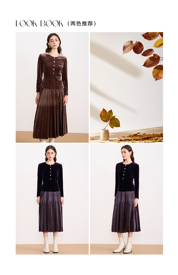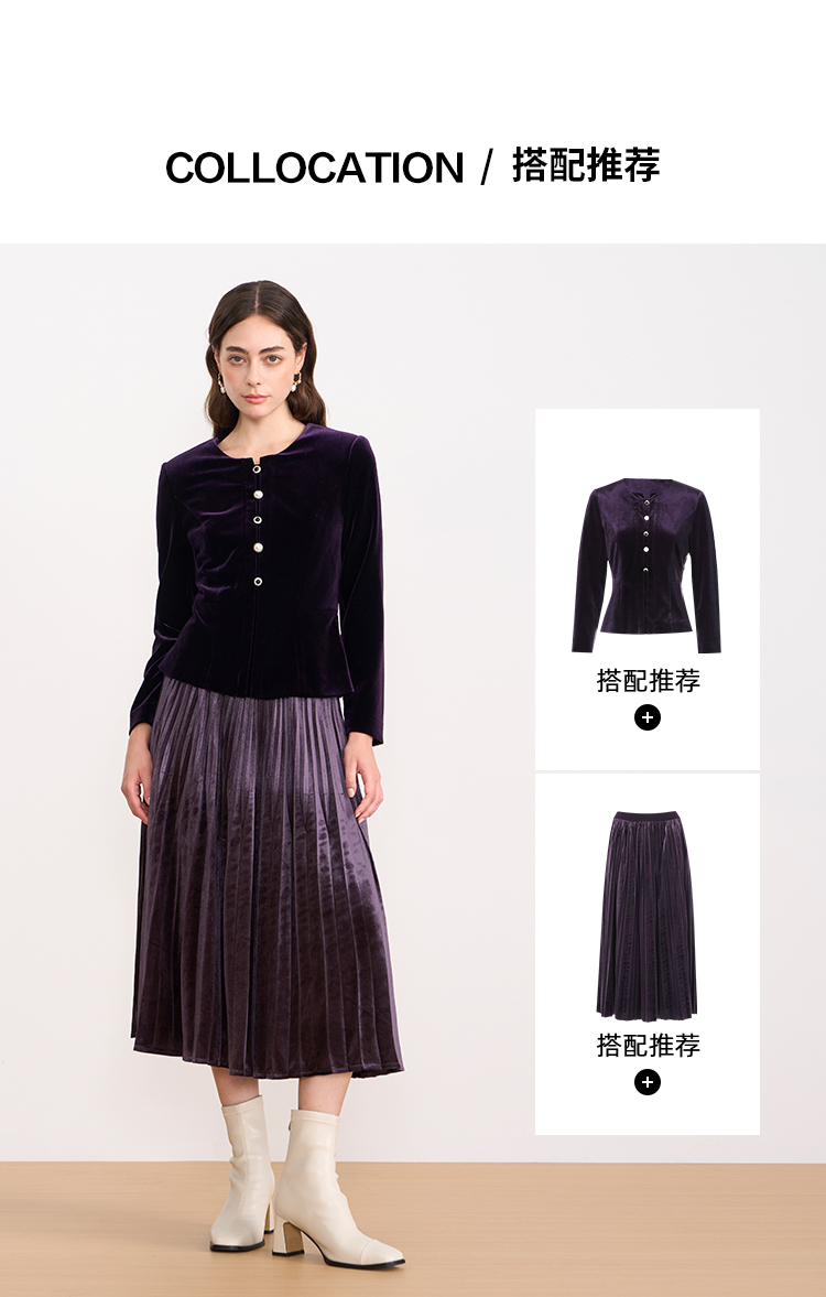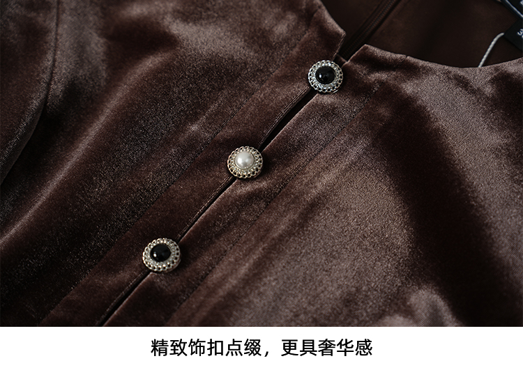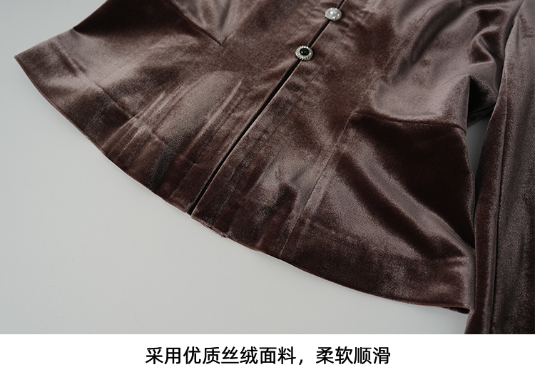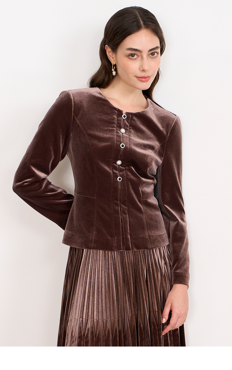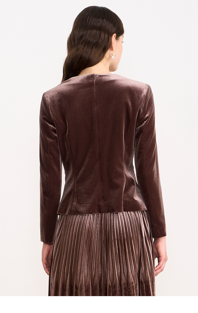 【复古丝绒修身上衣】EITIE爱特爱精致纽扣显瘦优雅秋冬新款小上衣D2513909