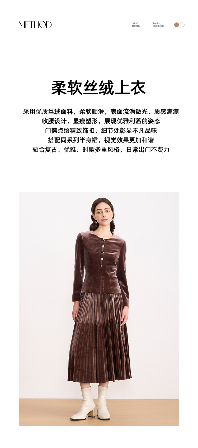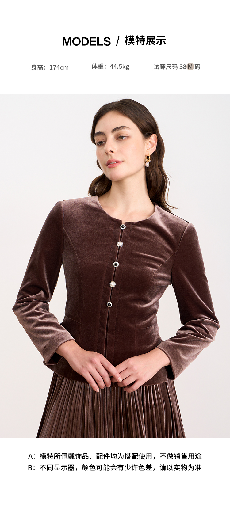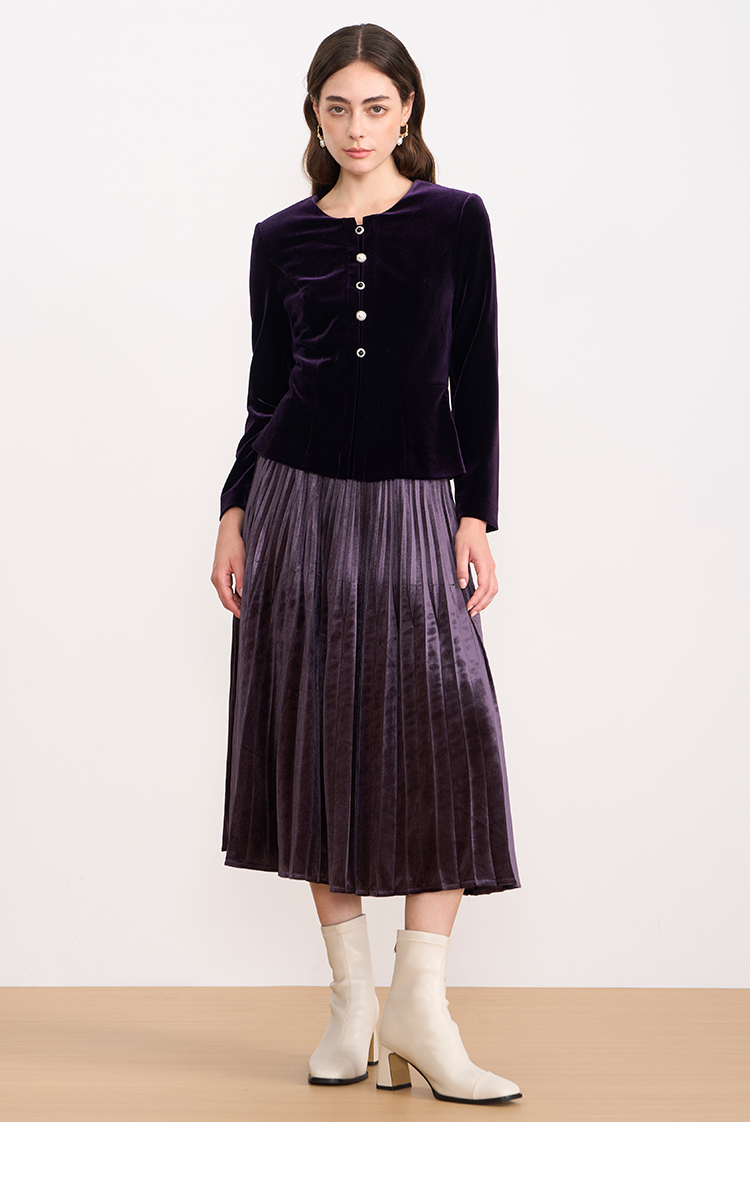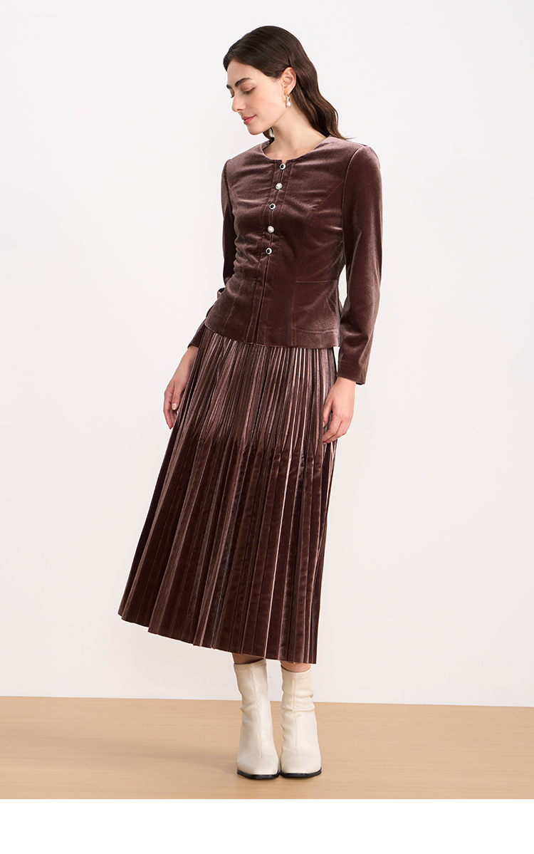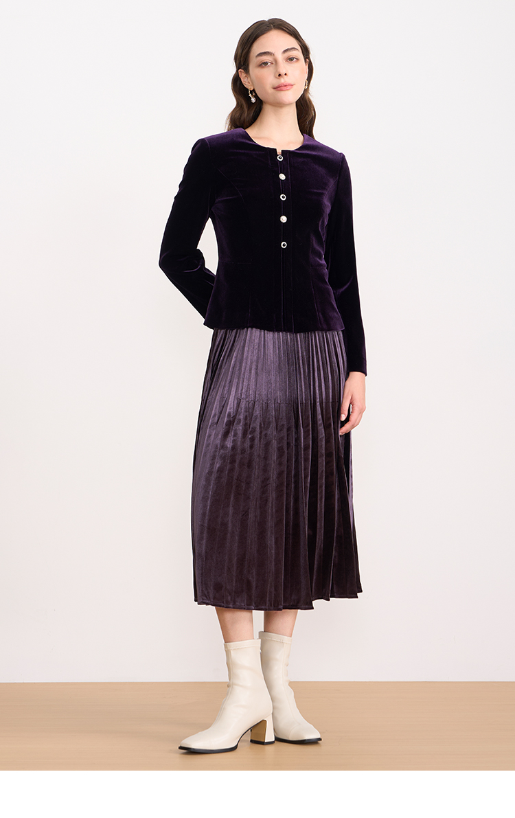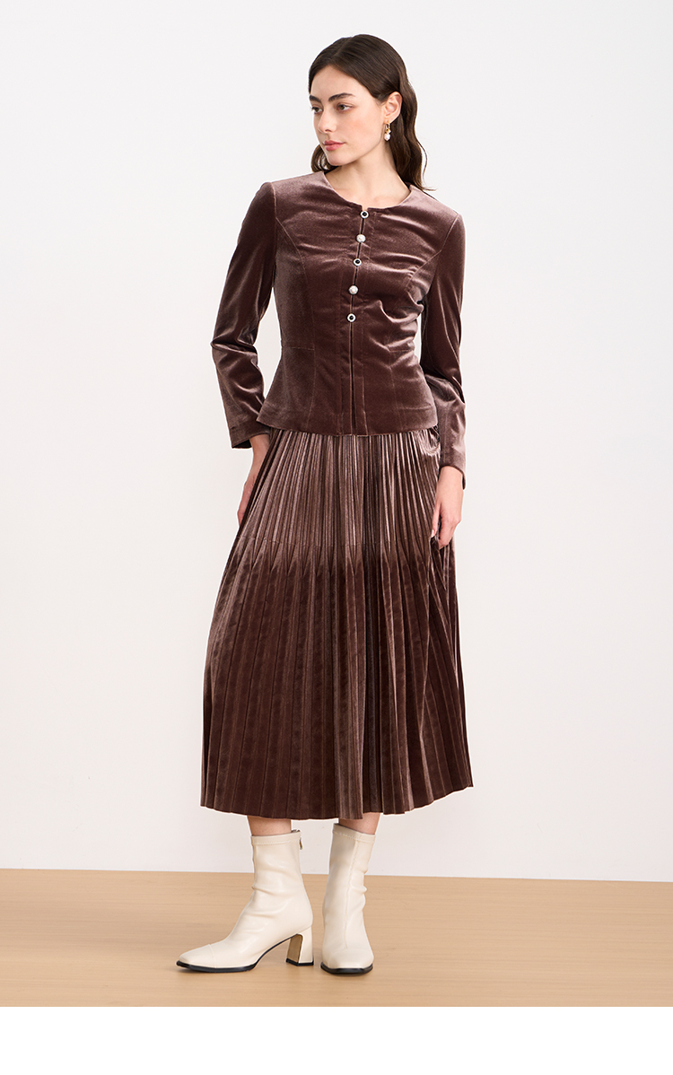 【复古丝绒修身上衣】EITIE爱特爱精致纽扣显瘦优雅秋冬新款小上衣D2513909