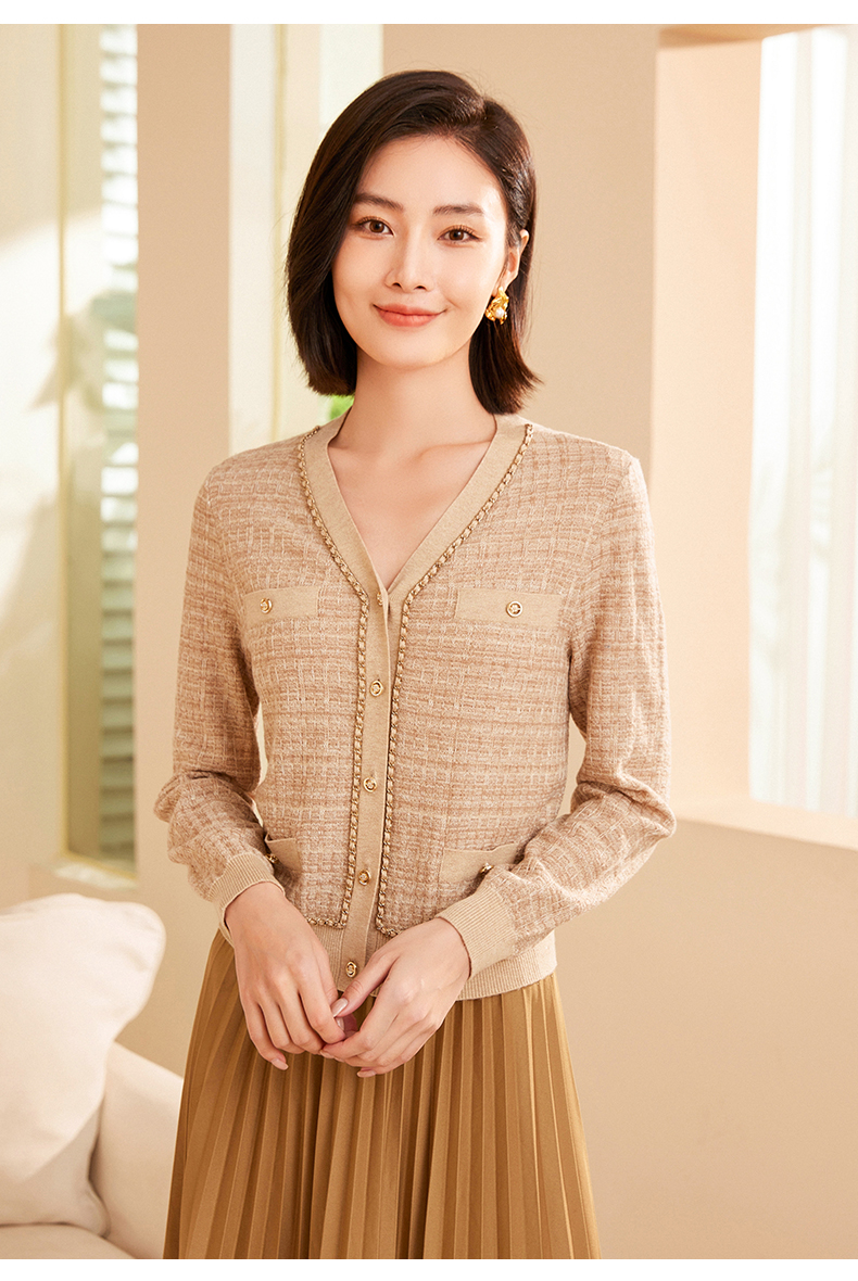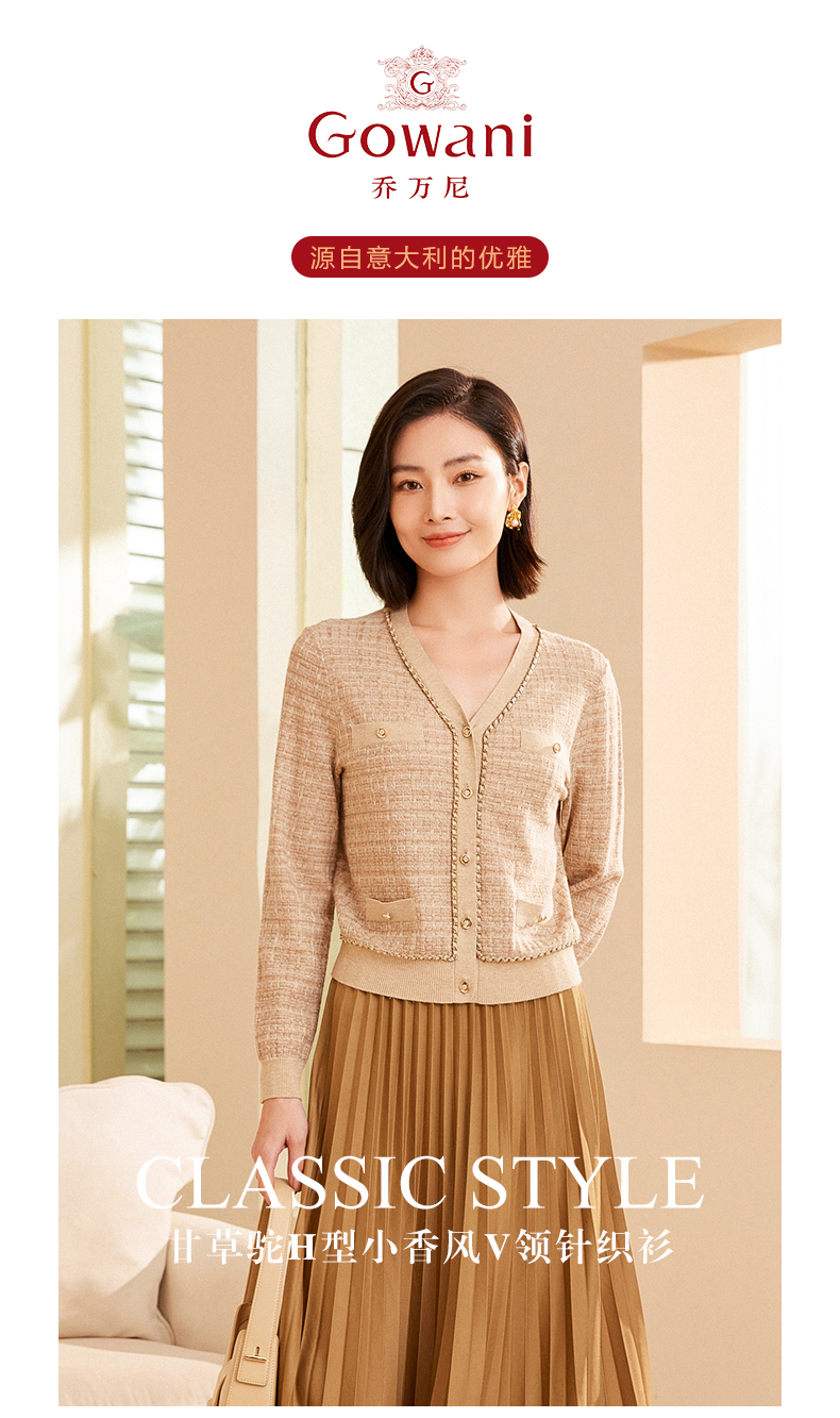 乔万尼针织衫女新款秋季小香风v领羊毛开衫上衣ET3M753