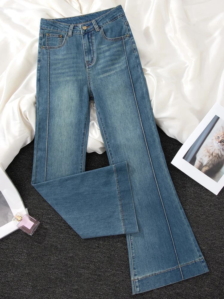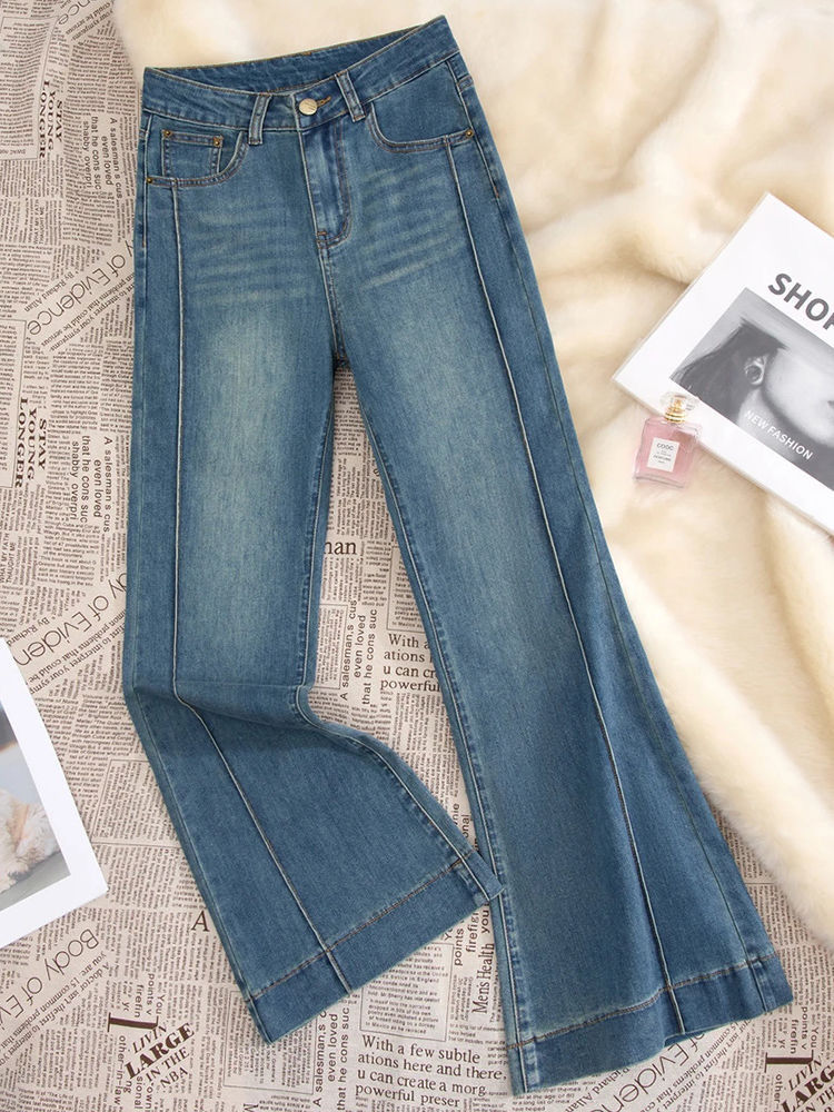 百媚生 复古高腰牛仔裤喇叭裤长裤256