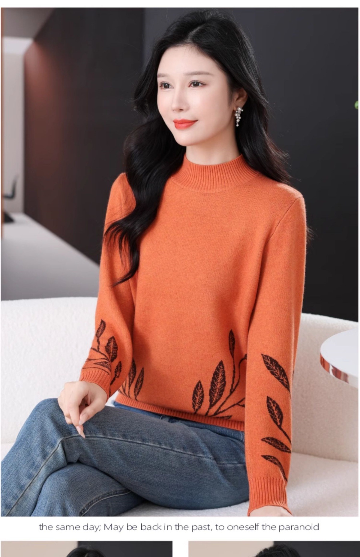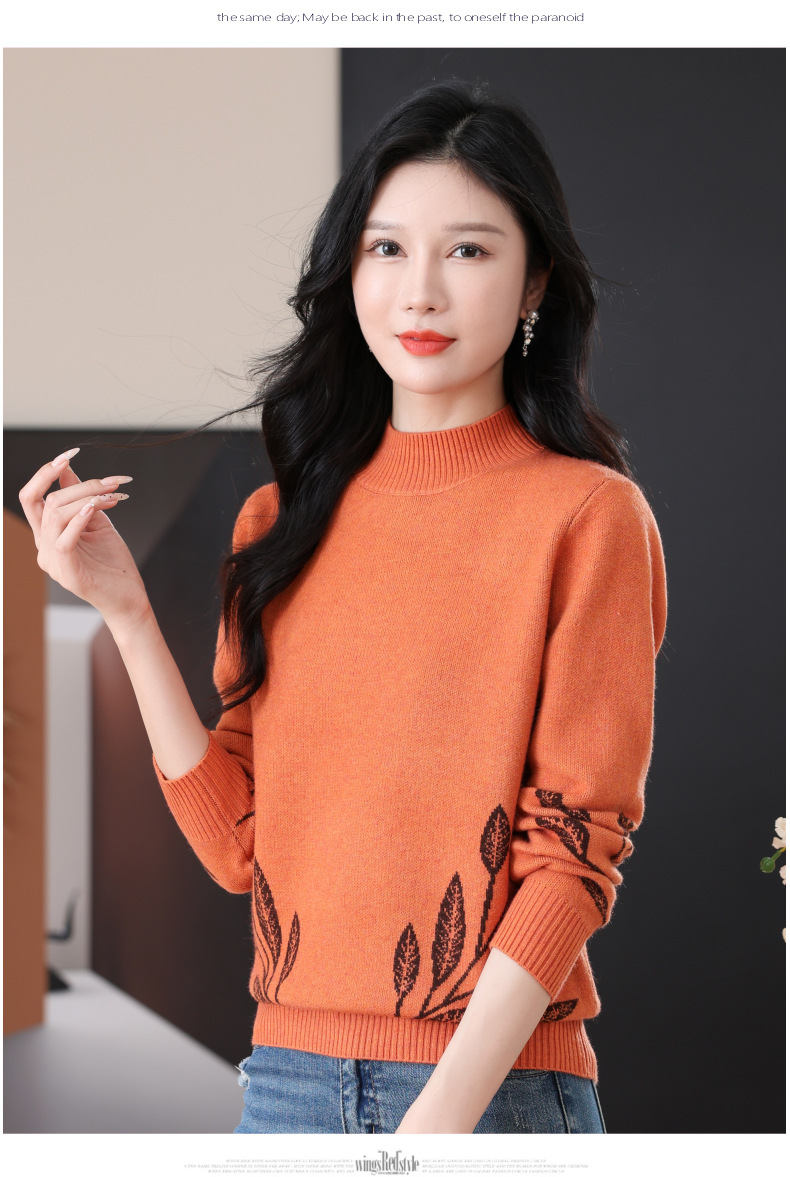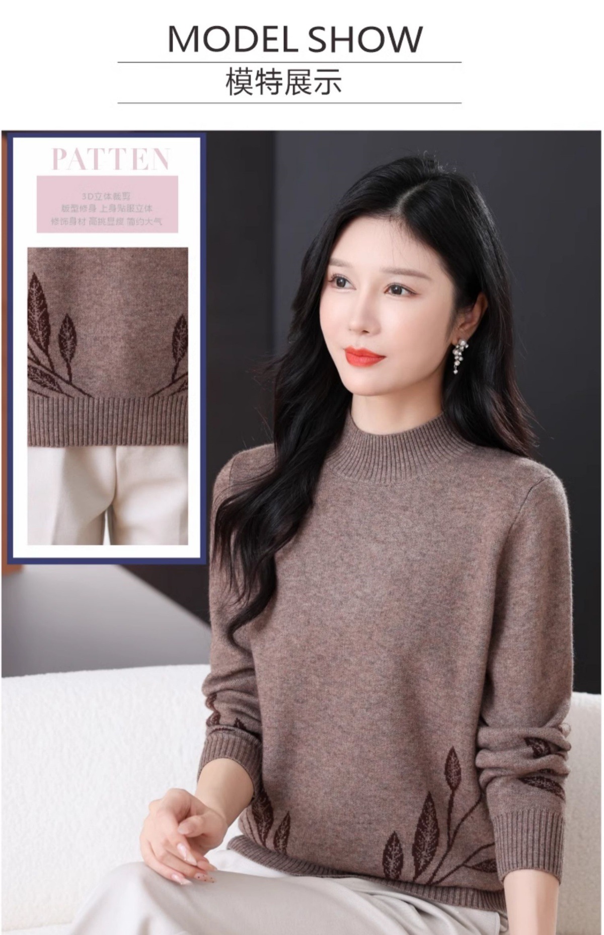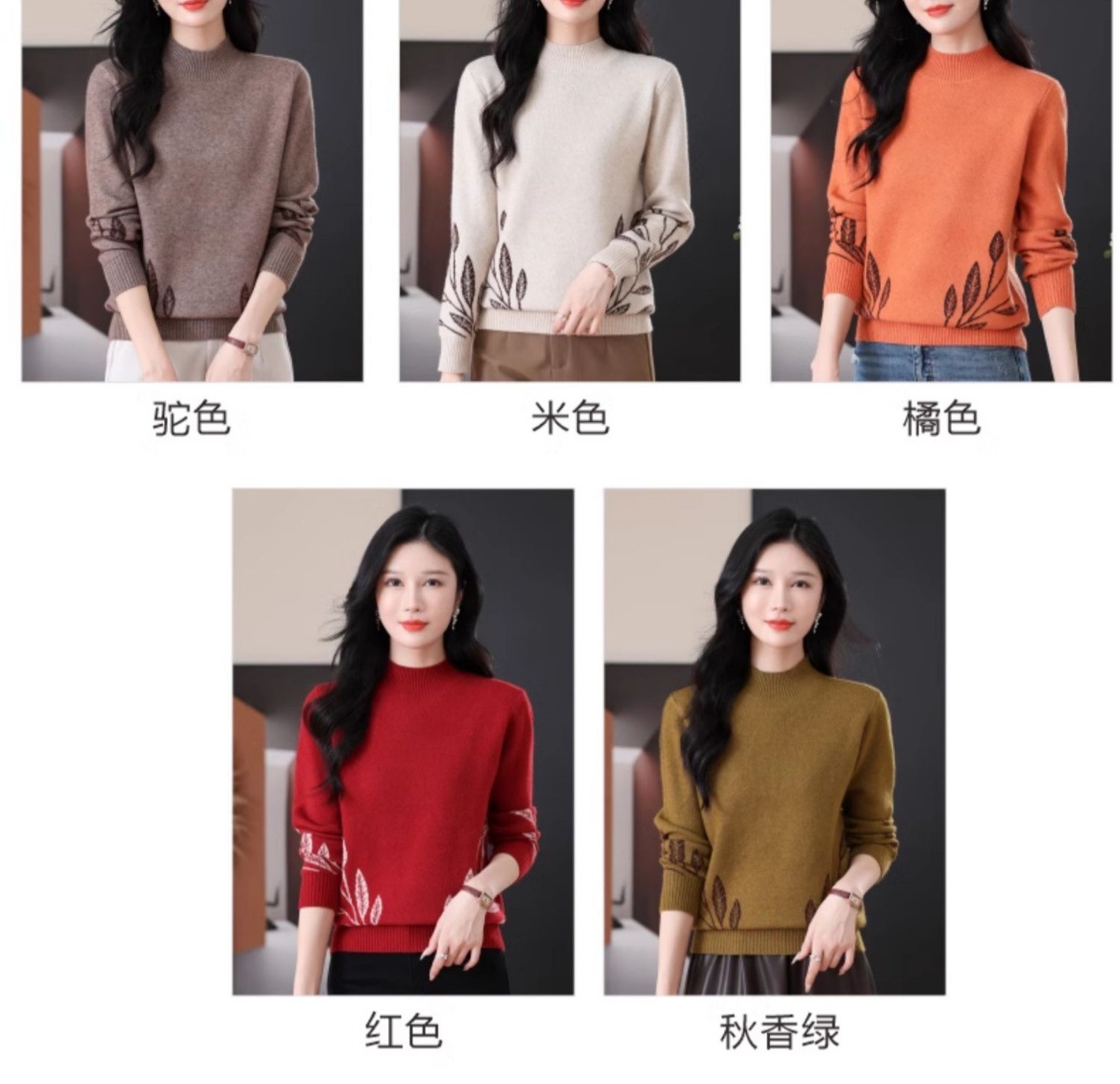 CC-103-8215内搭套头半高领保暖提花毛衣女士秋冬厚款新款国风打底针织衫上衣