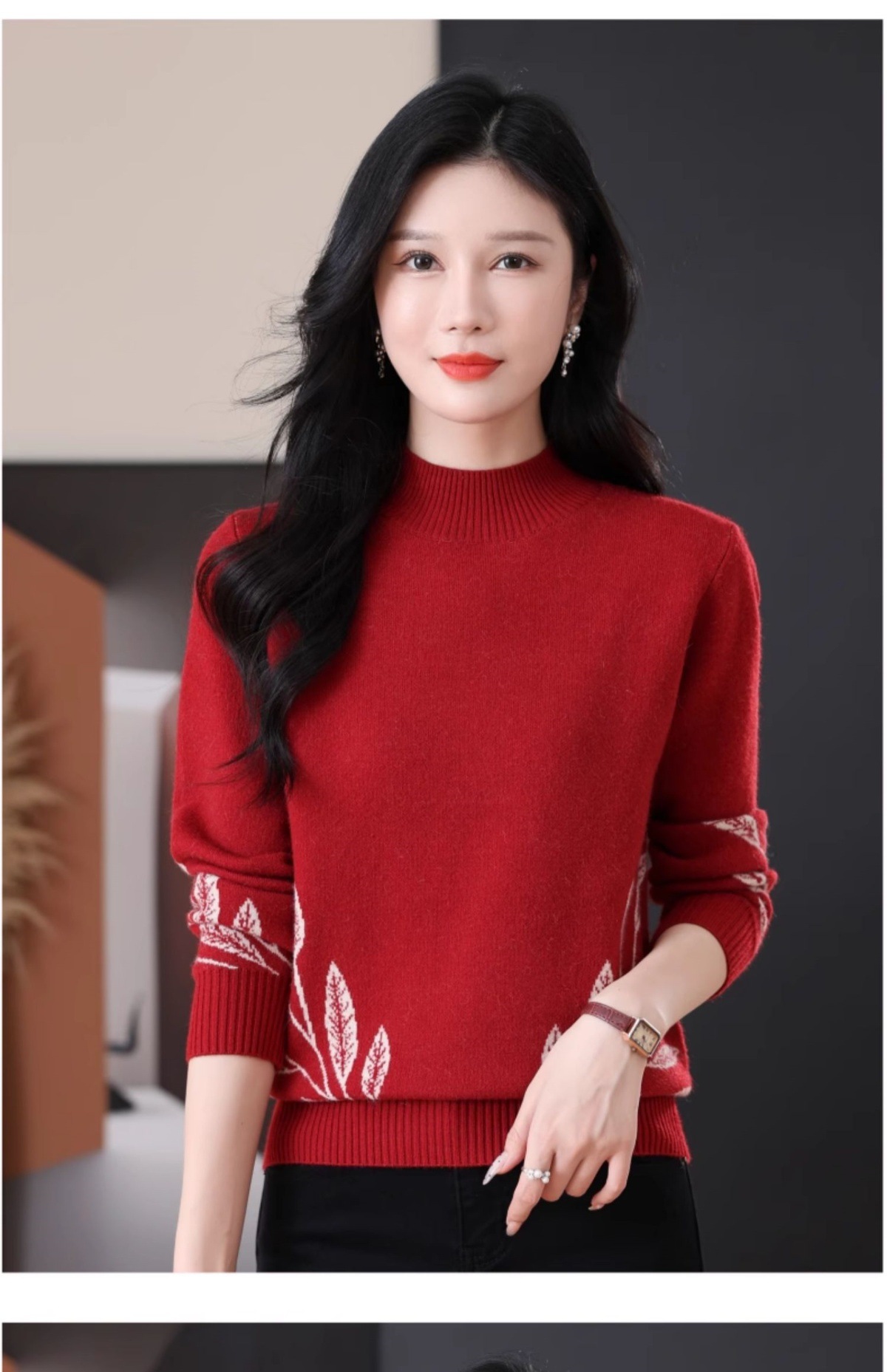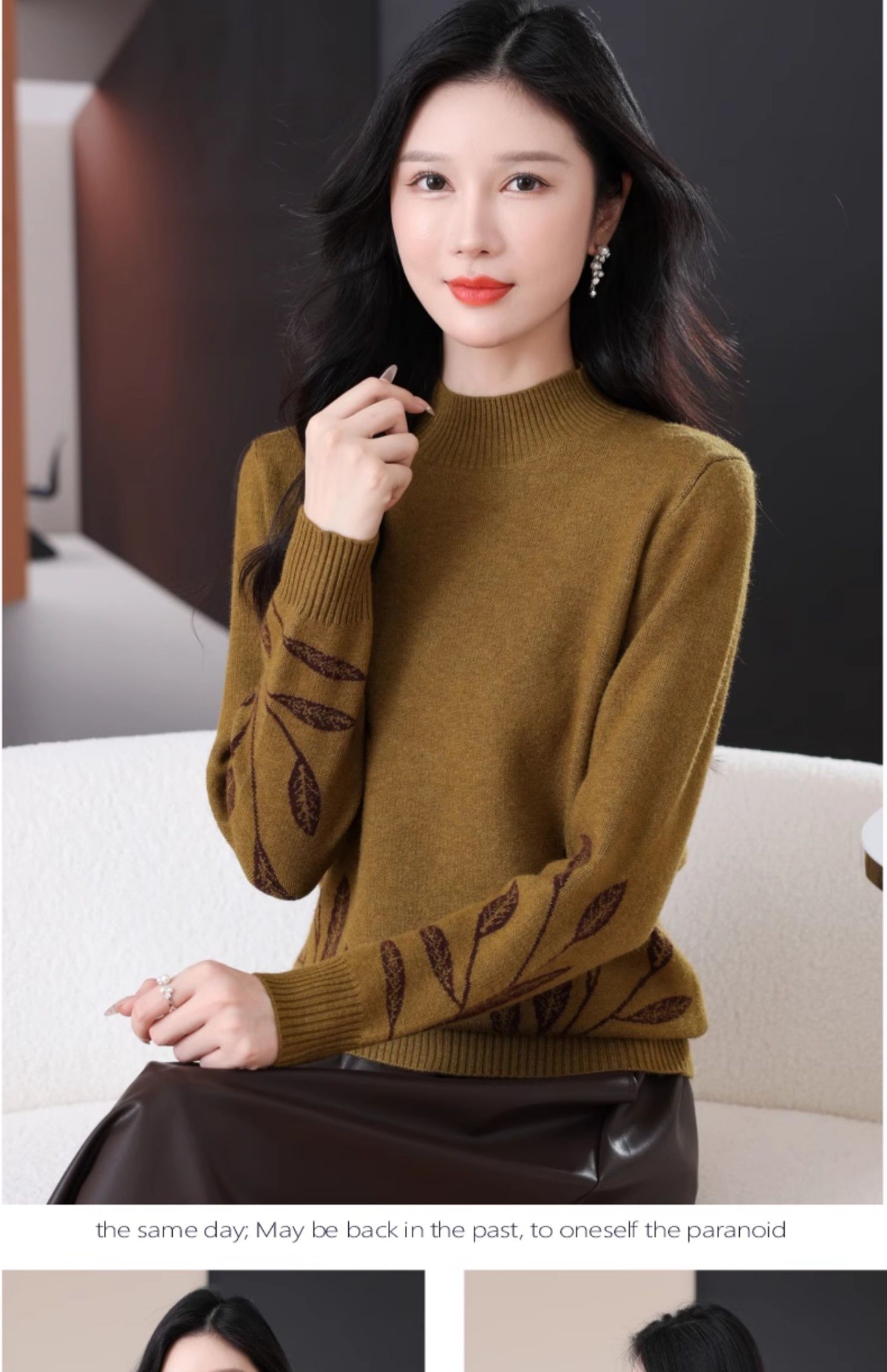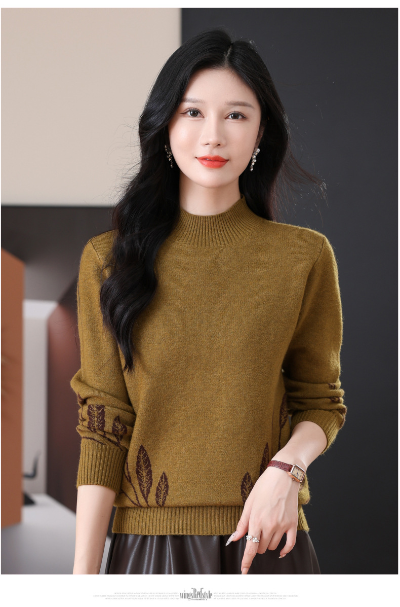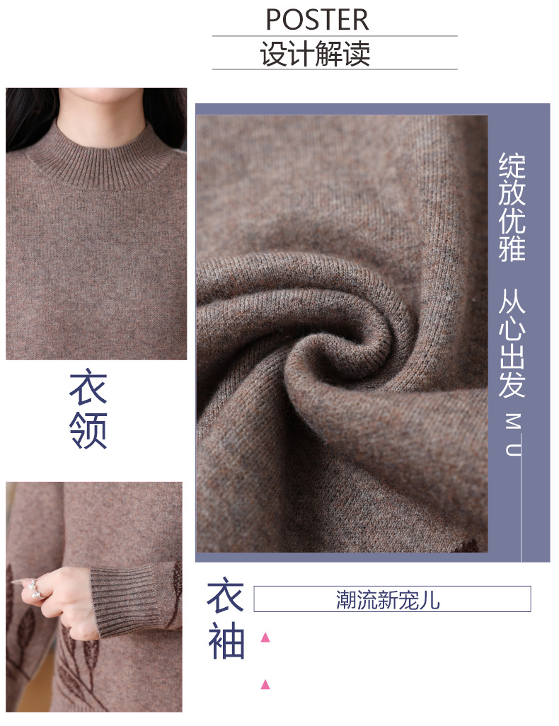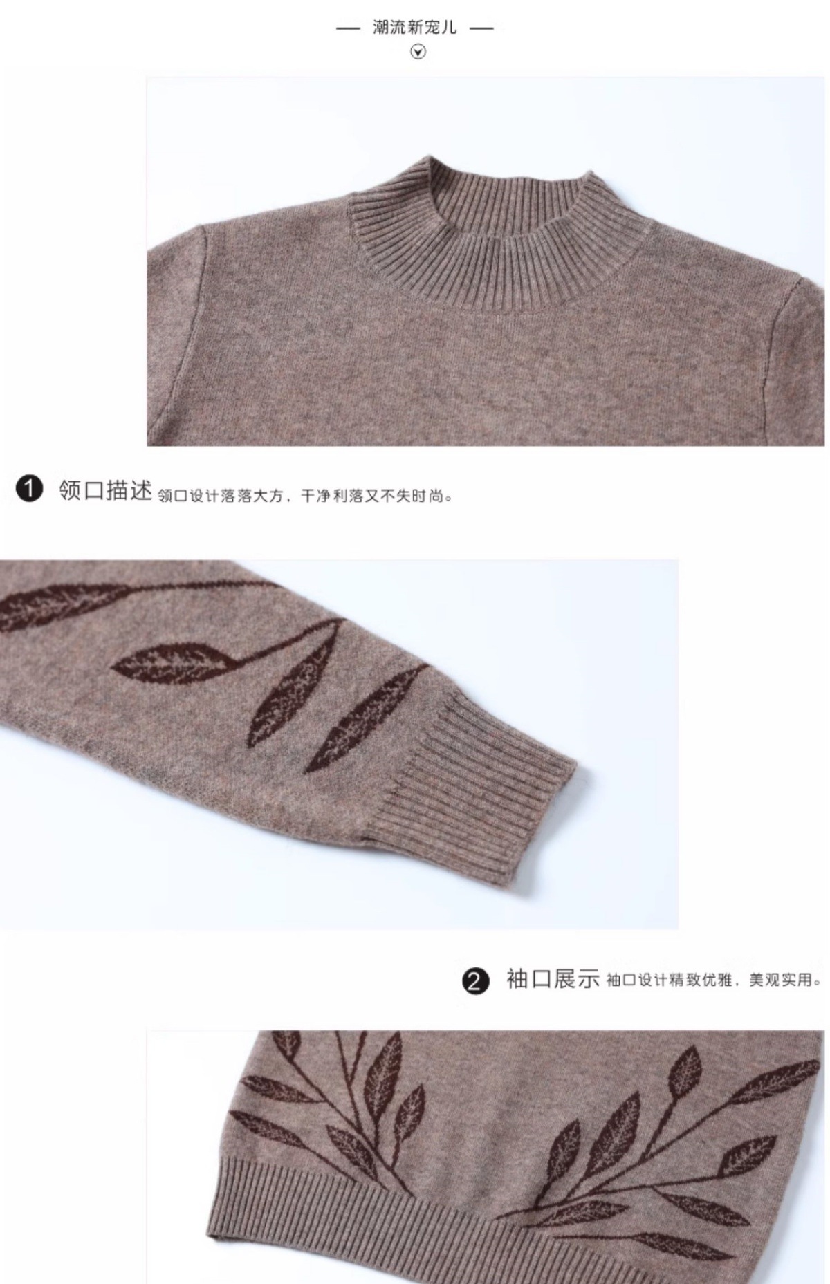 CC-103-8215内搭套头半高领保暖提花毛衣女士秋冬厚款新款国风打底针织衫上衣