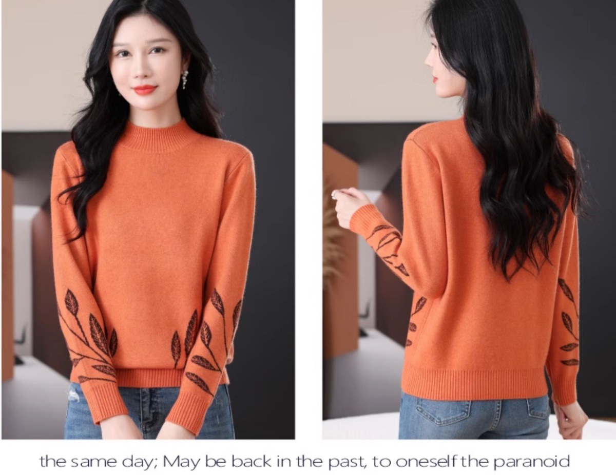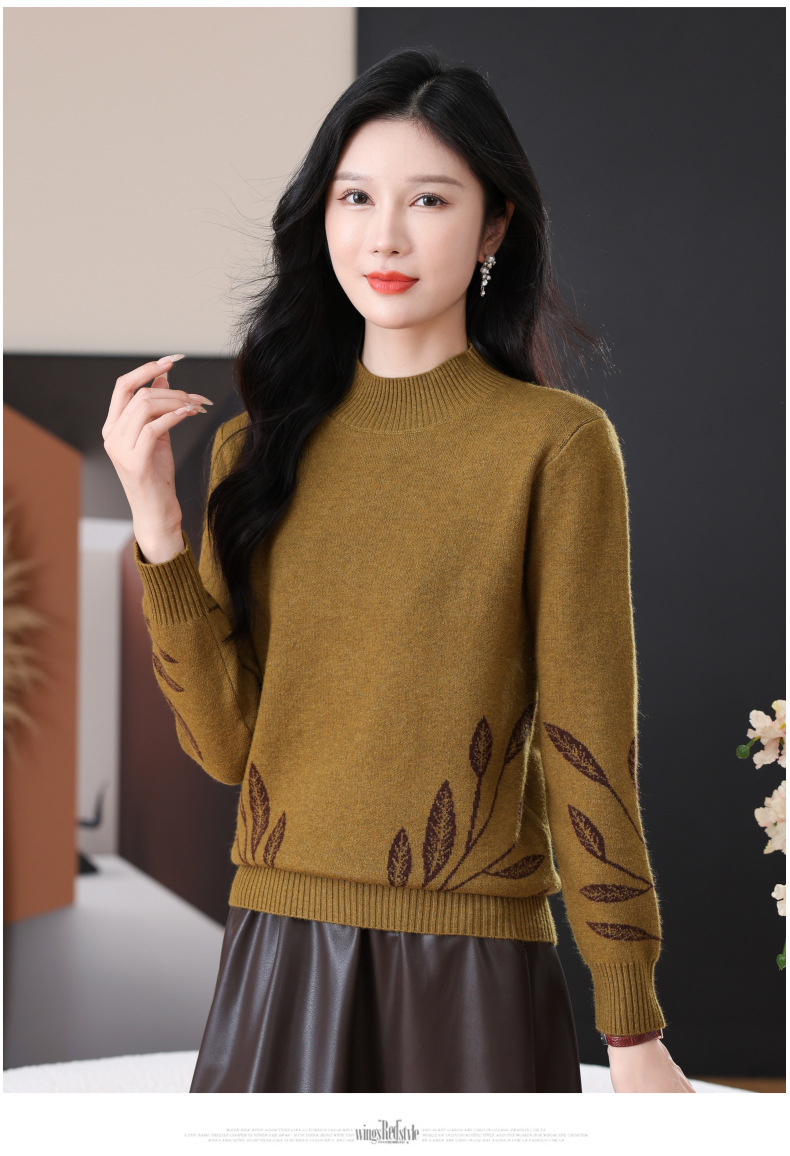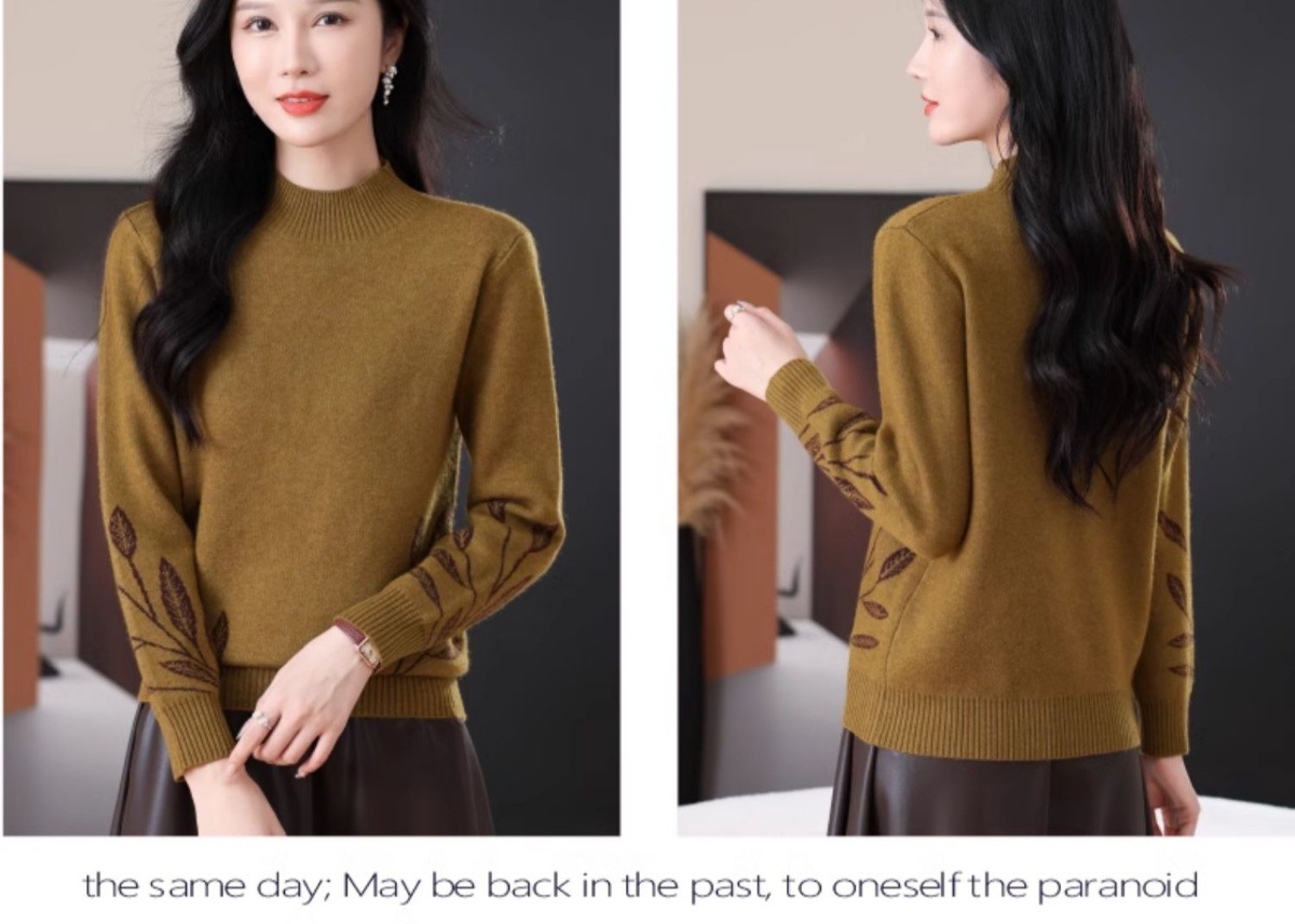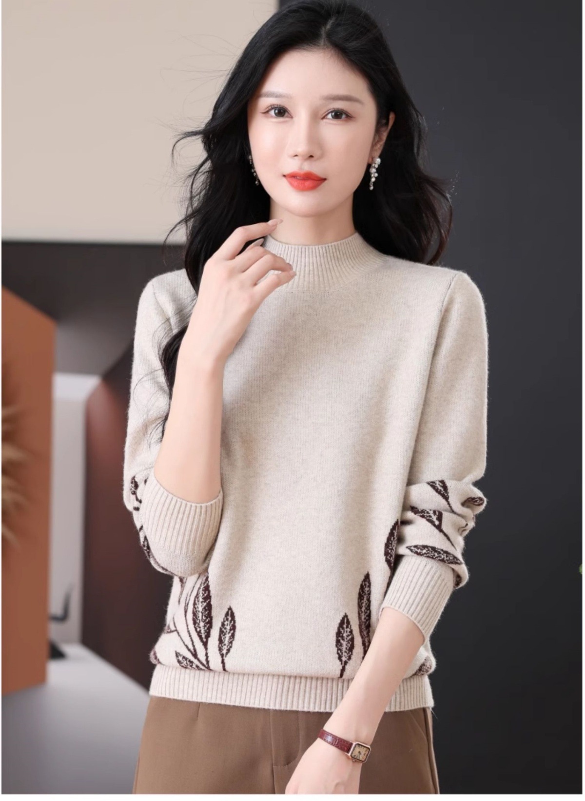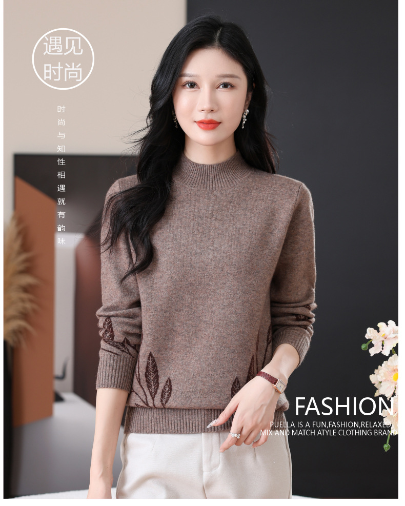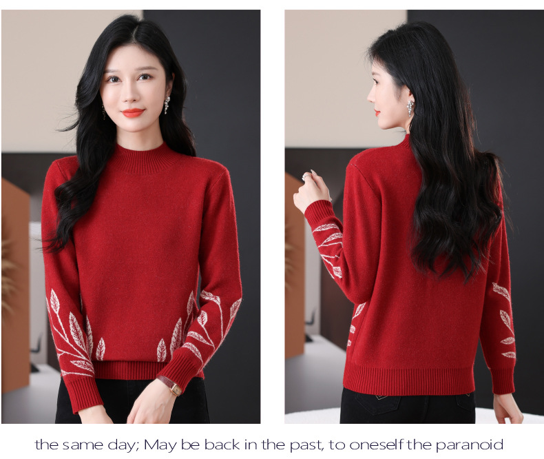 CC-103-8215内搭套头半高领保暖提花毛衣女士秋冬厚款新款国风打底针织衫上衣