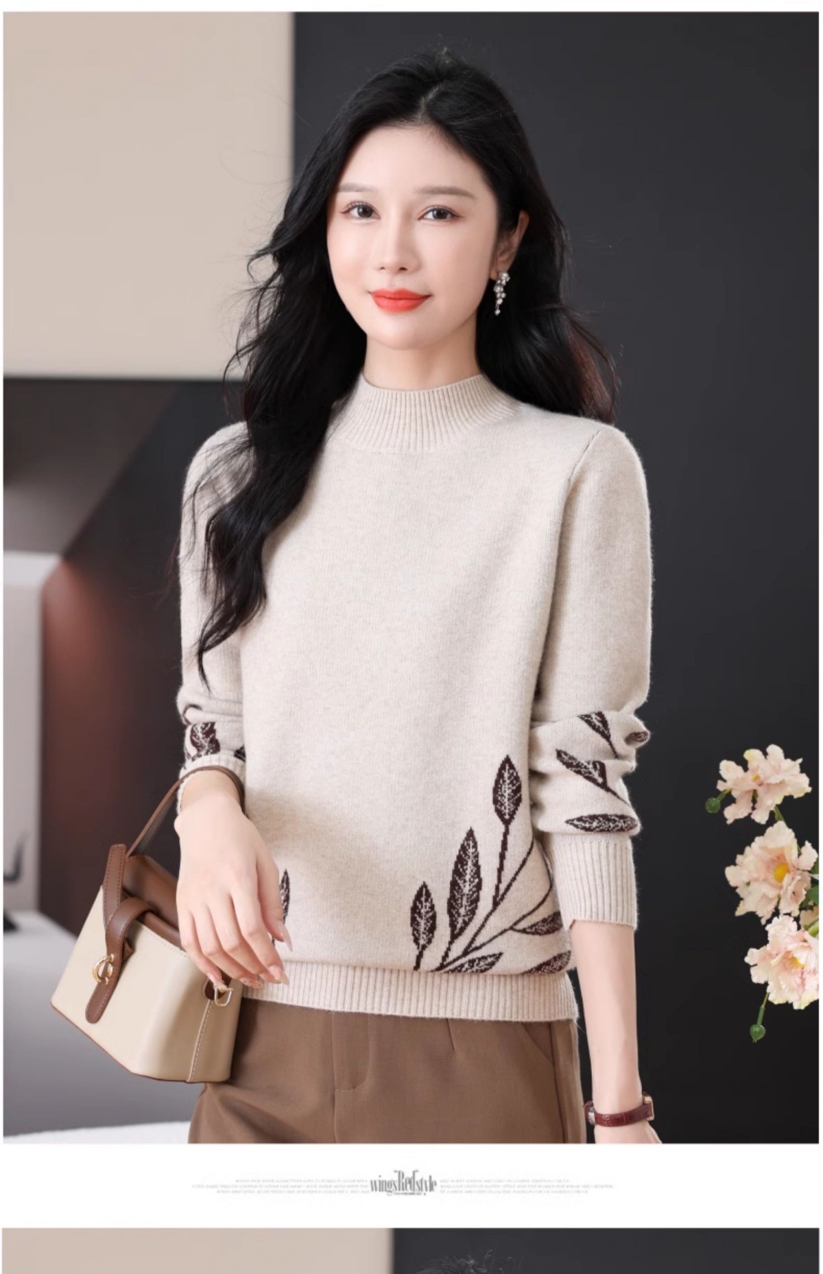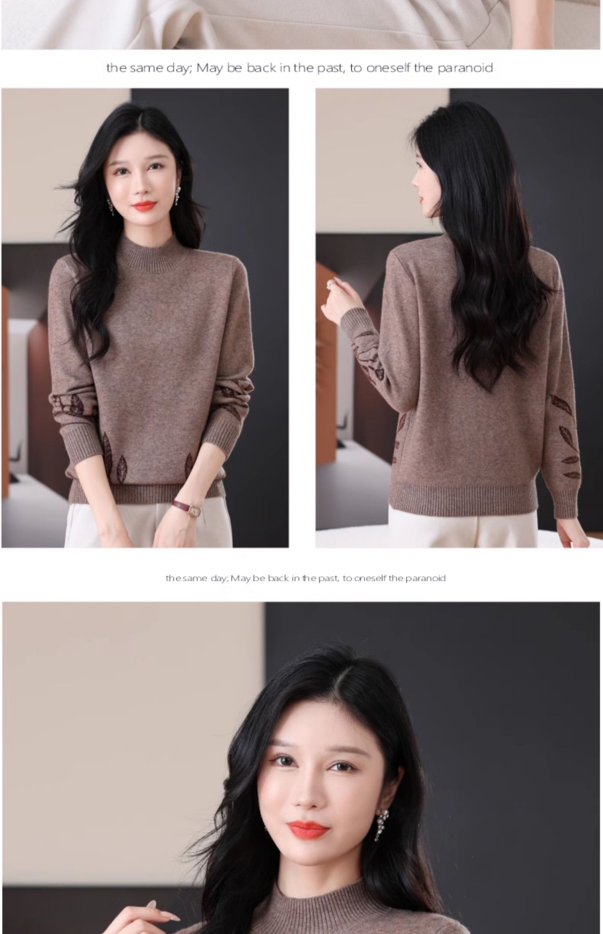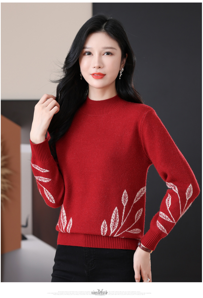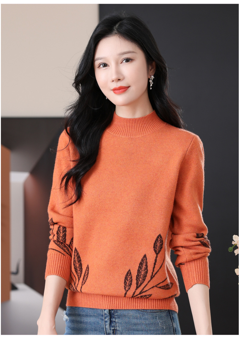 CC-103-8215内搭套头半高领保暖提花毛衣女士秋冬厚款新款国风打底针织衫上衣