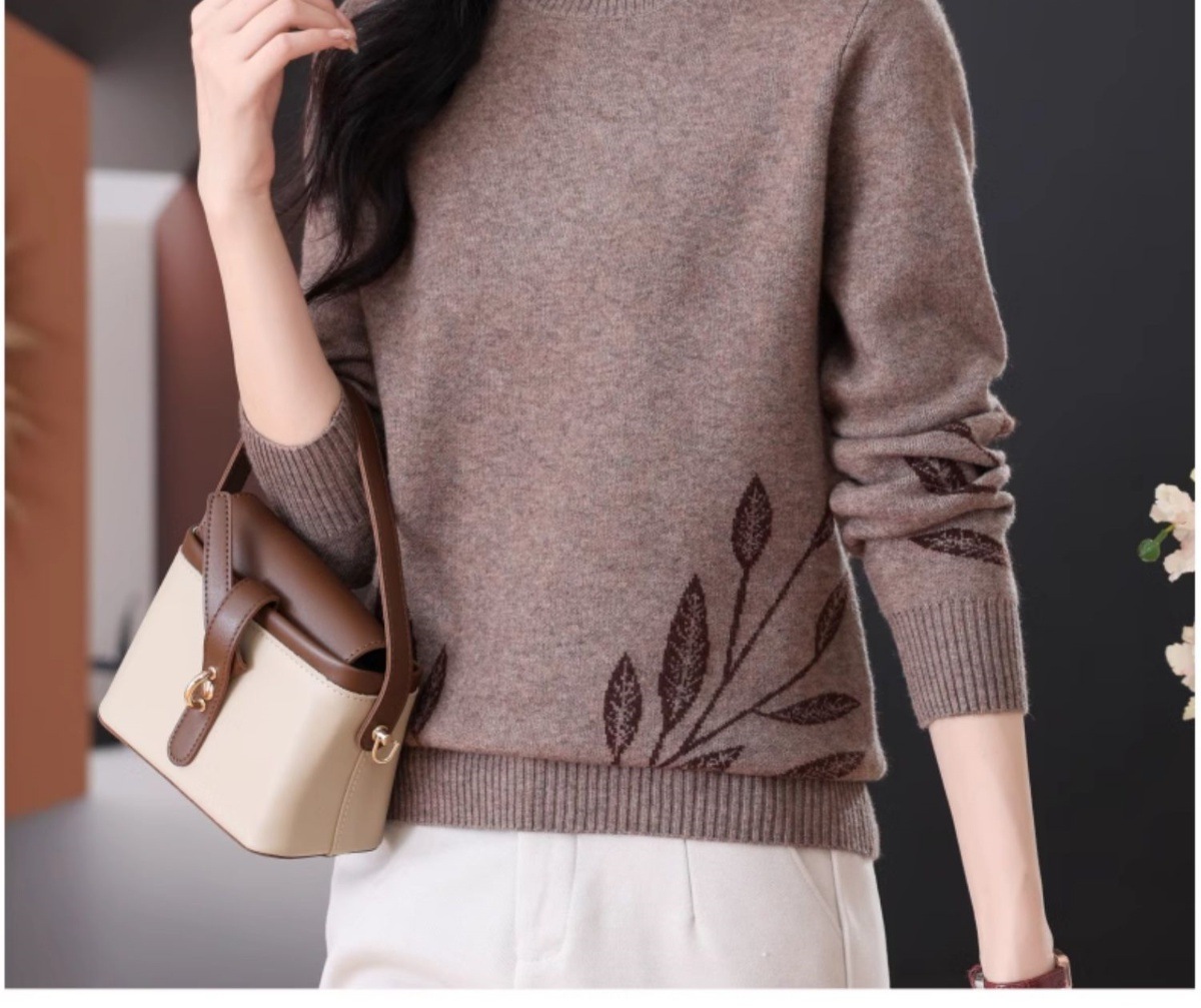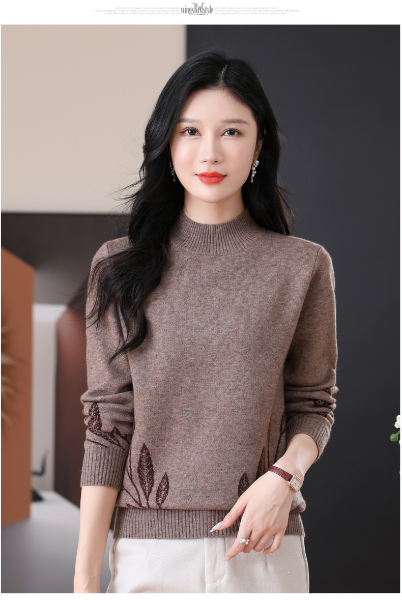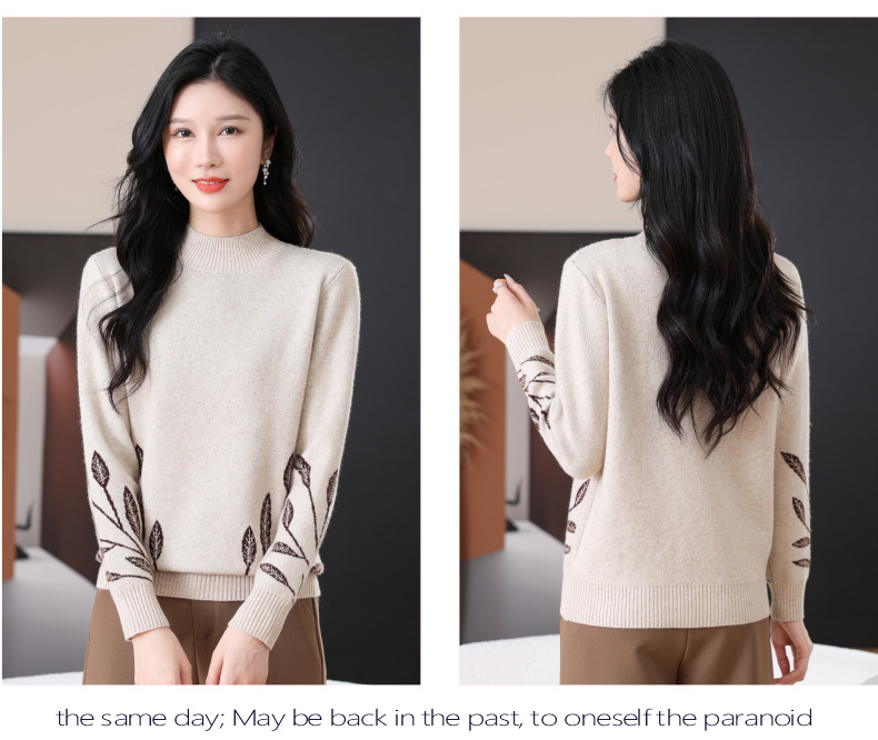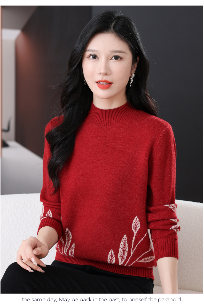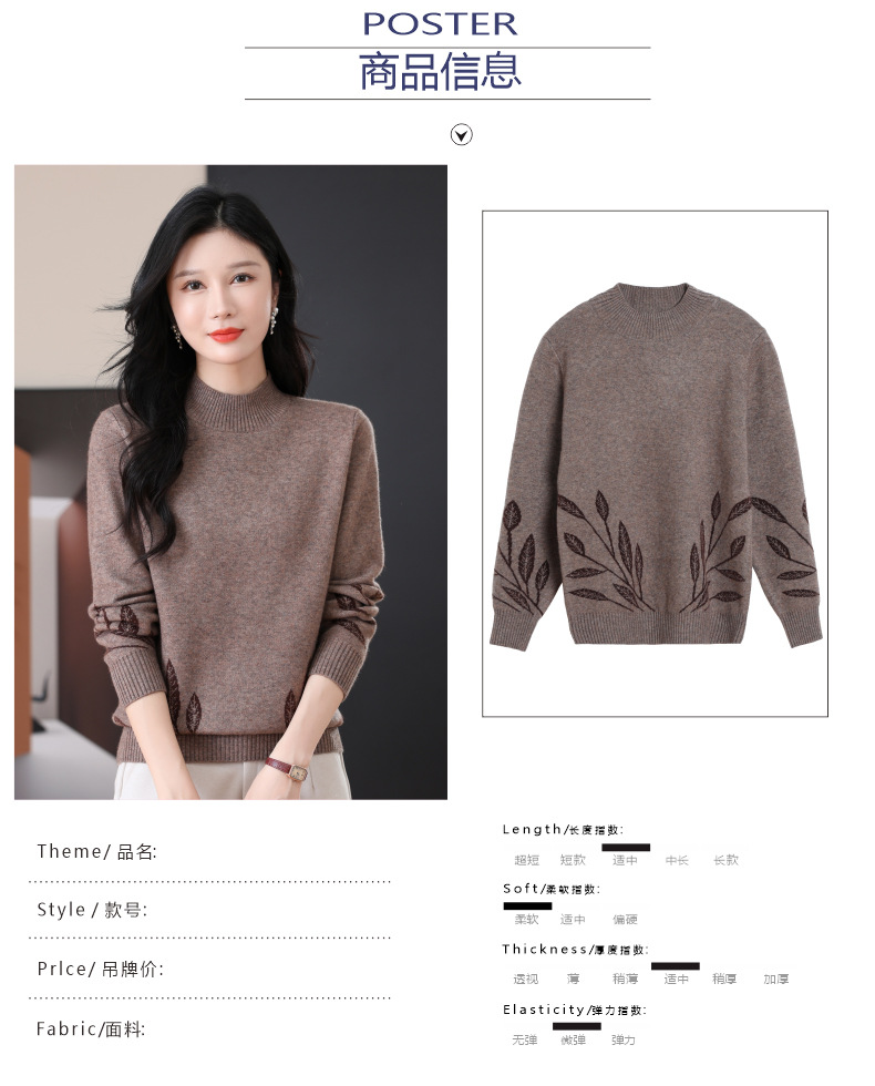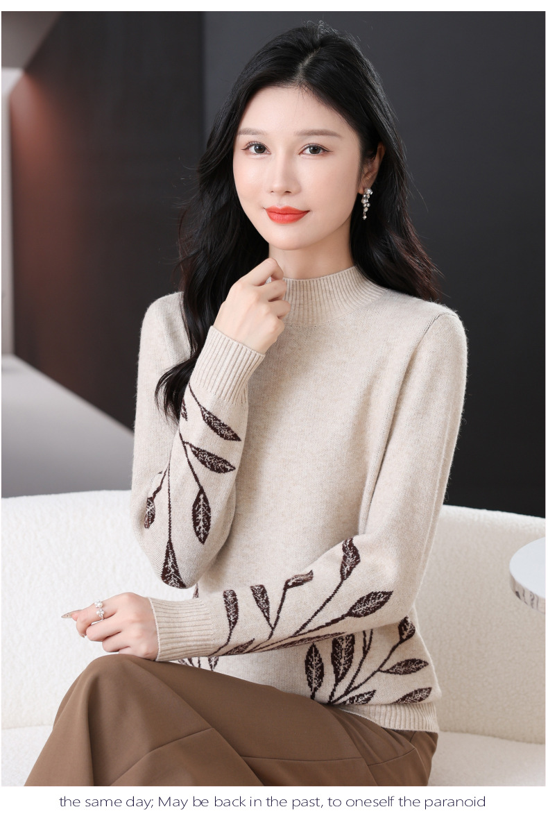 CC-103-8215内搭套头半高领保暖提花毛衣女士秋冬厚款新款国风打底针织衫上衣