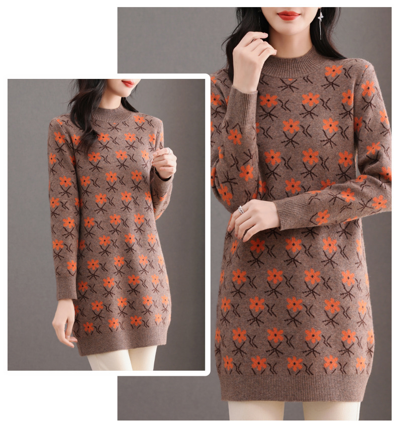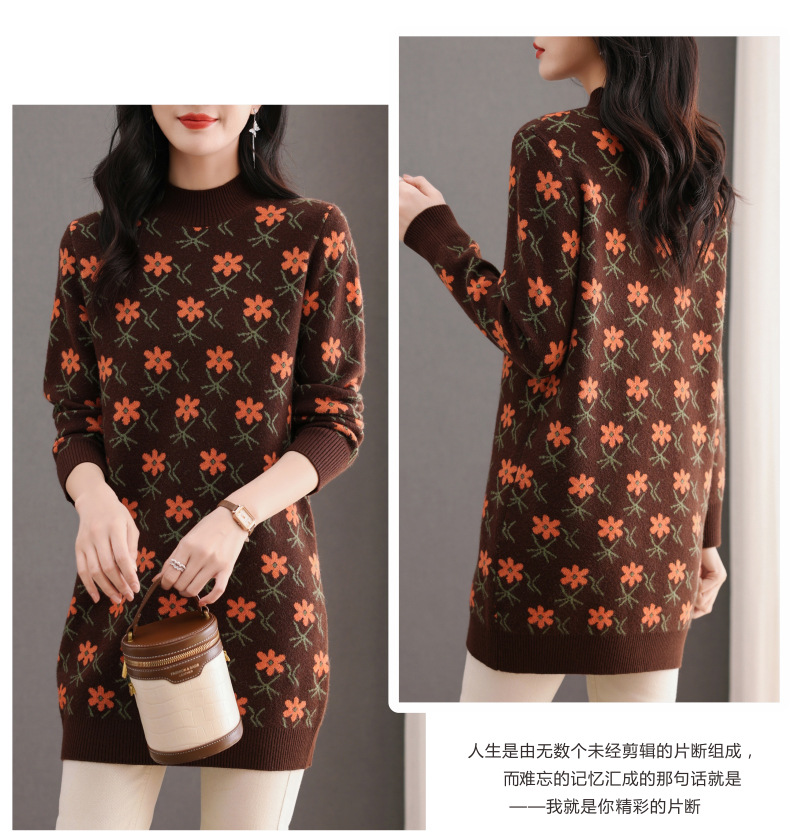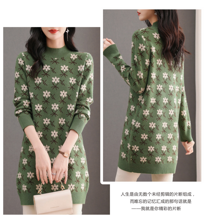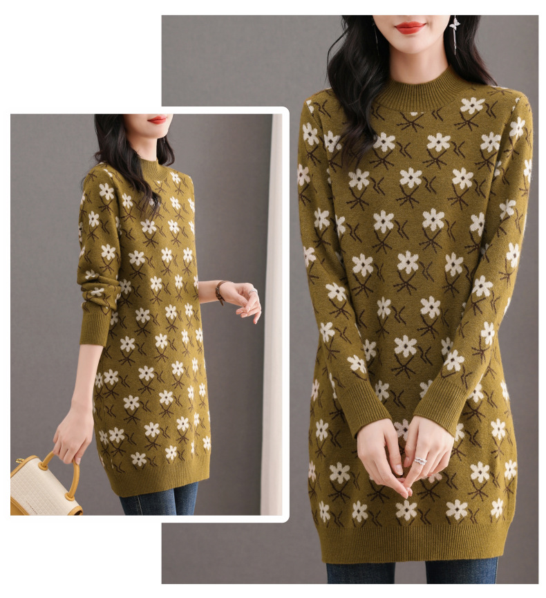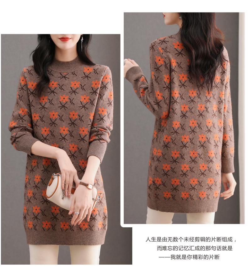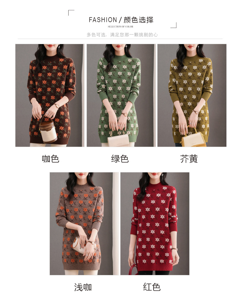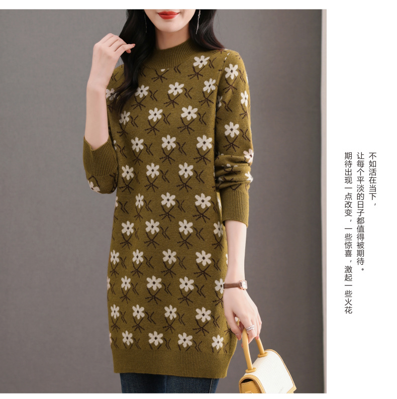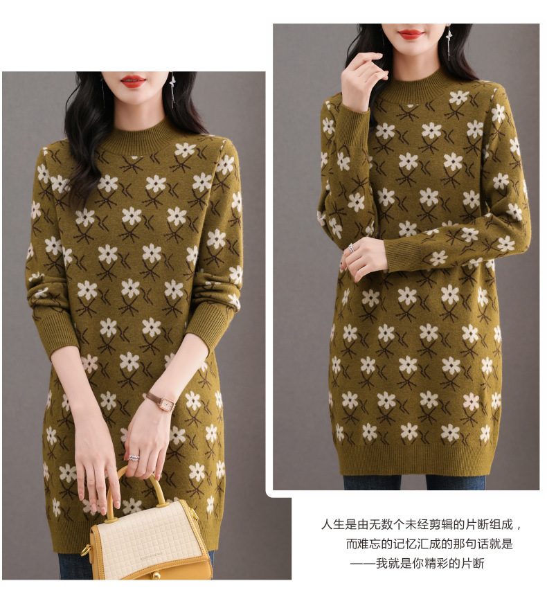 CC-103-8223中长款毛衣女遮屁股洋气2024新款提花毛衣裙厚款打底衫
