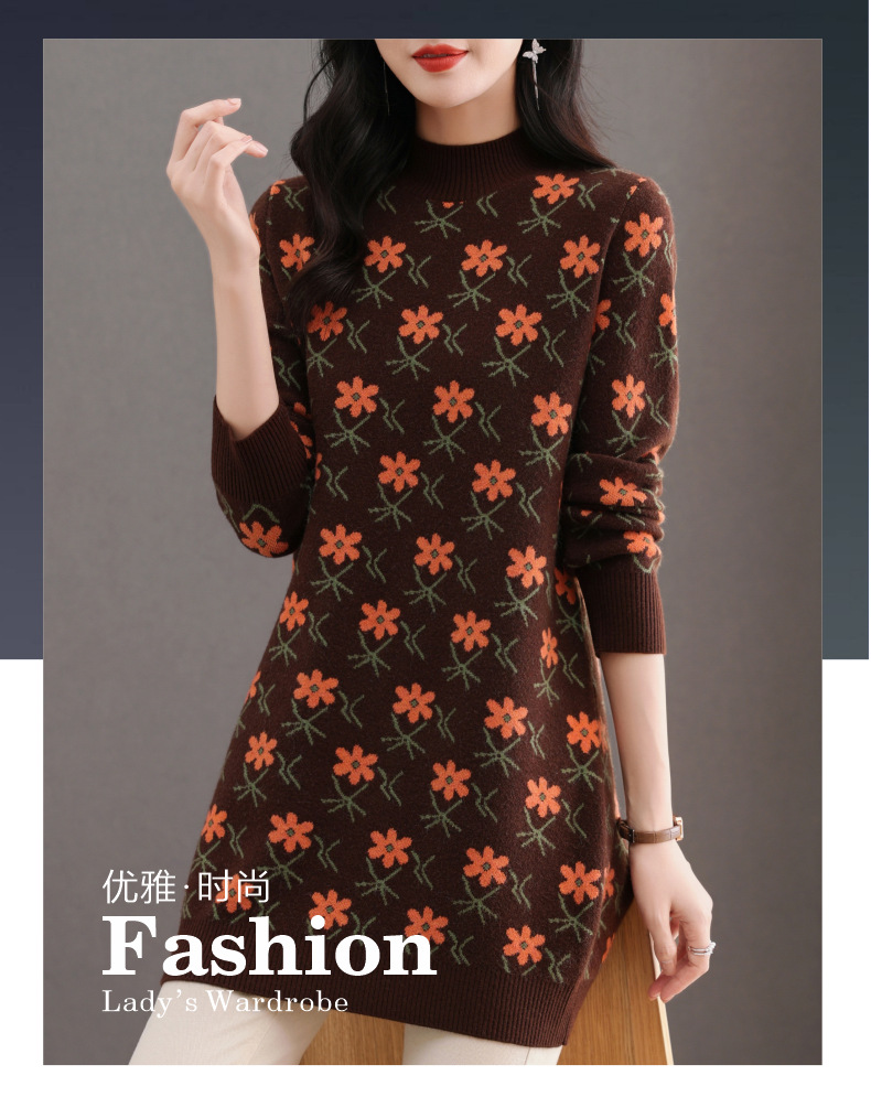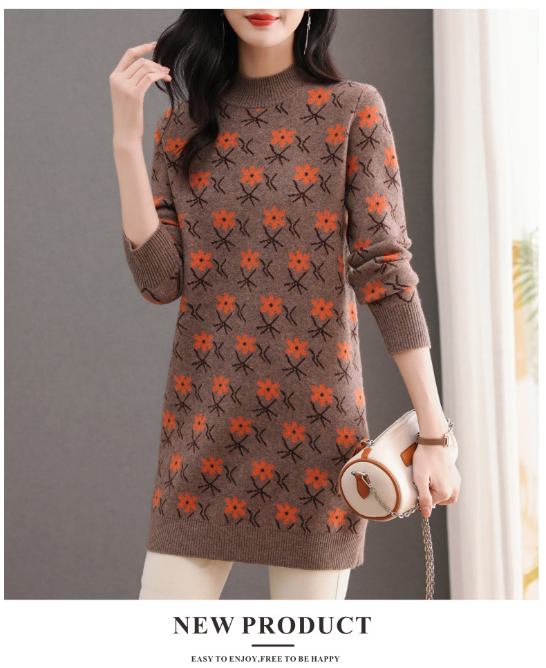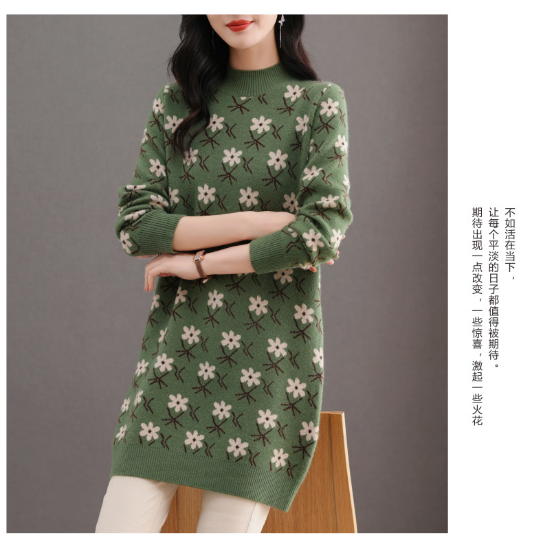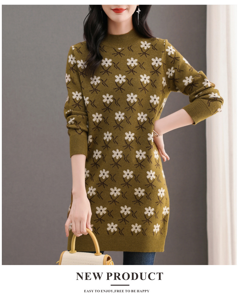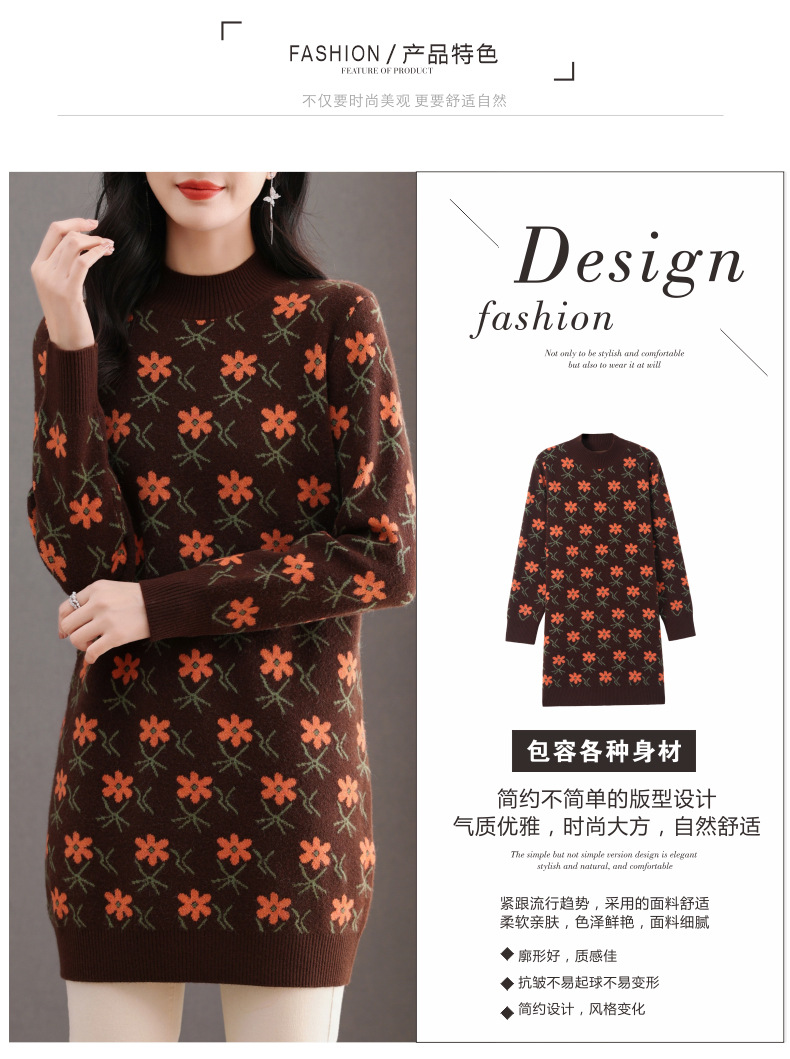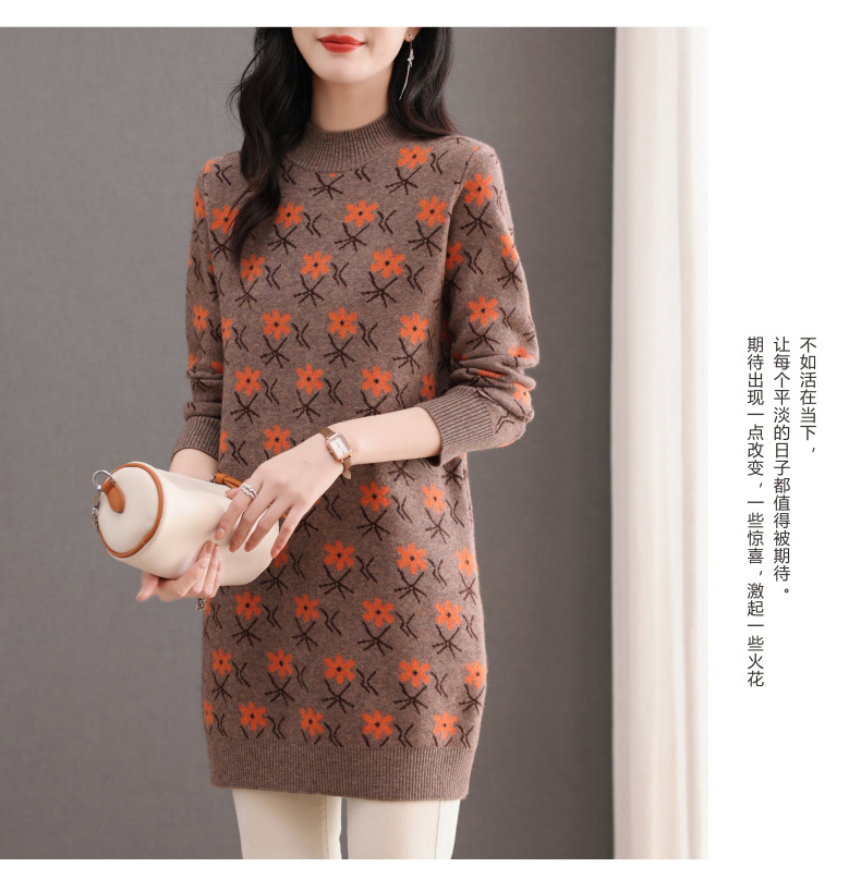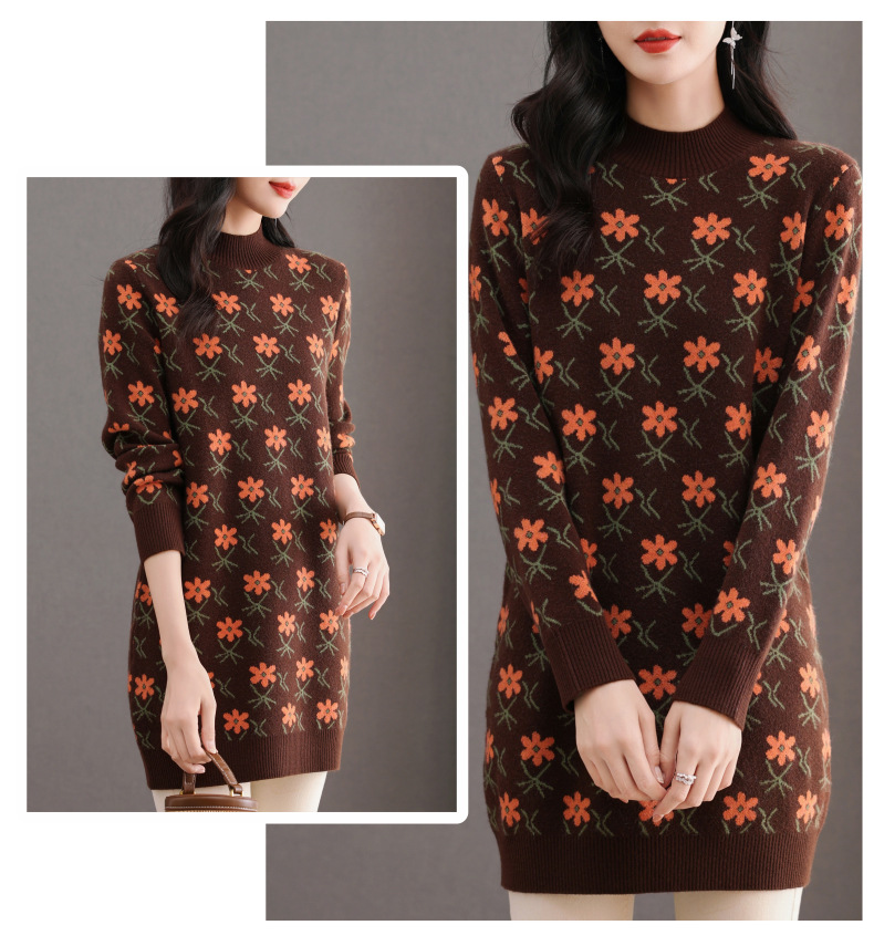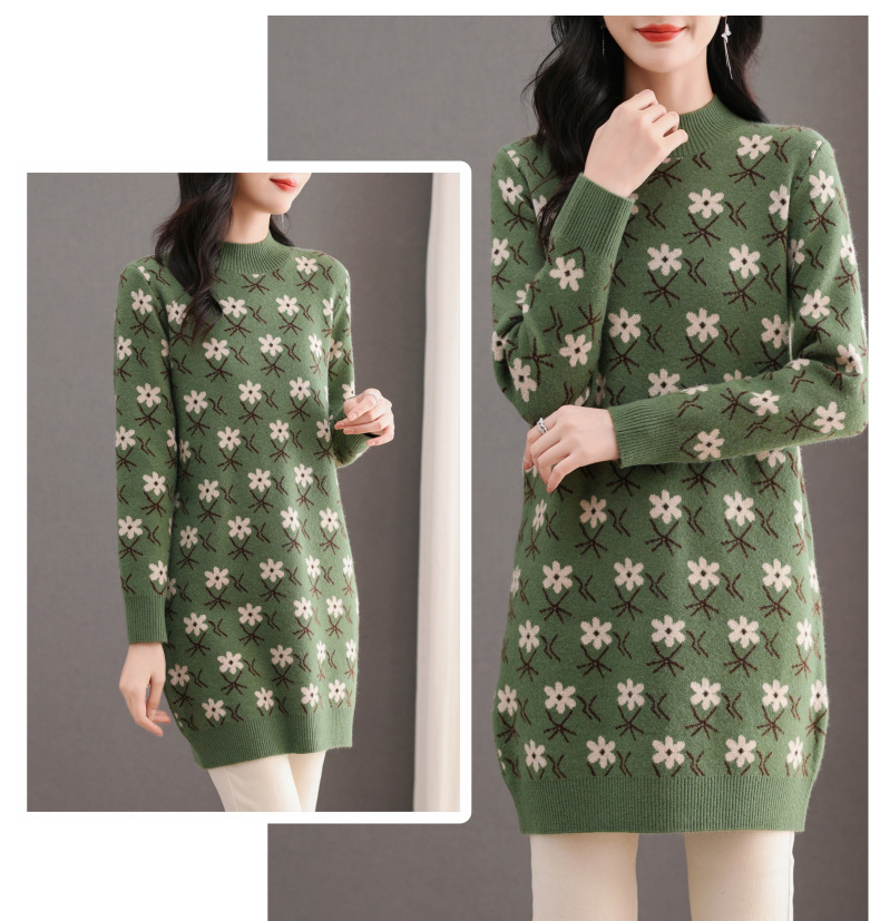 CC-103-8223中长款毛衣女遮屁股洋气2024新款提花毛衣裙厚款打底衫