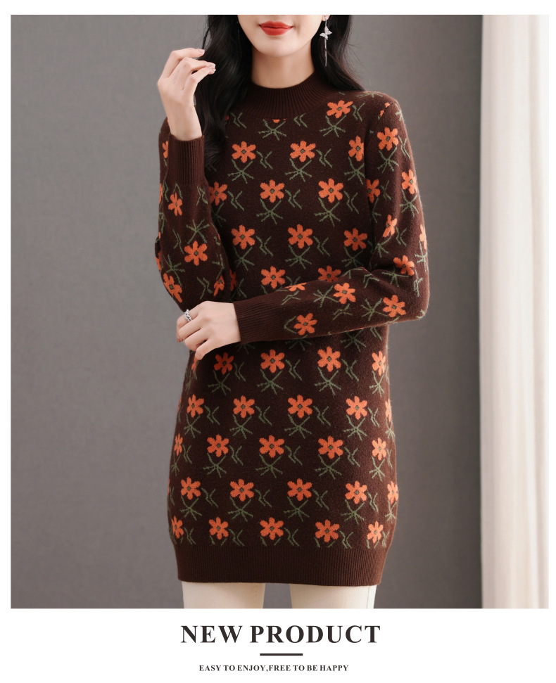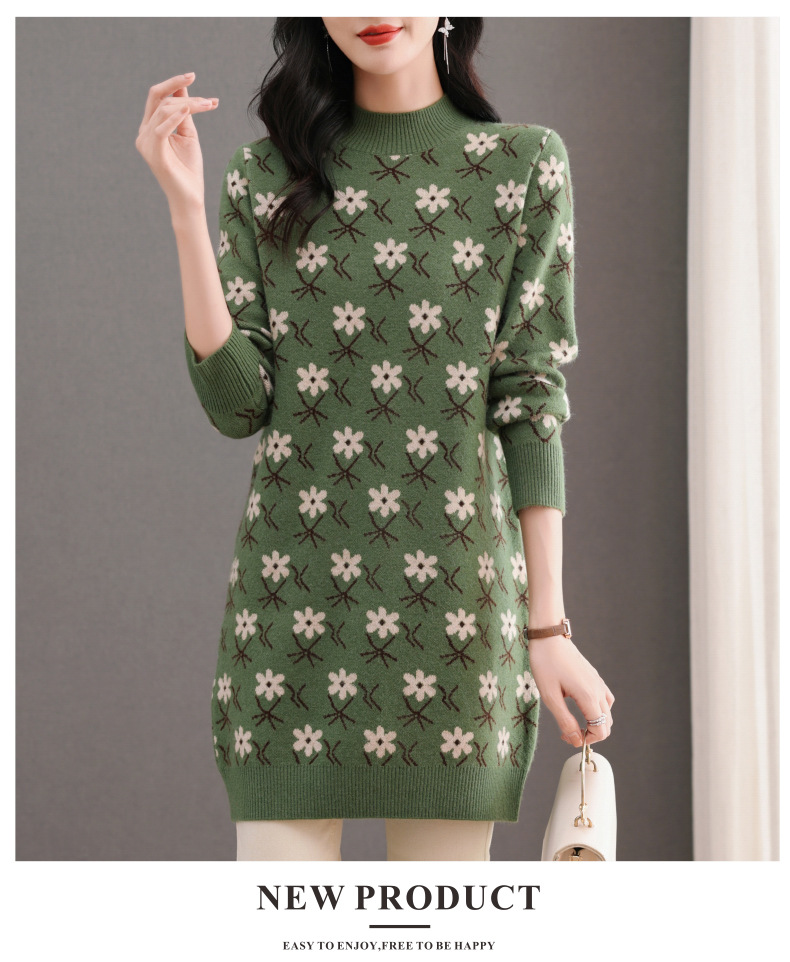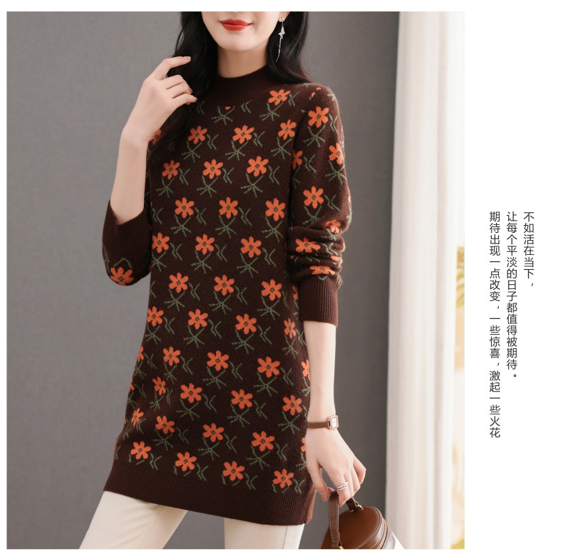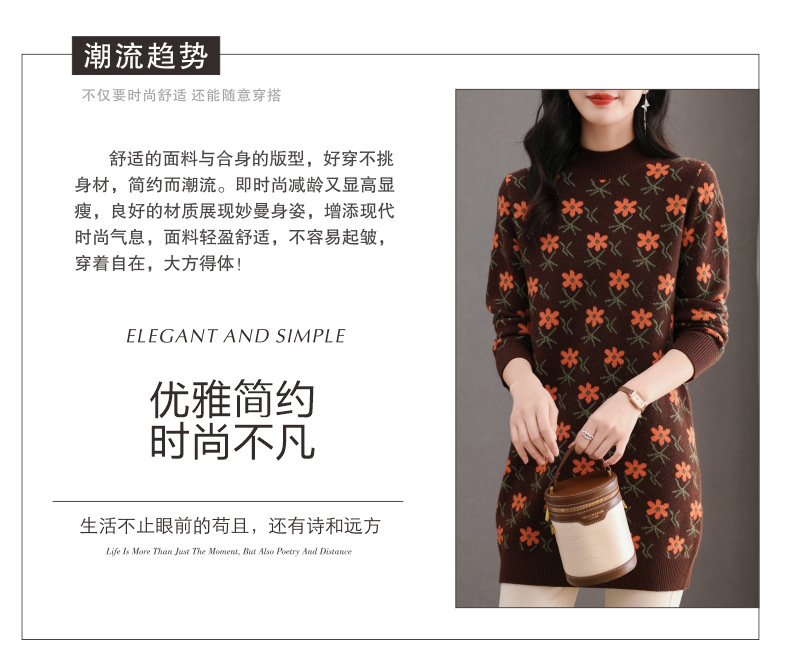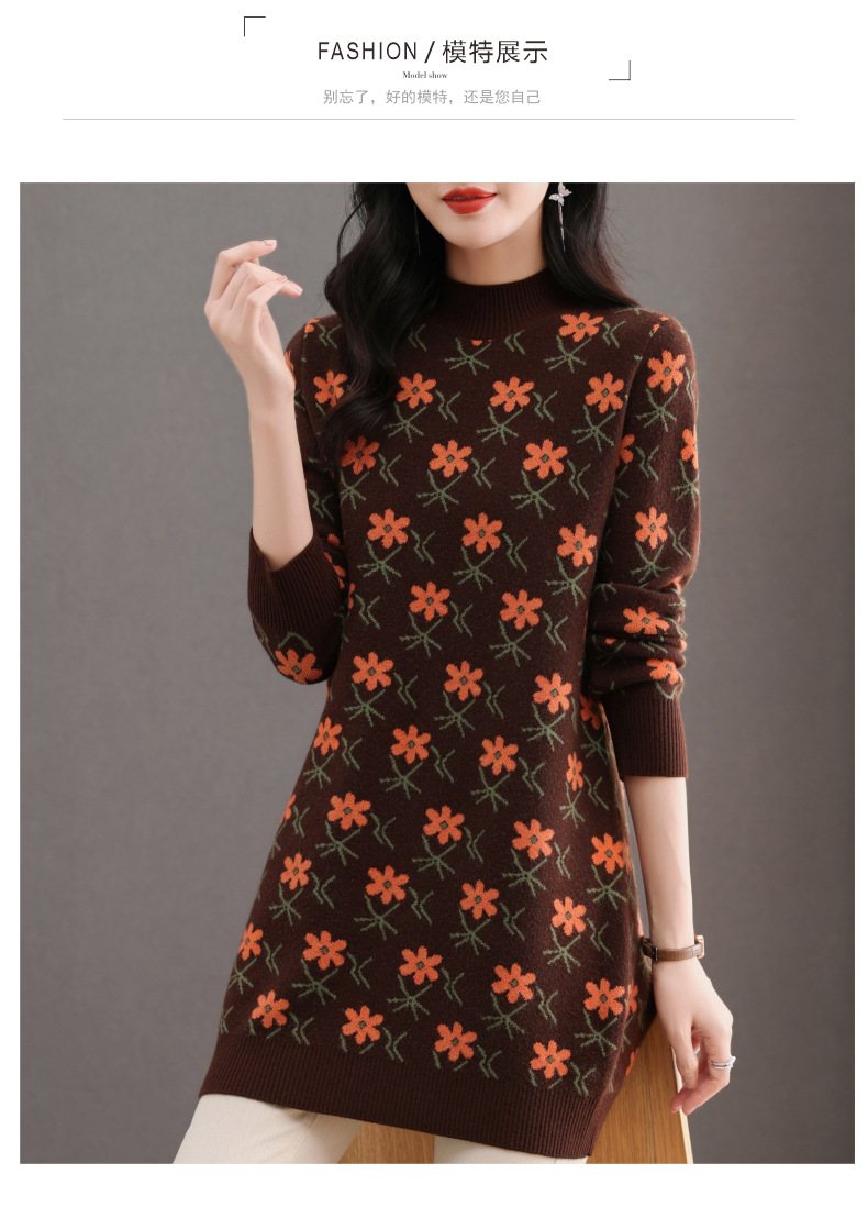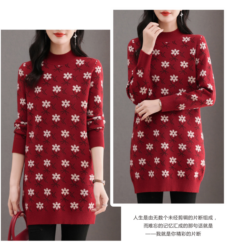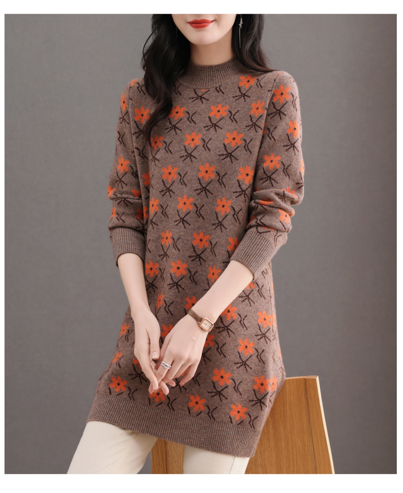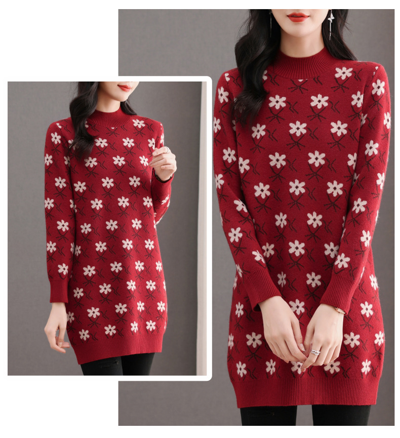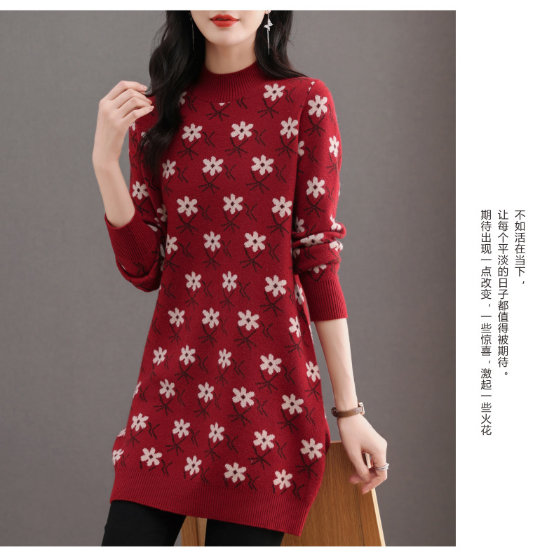 CC-103-8223中长款毛衣女遮屁股洋气2024新款提花毛衣裙厚款打底衫