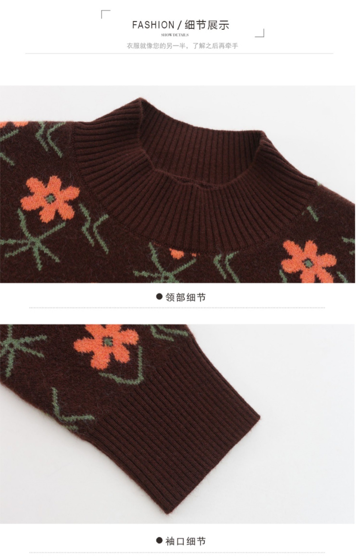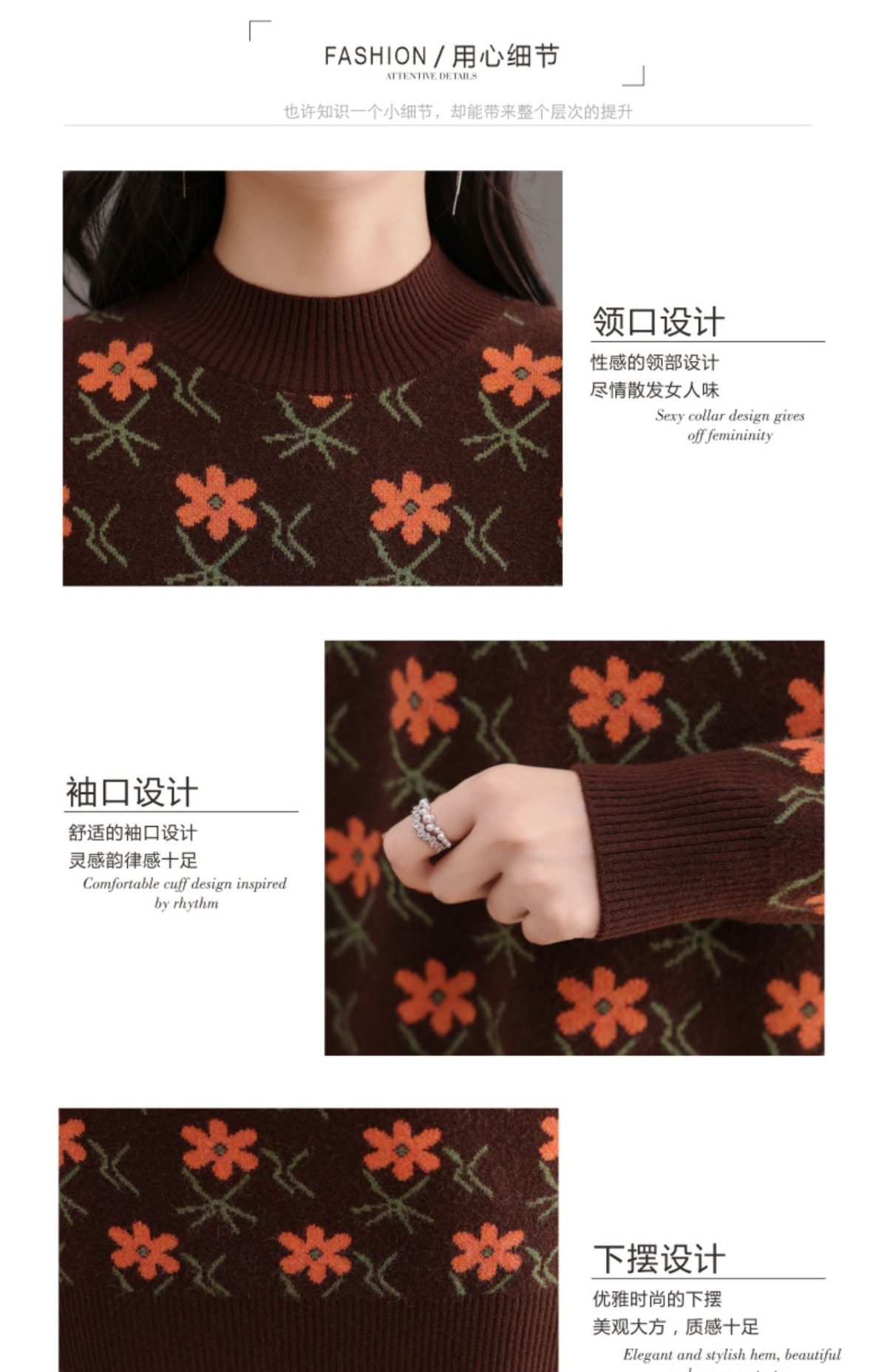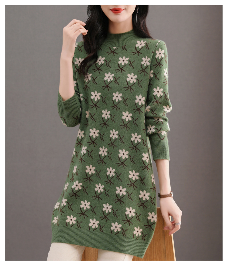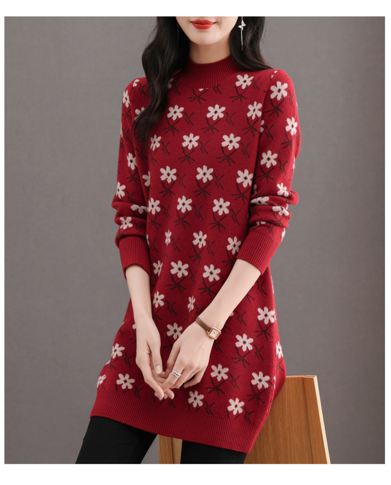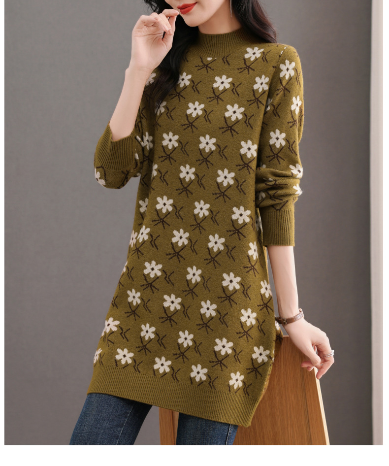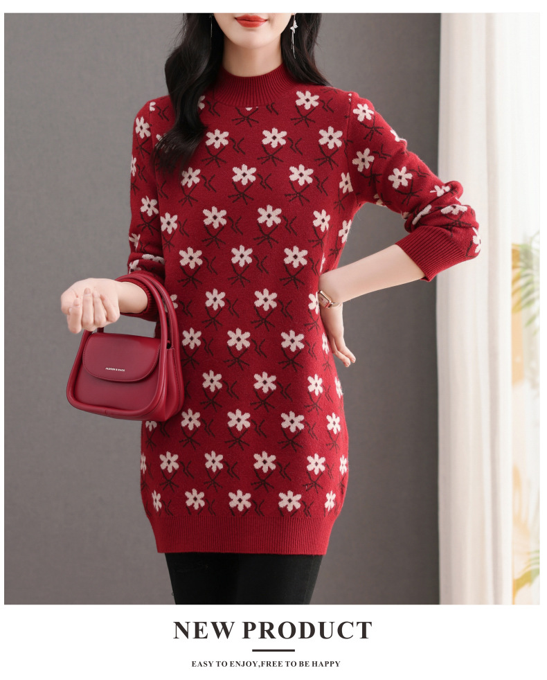 CC-103-8223中长款毛衣女遮屁股洋气2024新款提花毛衣裙厚款打底衫