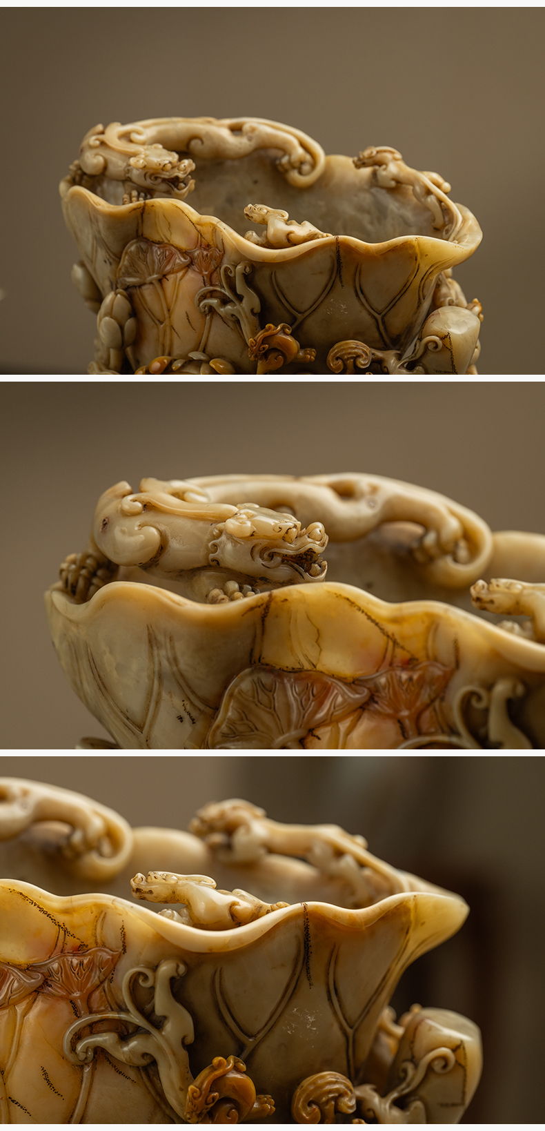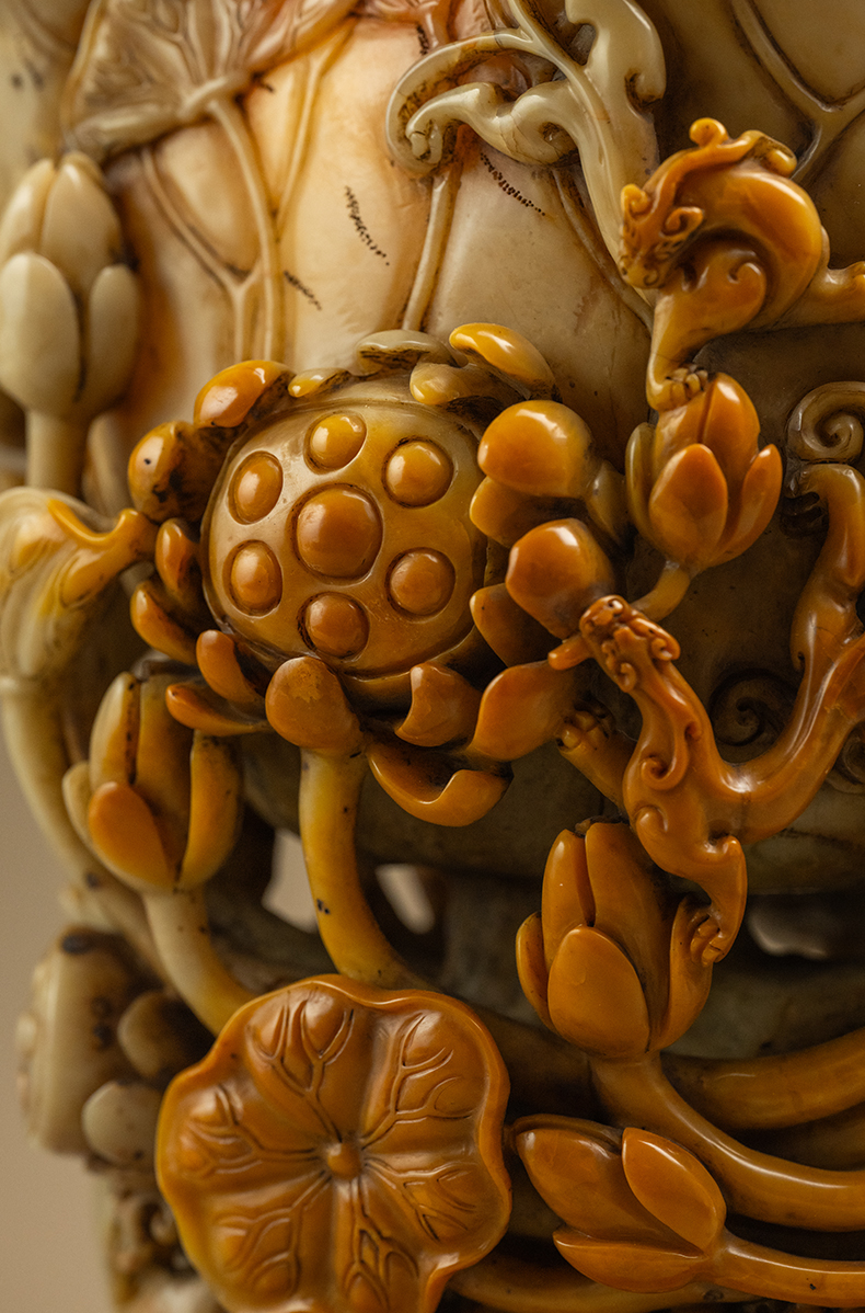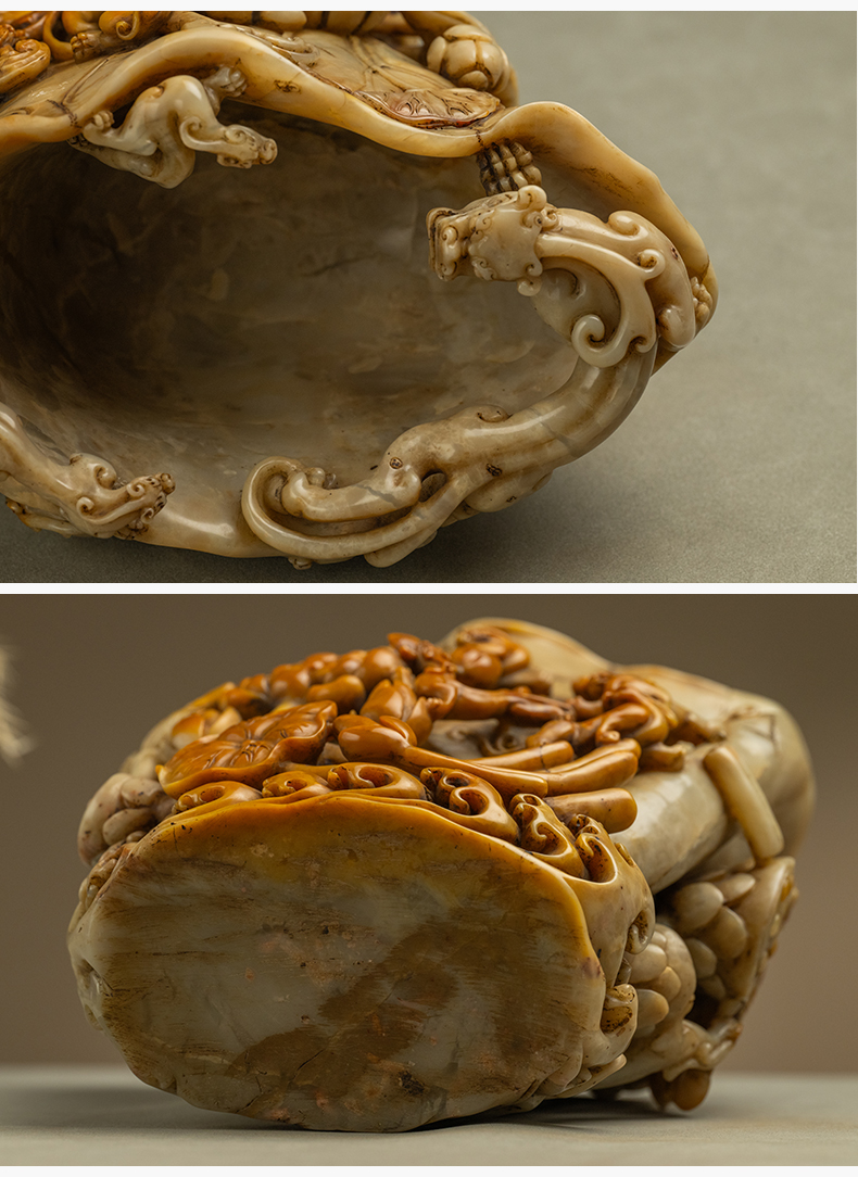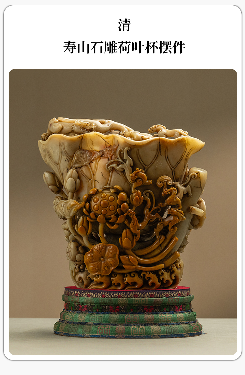 清 寿山石雕荷叶杯摆件
