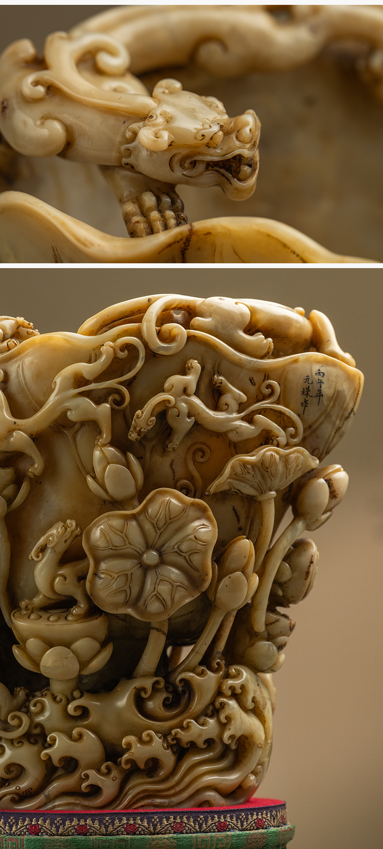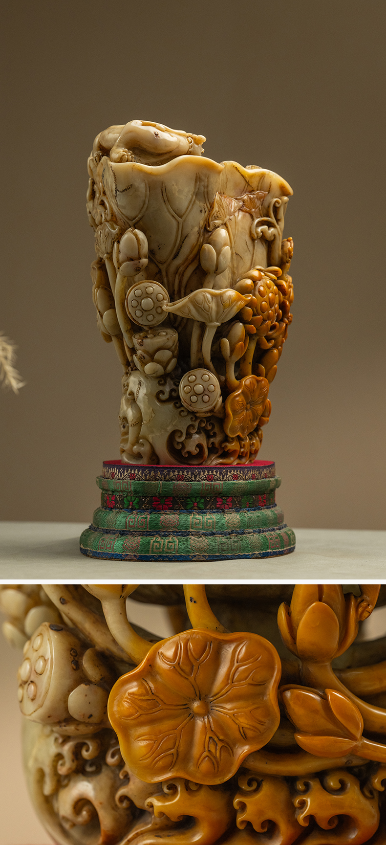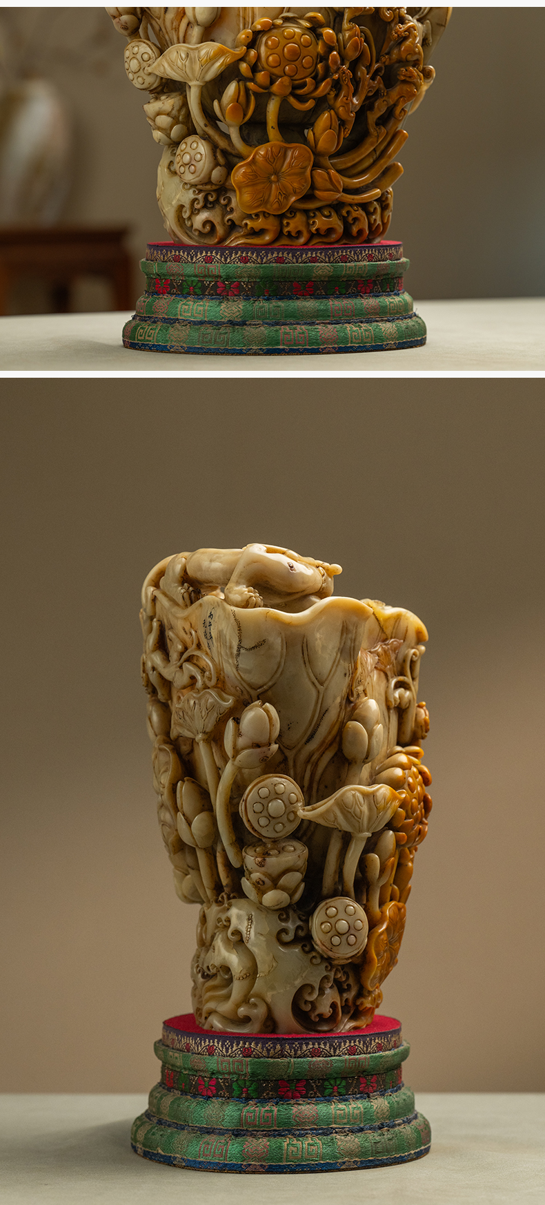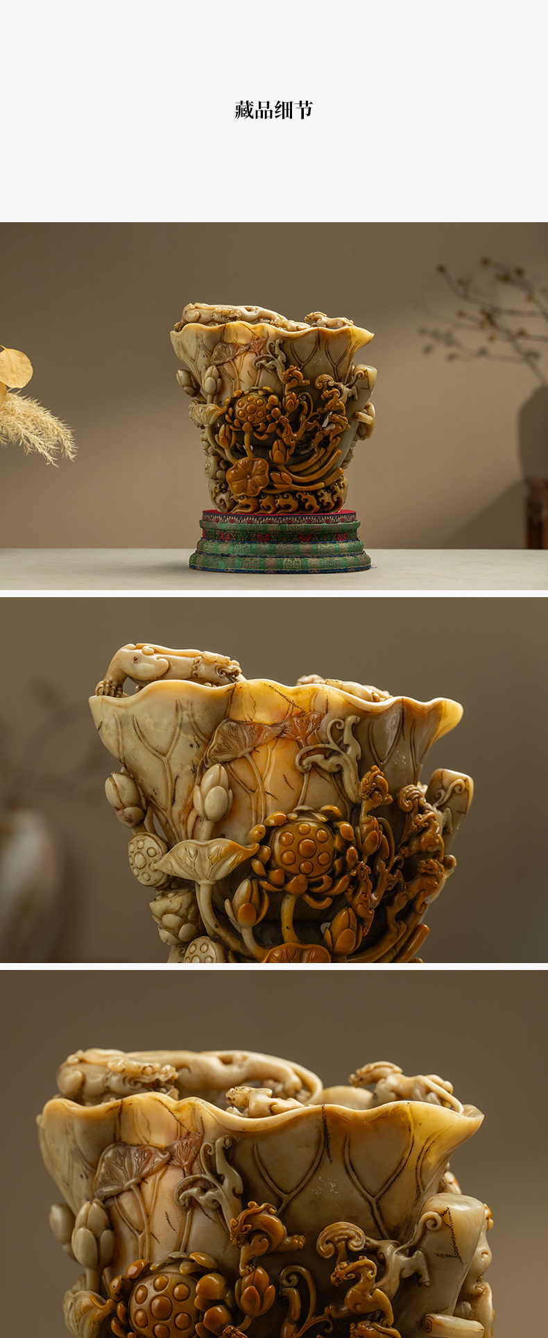 清 寿山石雕荷叶杯摆件