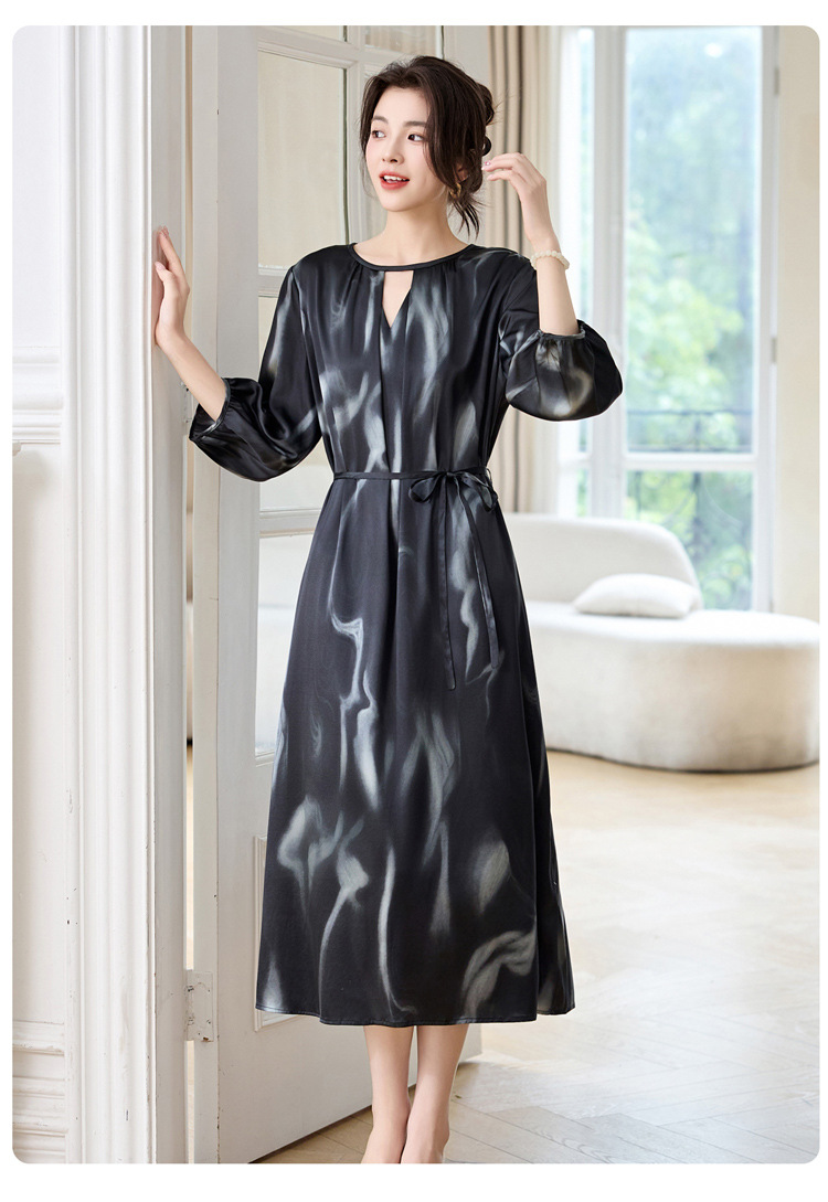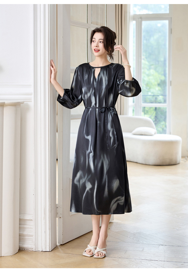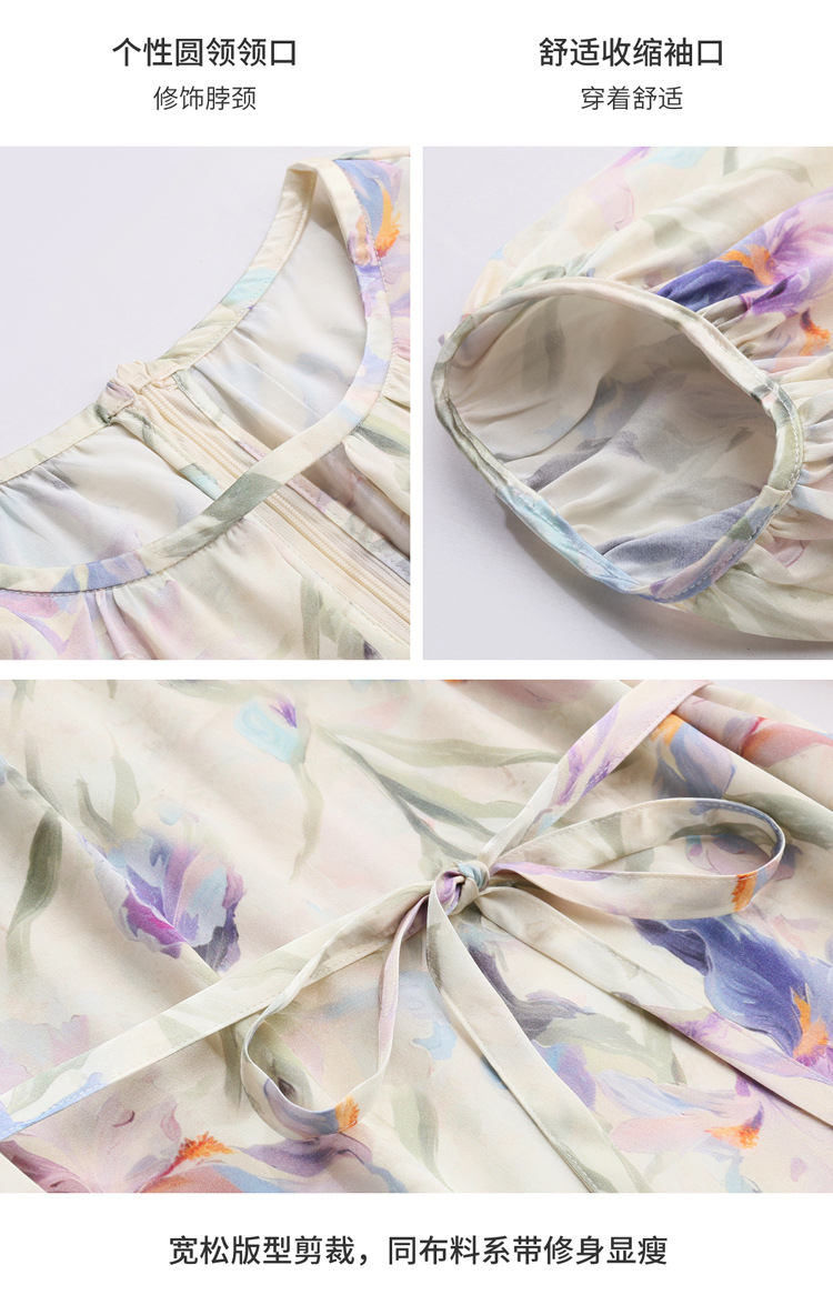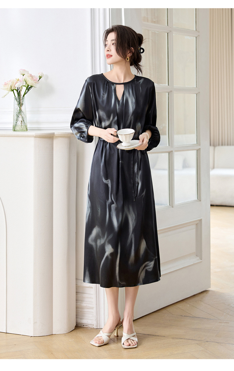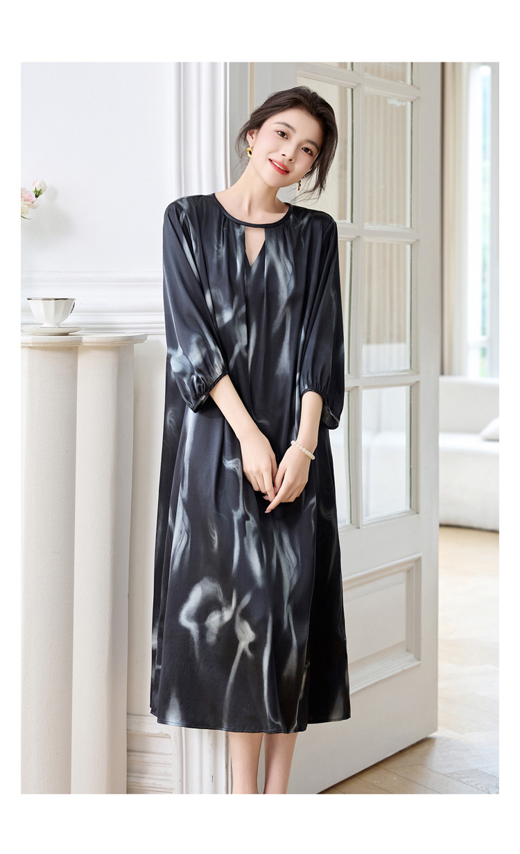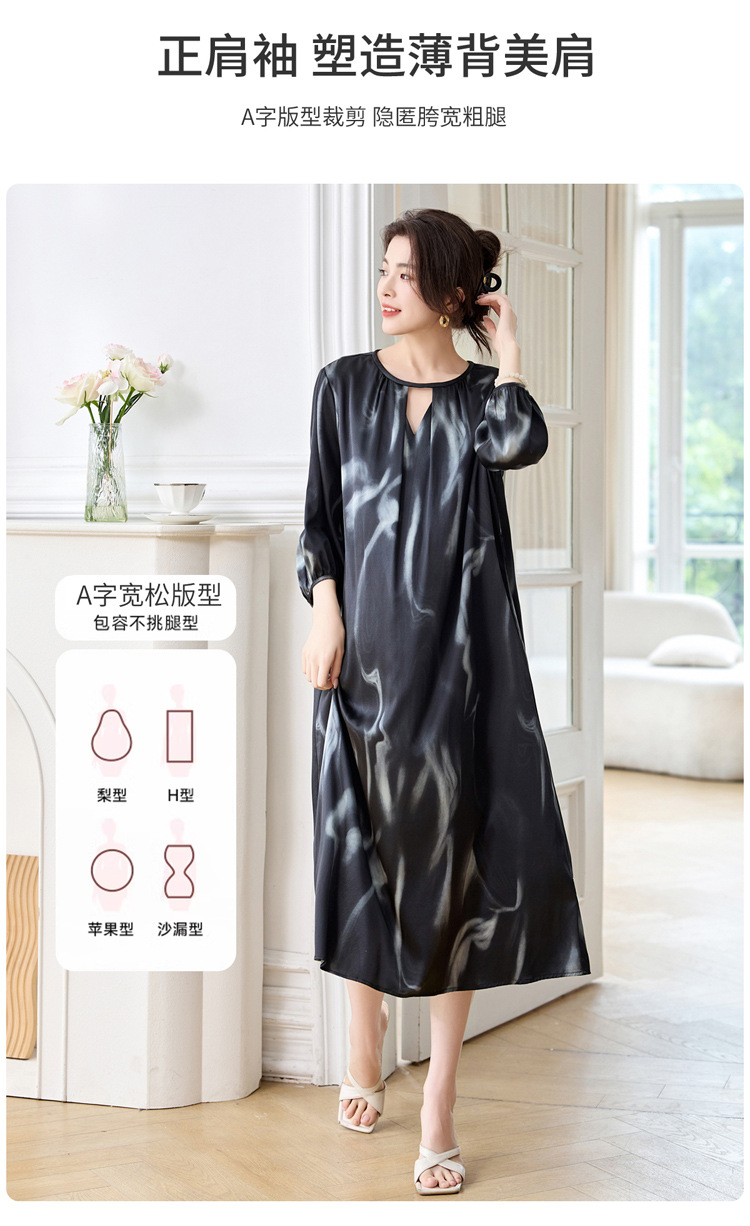 ASE实拍2025春夏新款时尚印花长款印花裙韩版设计感宽松休闲桑蚕丝裙