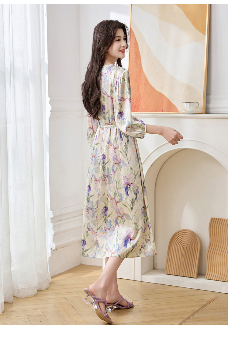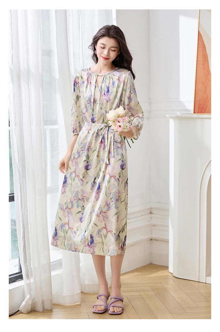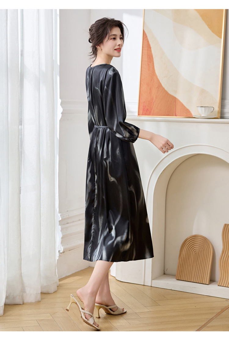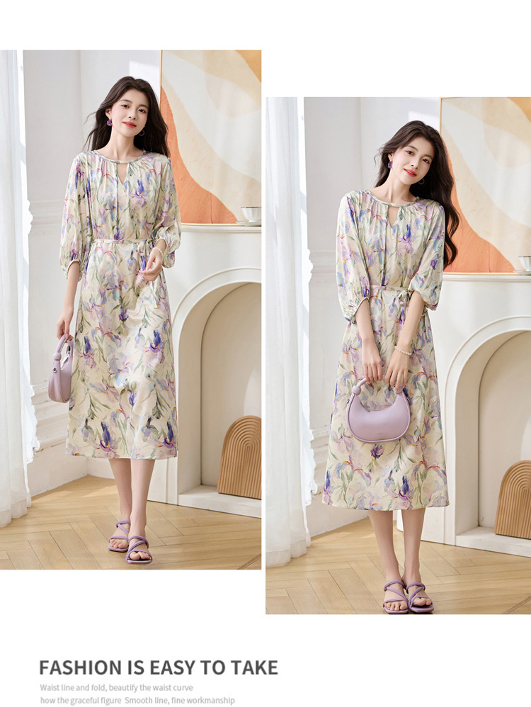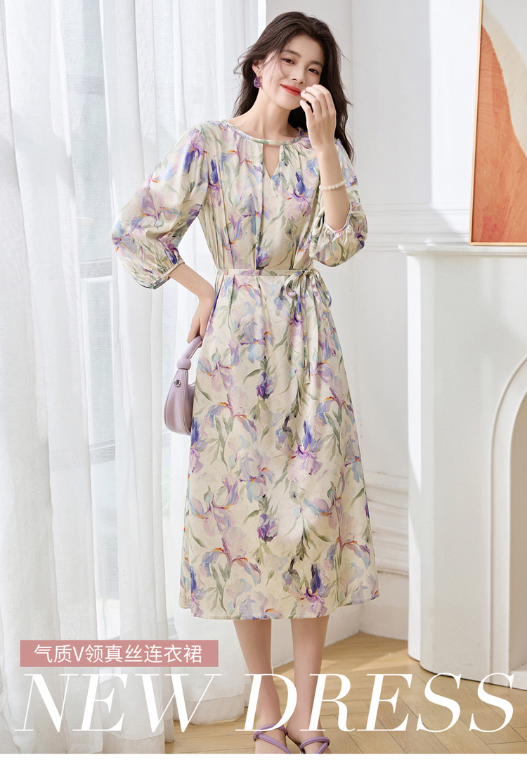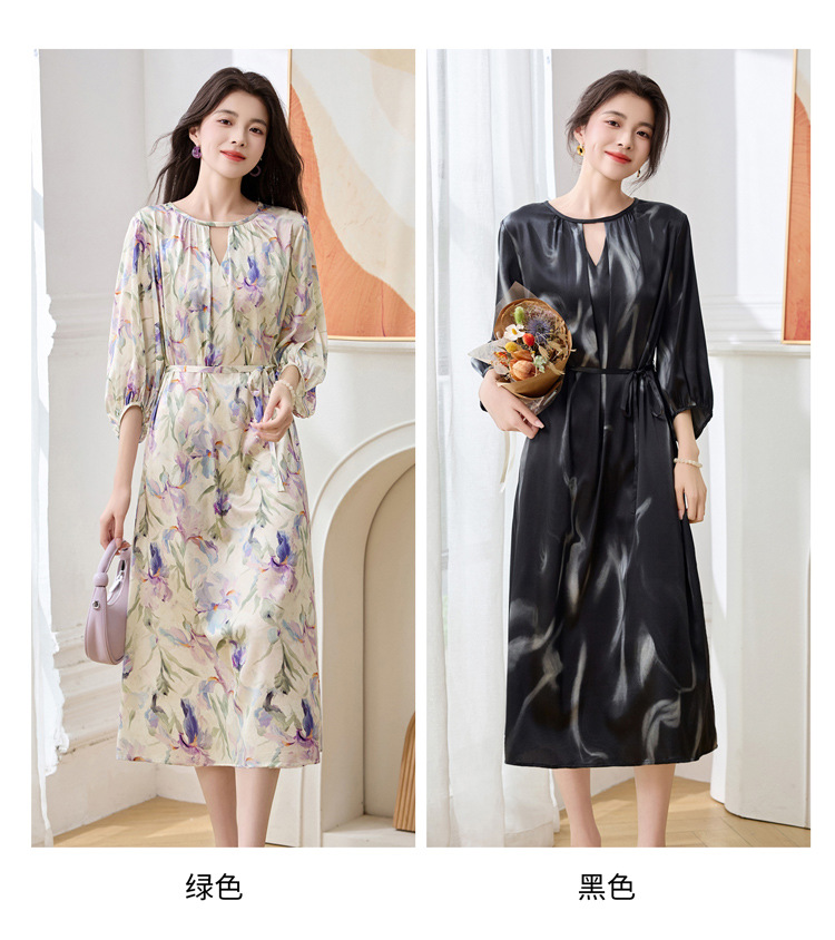 ASE实拍2025春夏新款时尚印花长款印花裙韩版设计感宽松休闲桑蚕丝裙