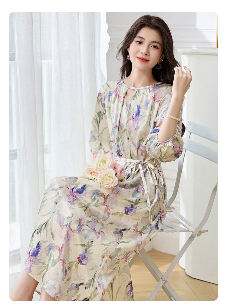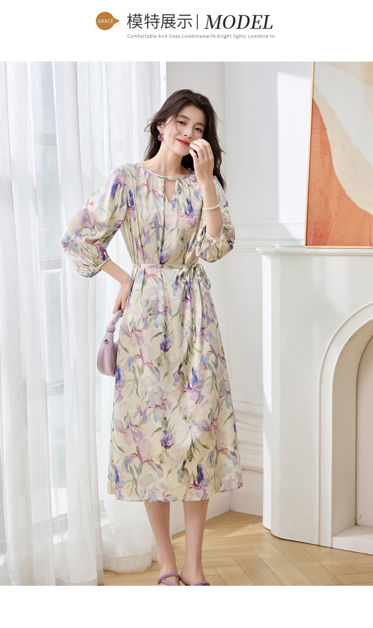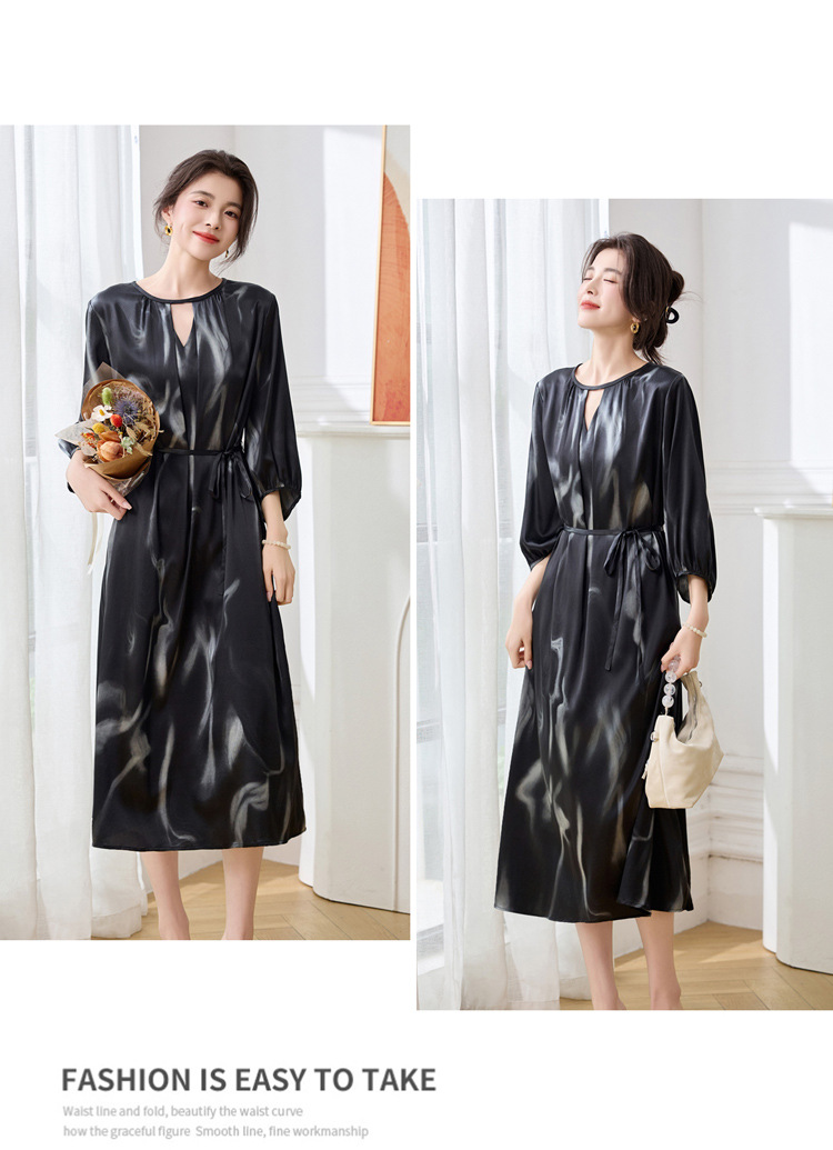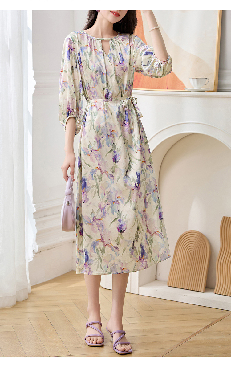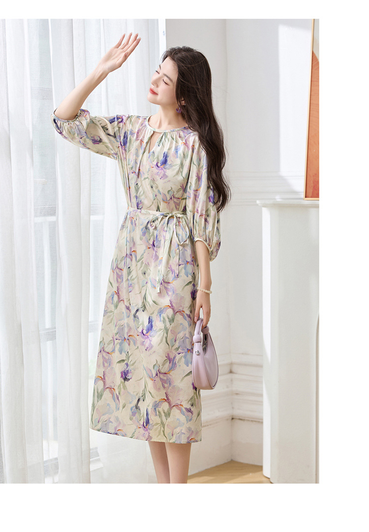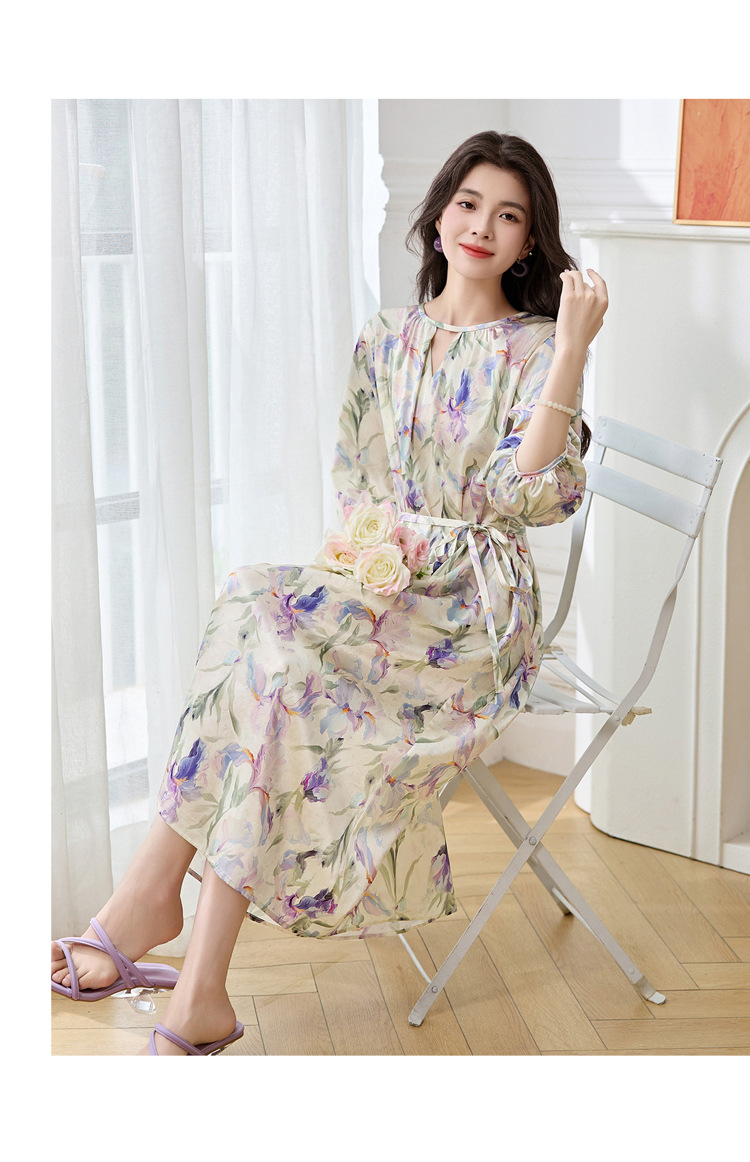 ASE实拍2025春夏新款时尚印花长款印花裙韩版设计感宽松休闲桑蚕丝裙