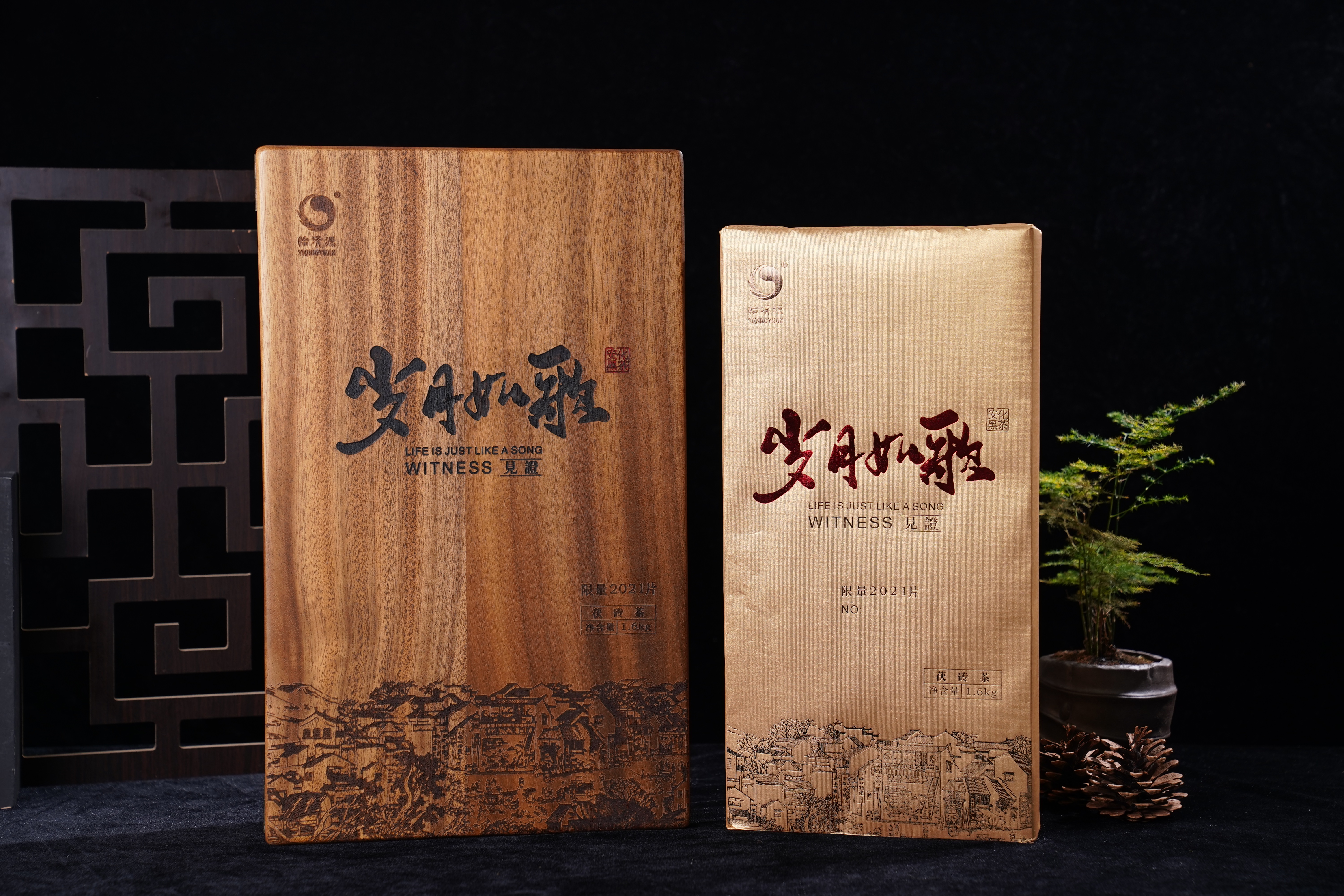 (1)“岁月如歌.见证”打破传统黑茶粗老选料,以怡清源野尖黑茶专利技术,甄选2009年安化云台山大叶种一级天尖原料压制而成;