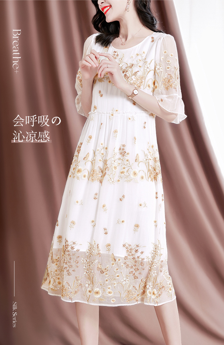甜美优雅,桑蚕丝妈妈装女士连衣裙SM-82297555