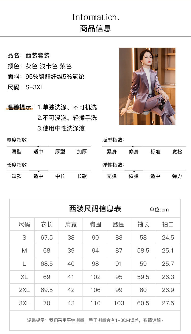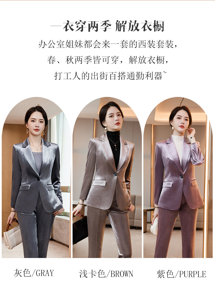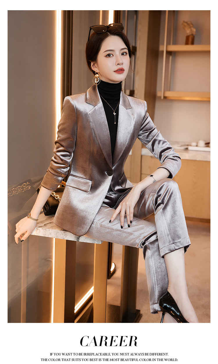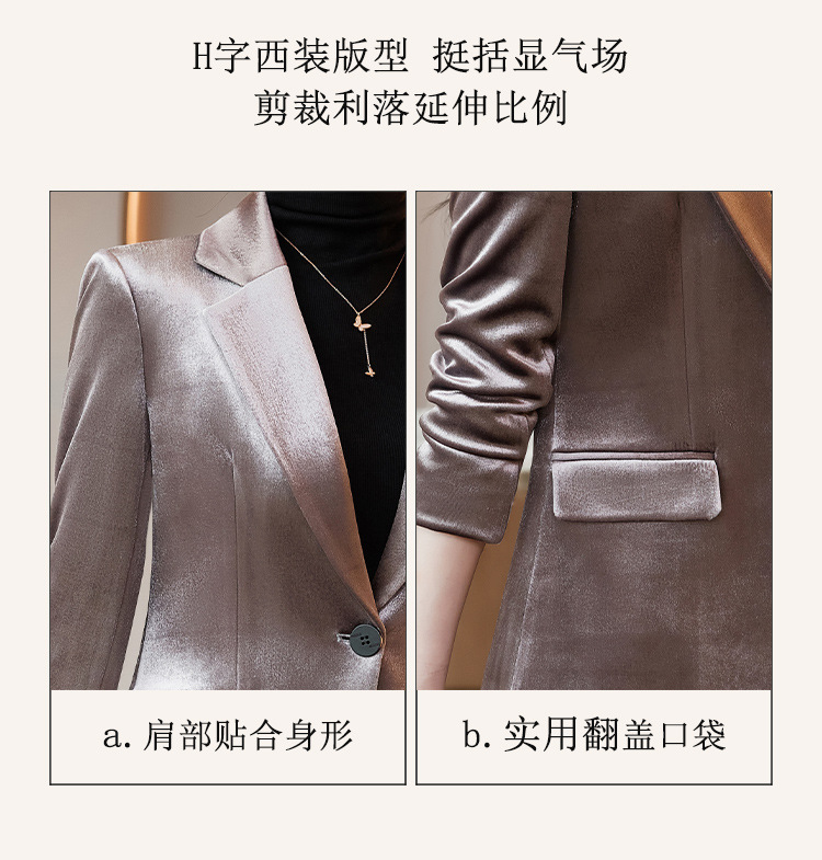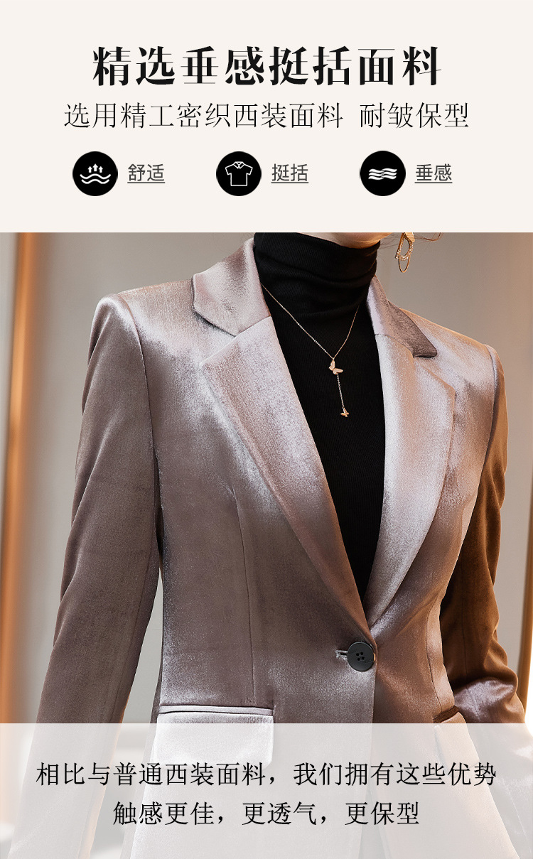高大上金丝绒西服套装,韩版女神休闲职业装XZ8060