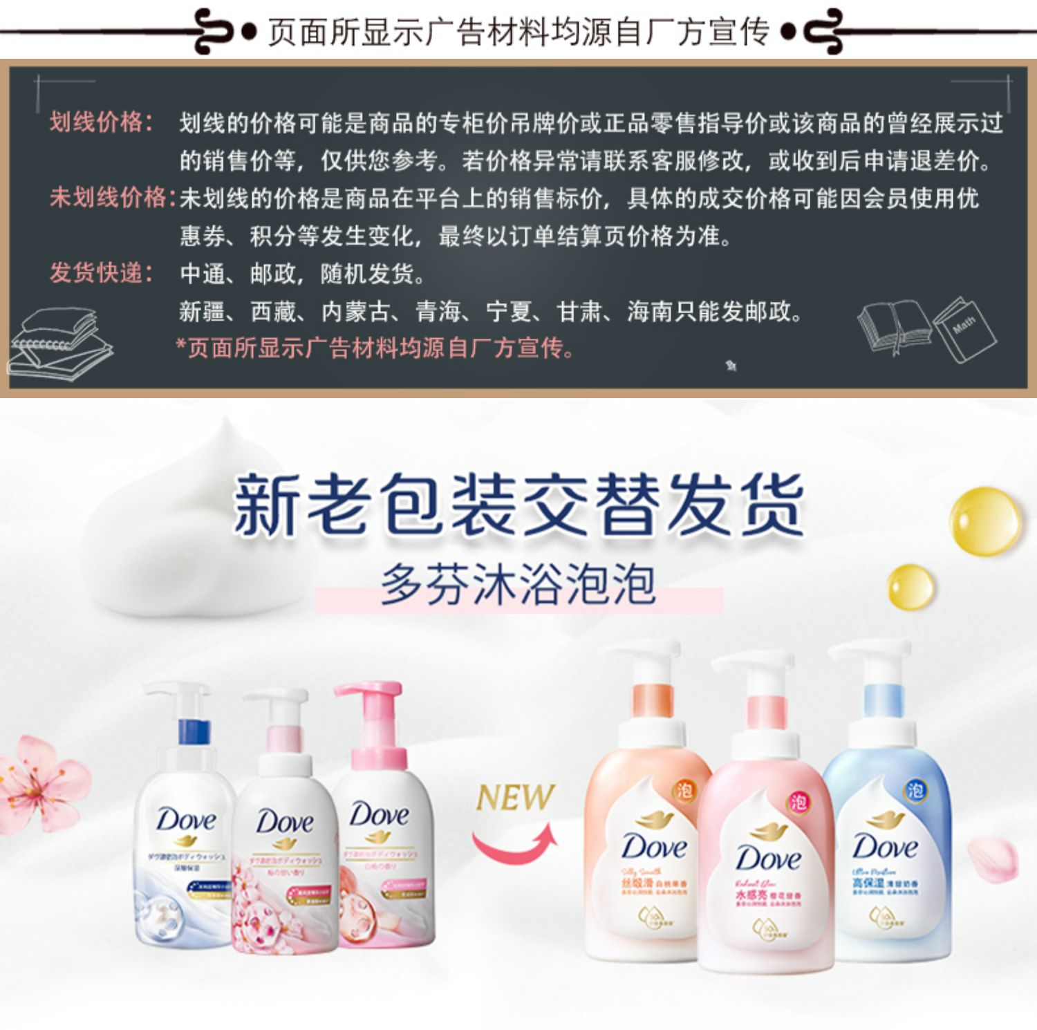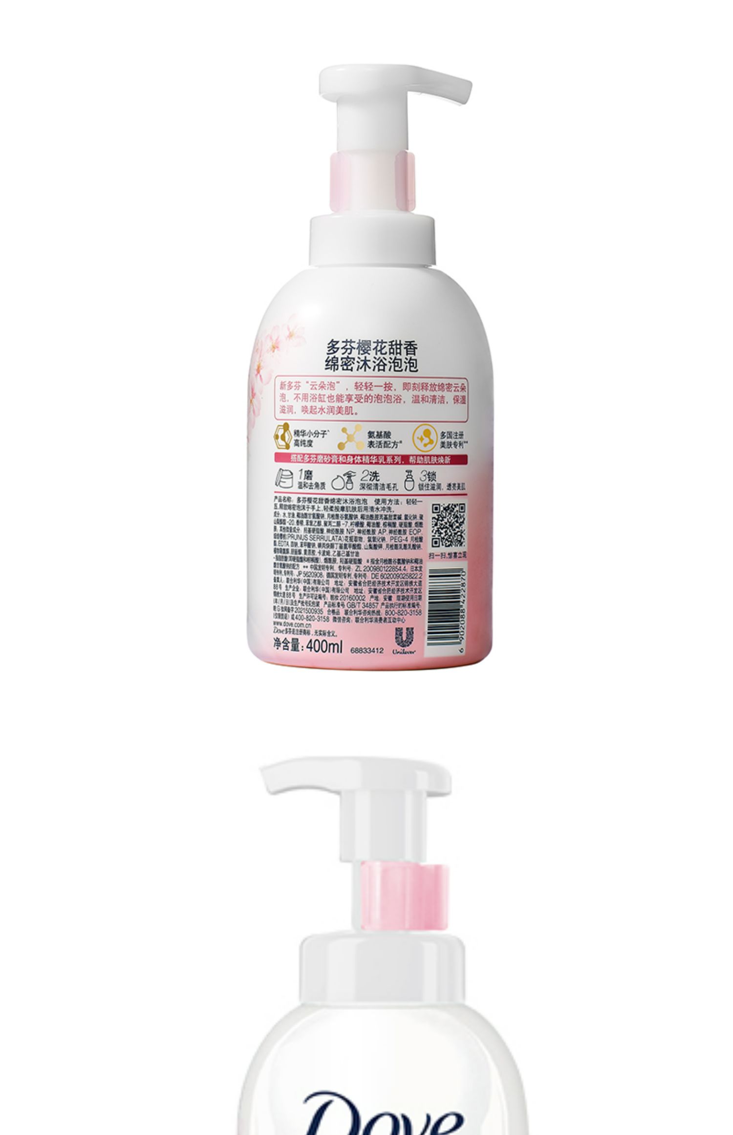 多芬樱花甜香绵密沐浴泡泡 400ML (粉瓶)