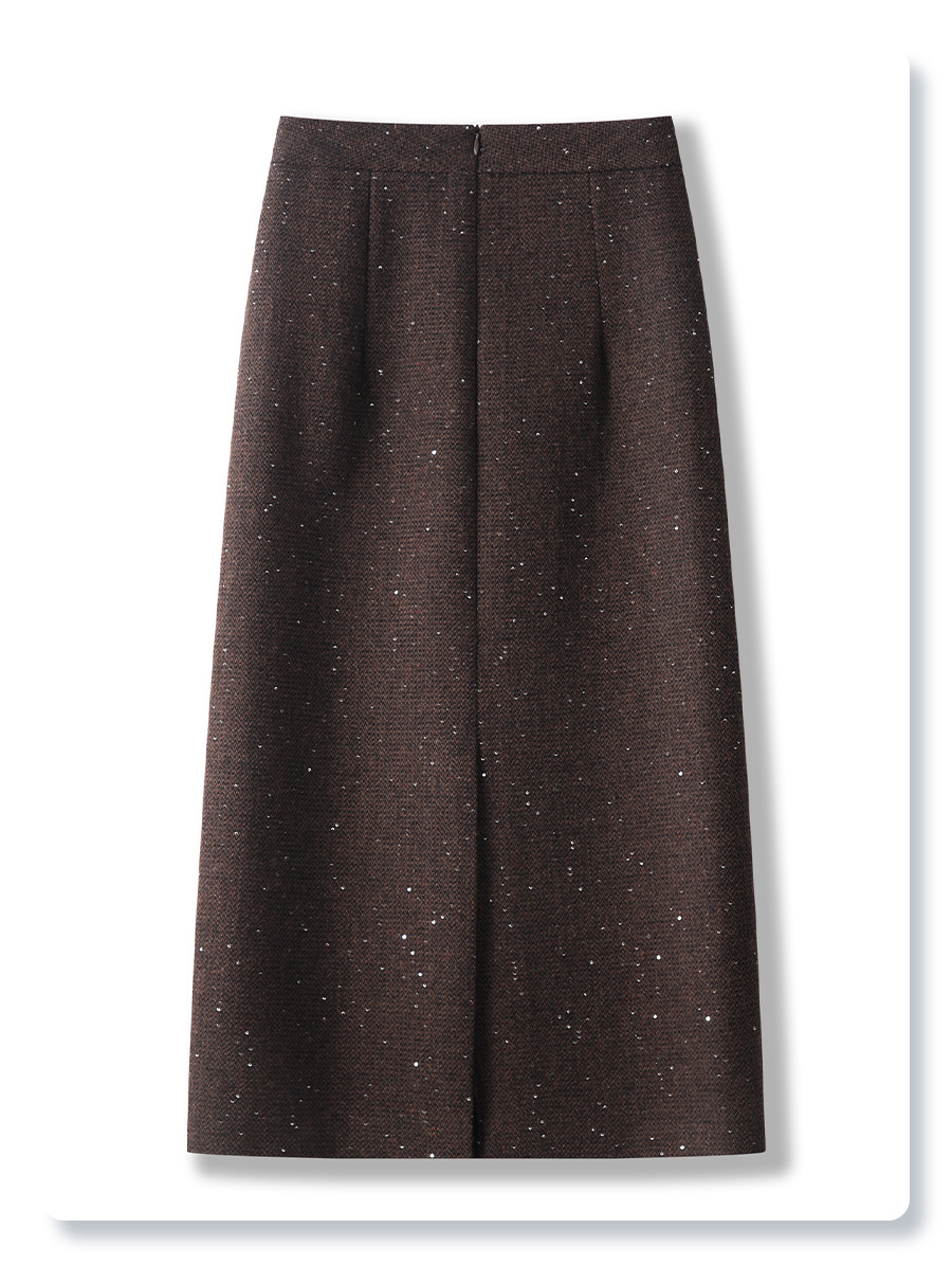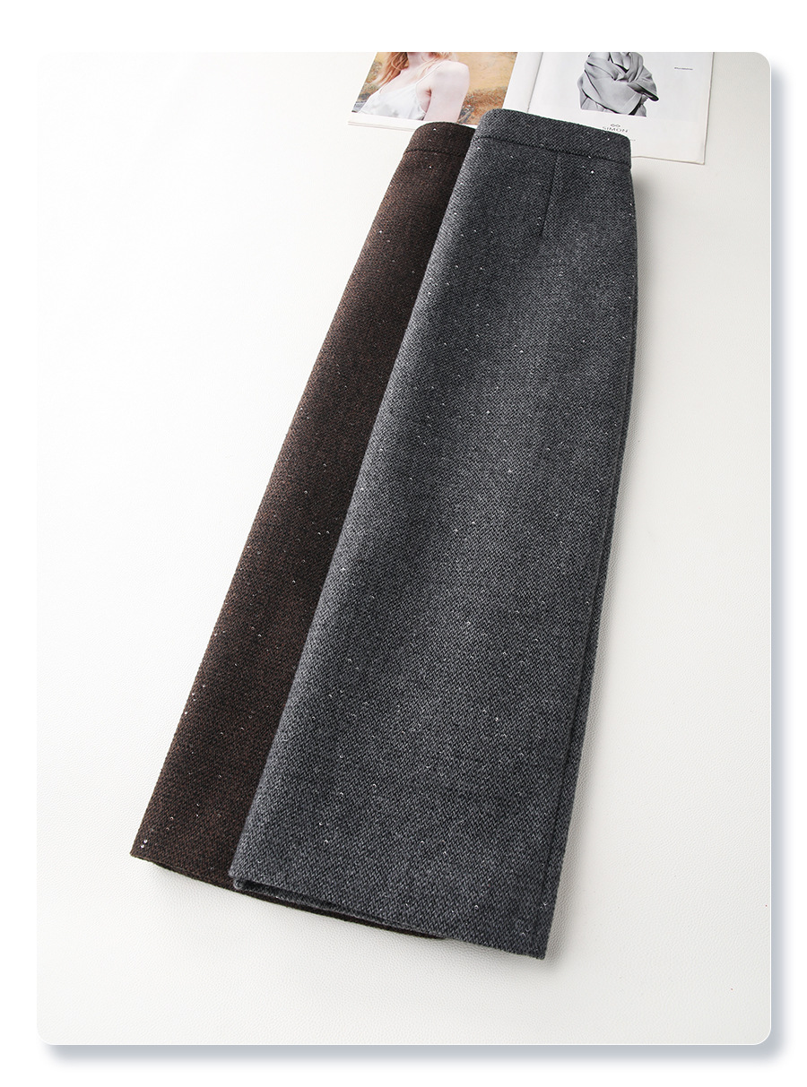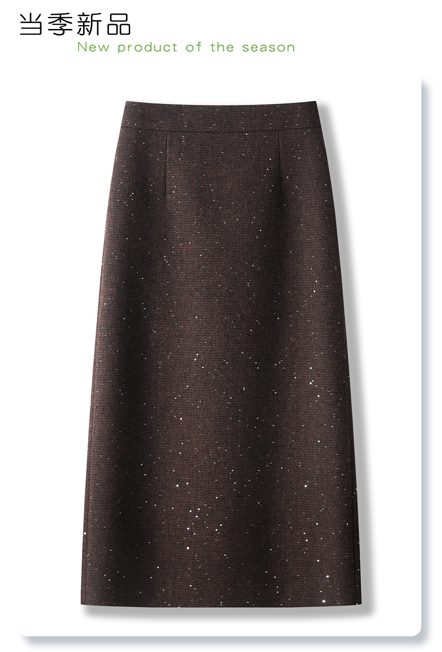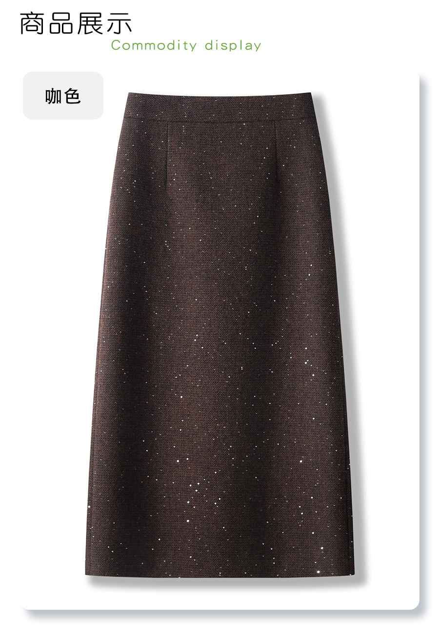 丁摩 咖色中长款直筒毛呢半身裙女新款秋冬款开叉止步裙气质包臀裙5ZF-0241
