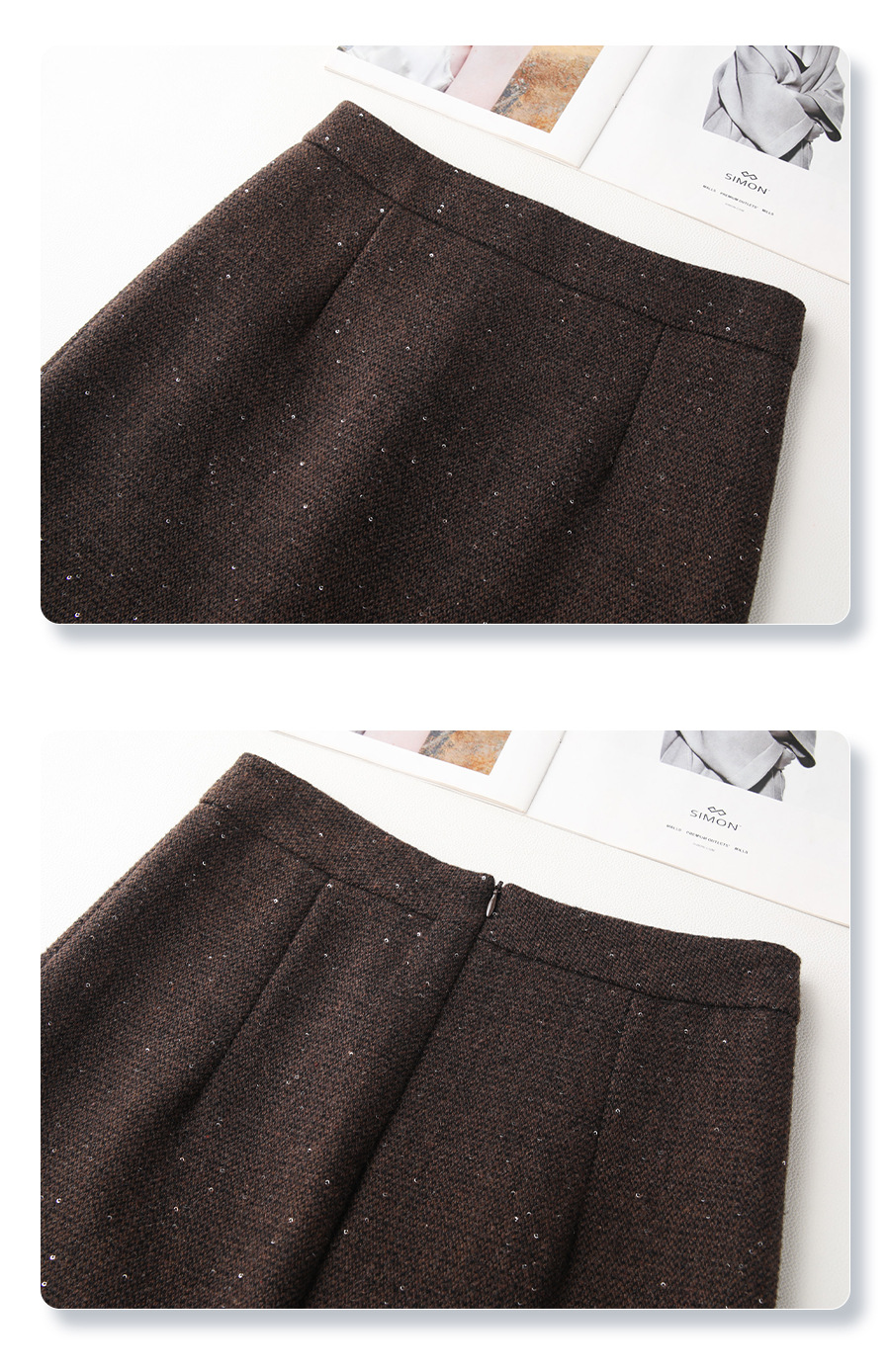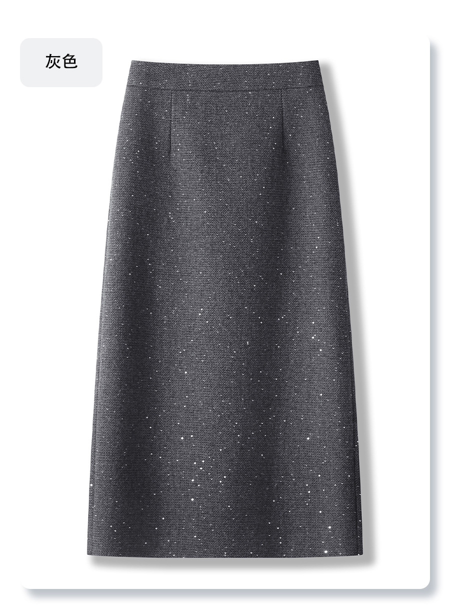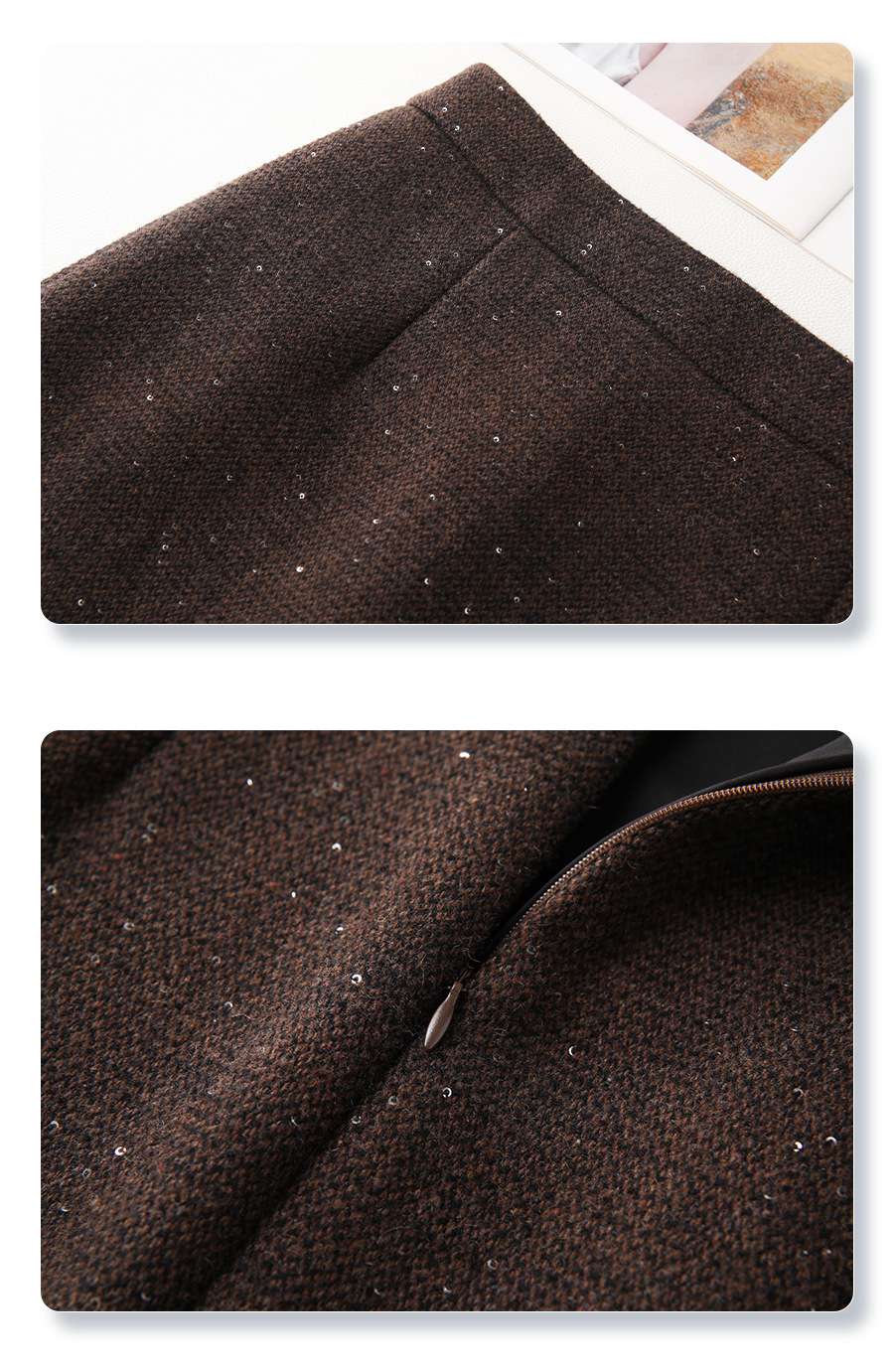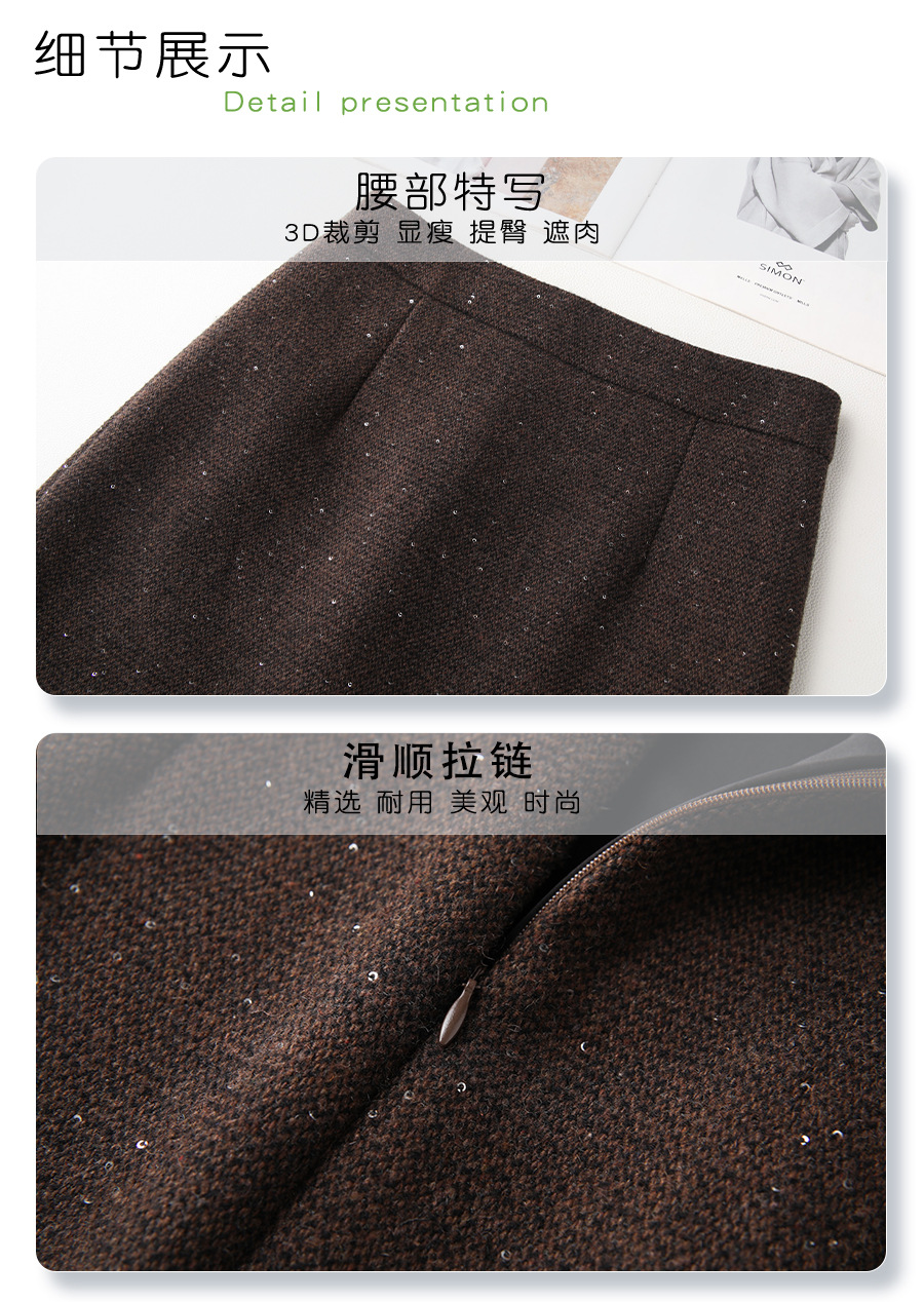 丁摩 咖色中长款直筒毛呢半身裙女新款秋冬款开叉止步裙气质包臀裙5ZF-0241