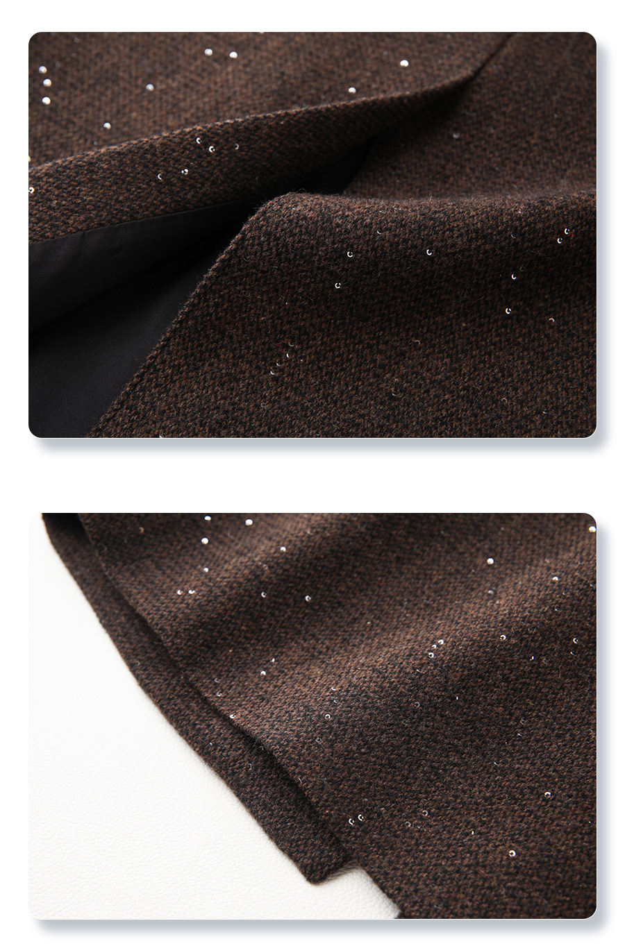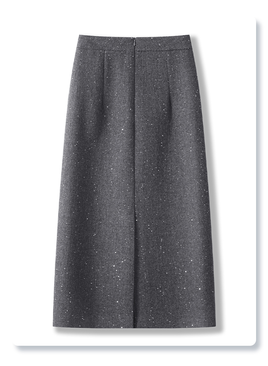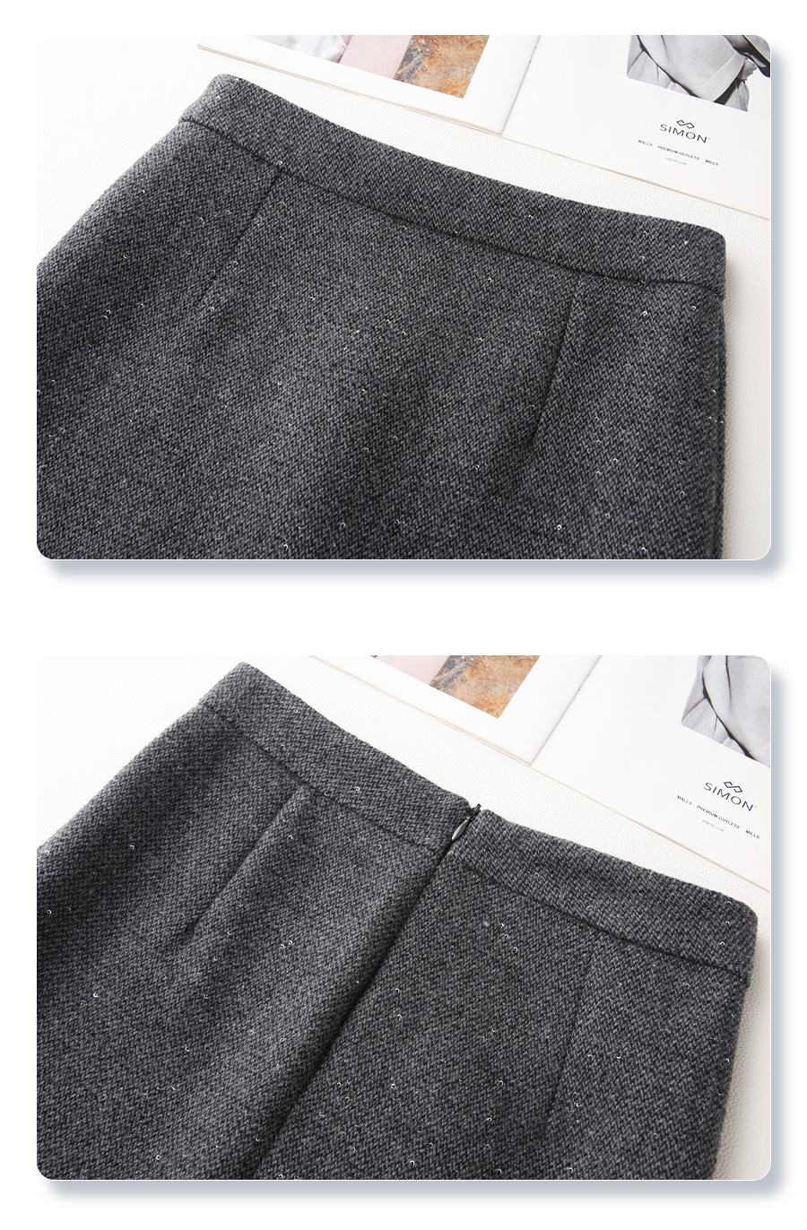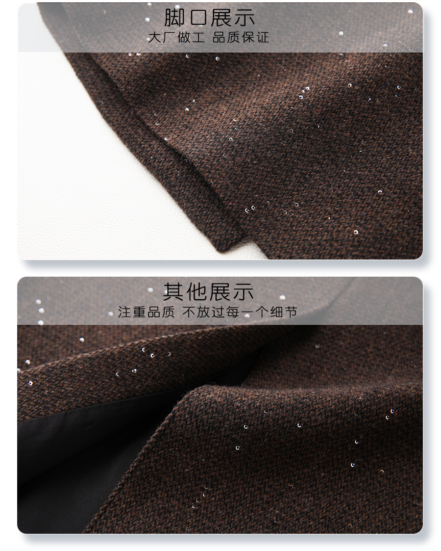 丁摩 咖色中长款直筒毛呢半身裙女新款秋冬款开叉止步裙气质包臀裙5ZF-0241