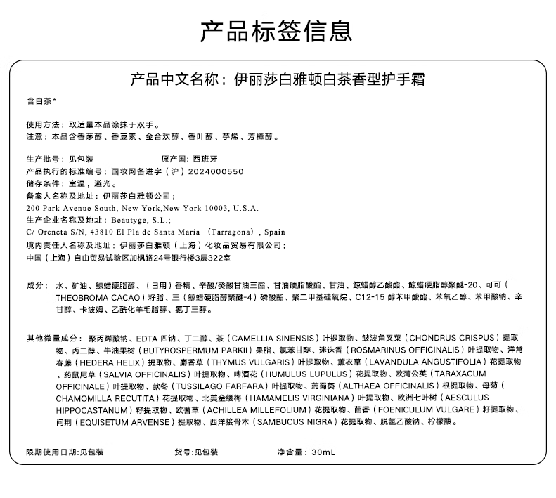 伊丽莎白雅顿 滋润保湿手霜女淡雅白茶护手霜30ml(效期至28年6月)【该商品不支持用券】